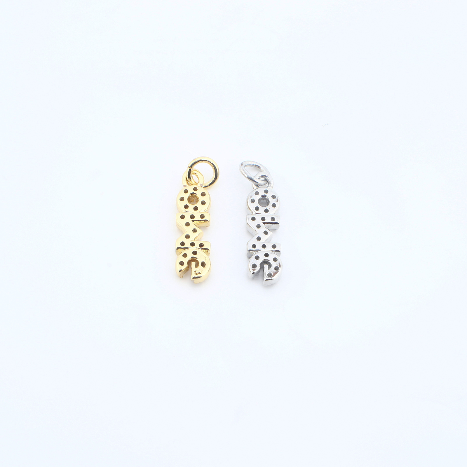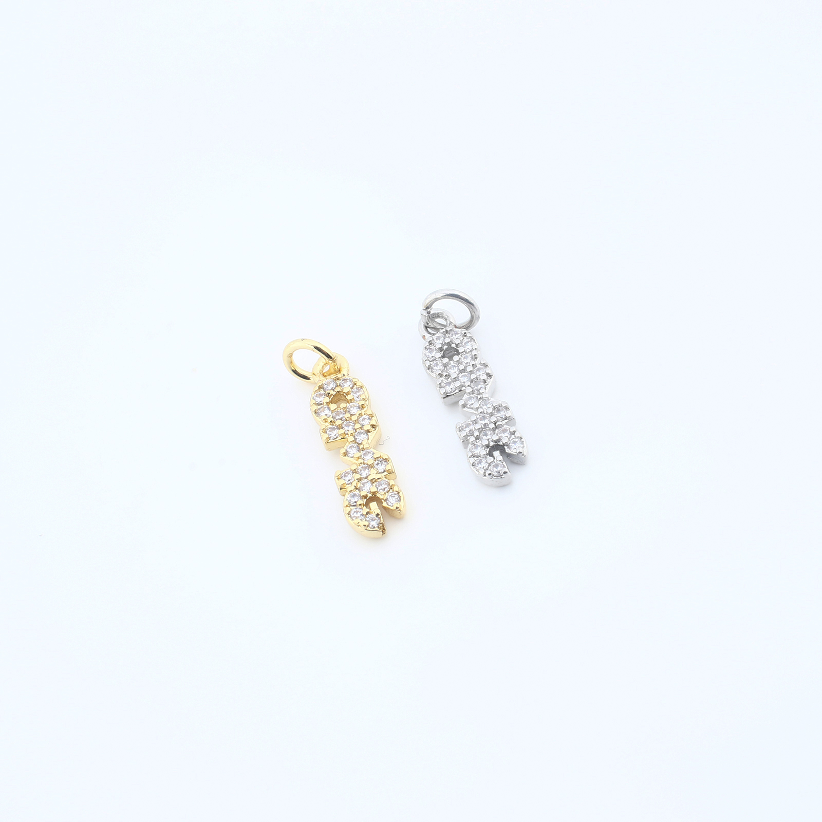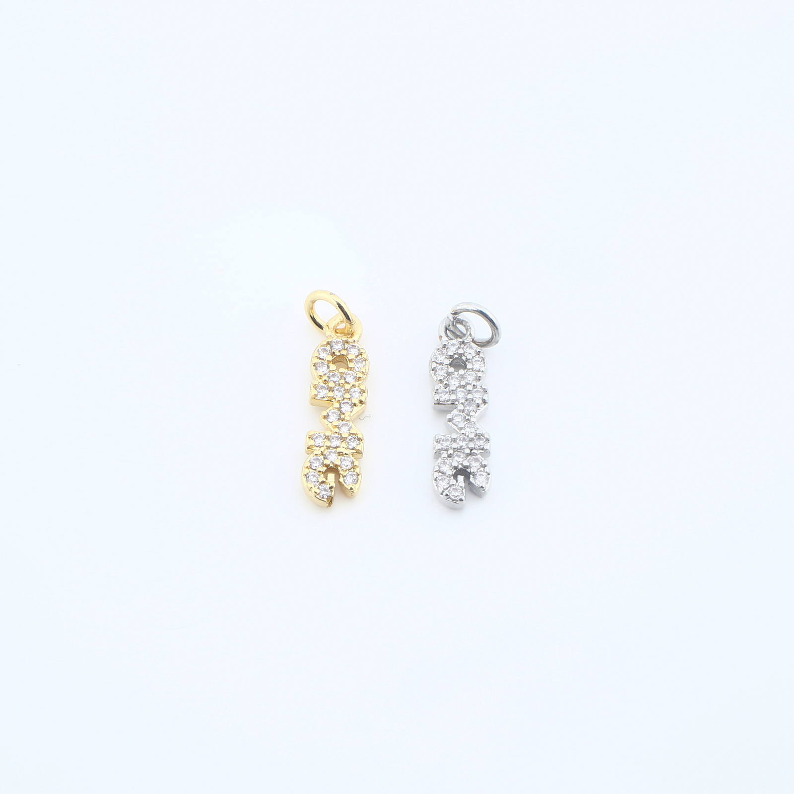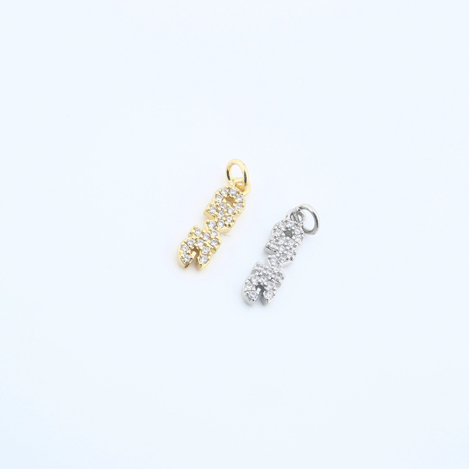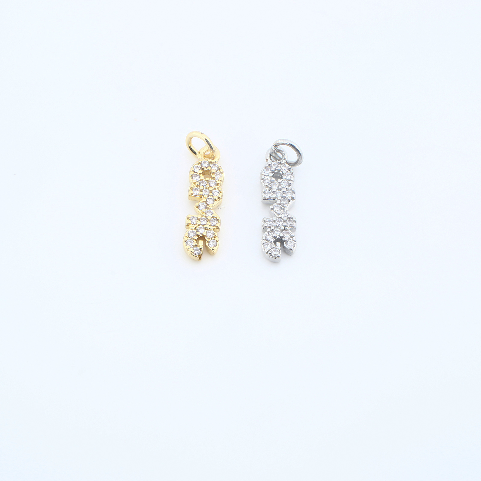 Cubique Pendentif en laiton zircon pavent, Lettre d’alphabet, Placage, DIY & pavé de micro zircon, plus de couleurs à choisir, protéger l'environnement, sans nickel, plomb et cadmium, 15x5x2mm, Vendu par PC
