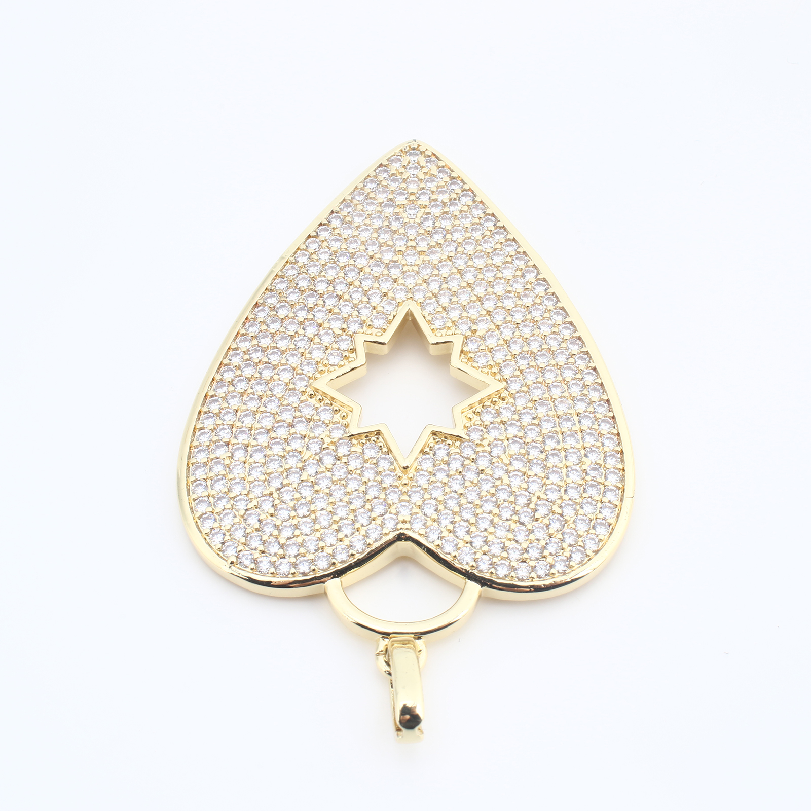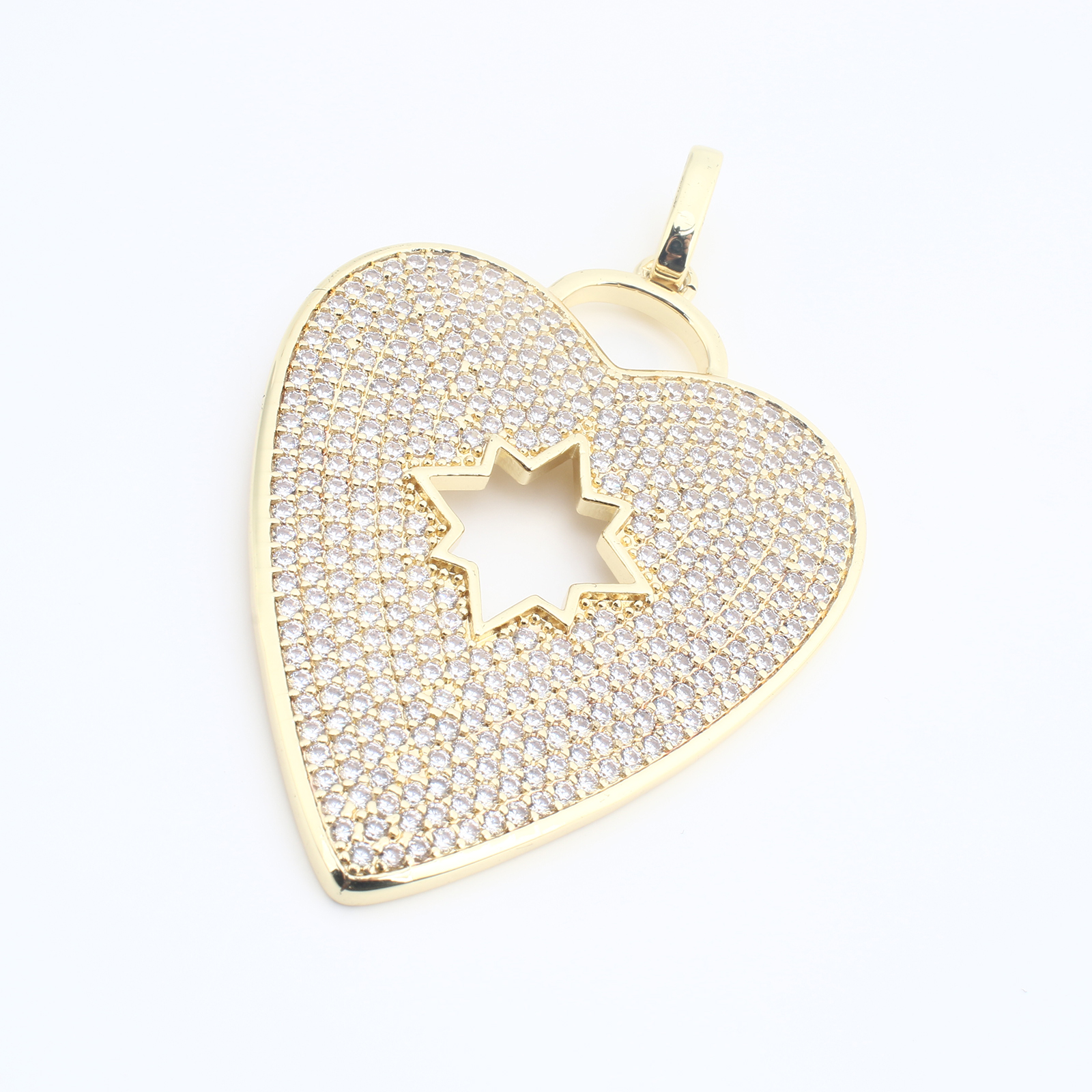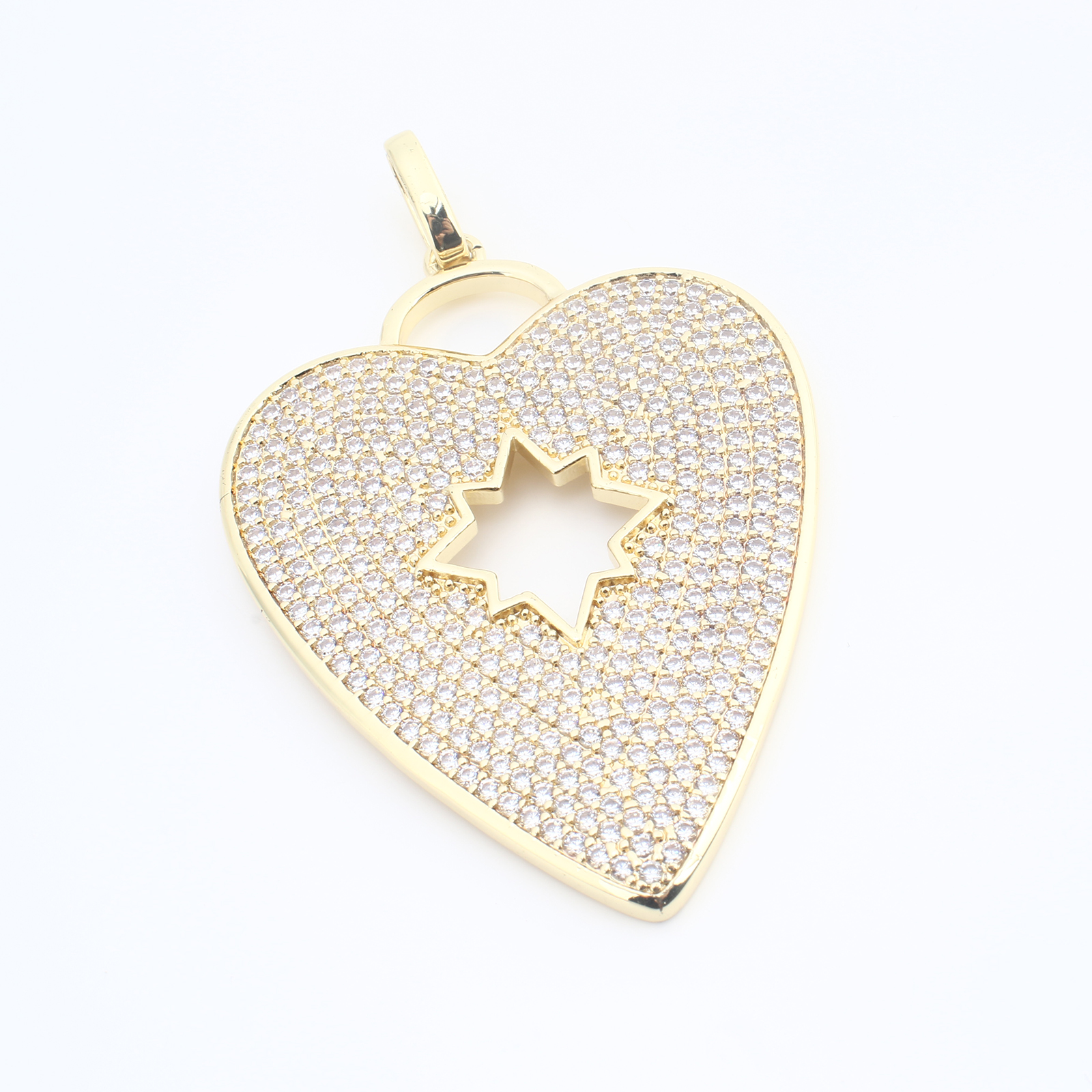Cubique Pendentif en laiton zircon pavent, coeur, Placage, DIY & pavé de micro zircon, plus de couleurs à choisir, 53x39x3mm, Vendu par PC