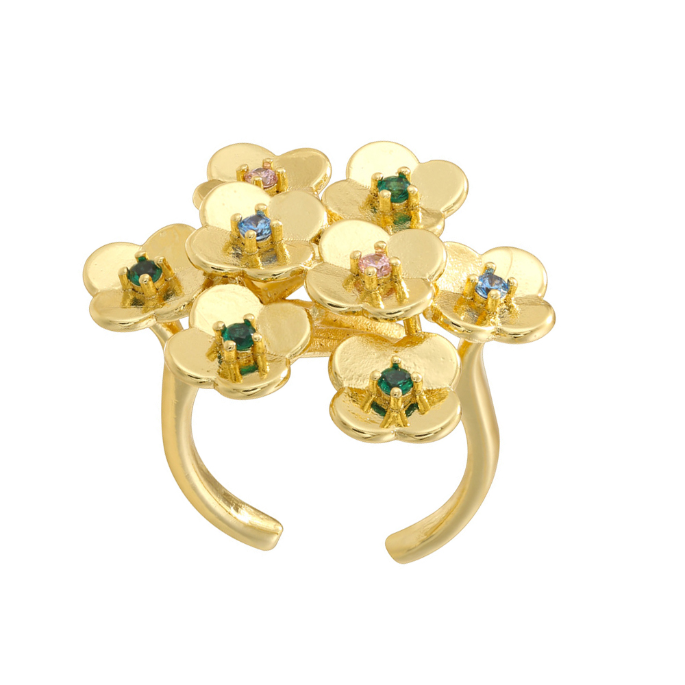1:Vj708 gold colored diamond flower ring2:Vj708 white gold diamond flower ring