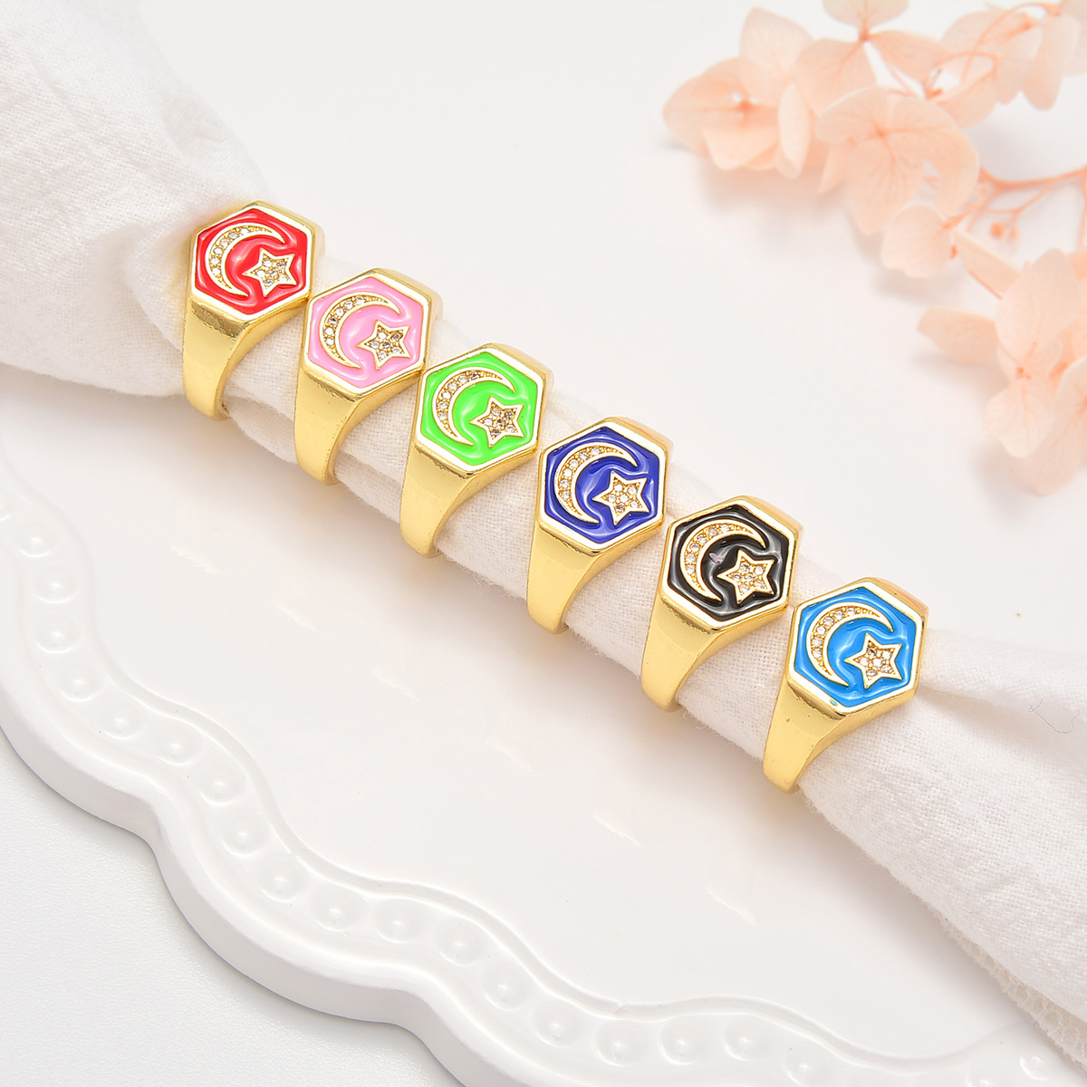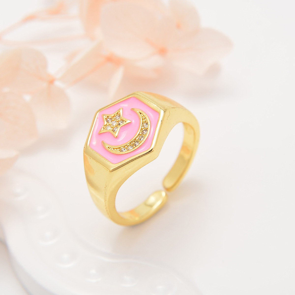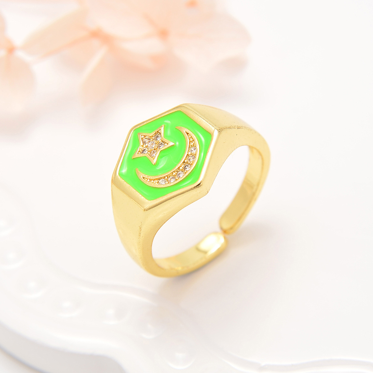 Cubique anneau en laiton Circonia Micro Pave, Placage de couleur d'or, bijoux de mode & pavé de micro zircon & pour femme & émail, plus de couleurs à choisir, protéger l'environnement, sans nickel, plomb et cadmium, Vendu par PC