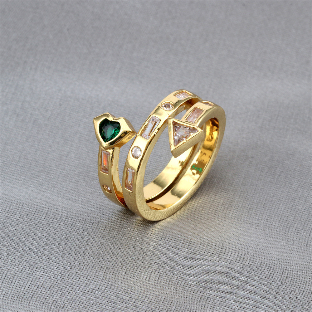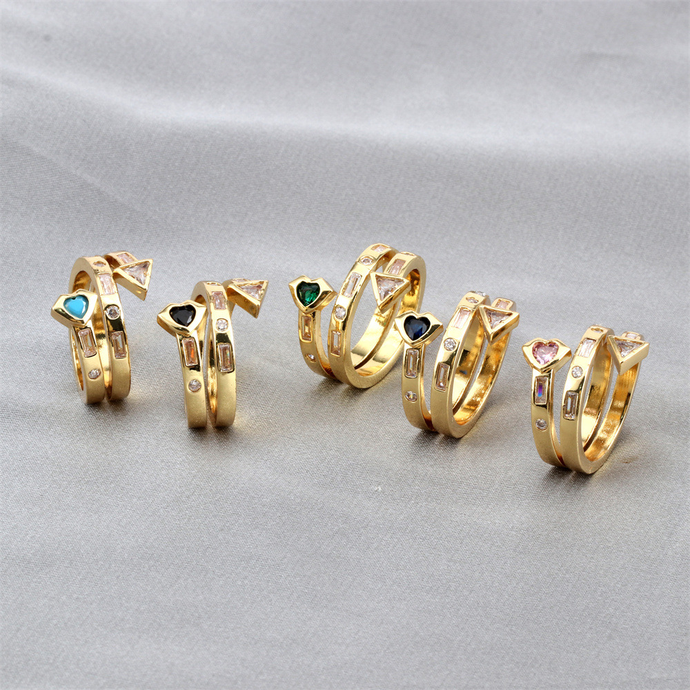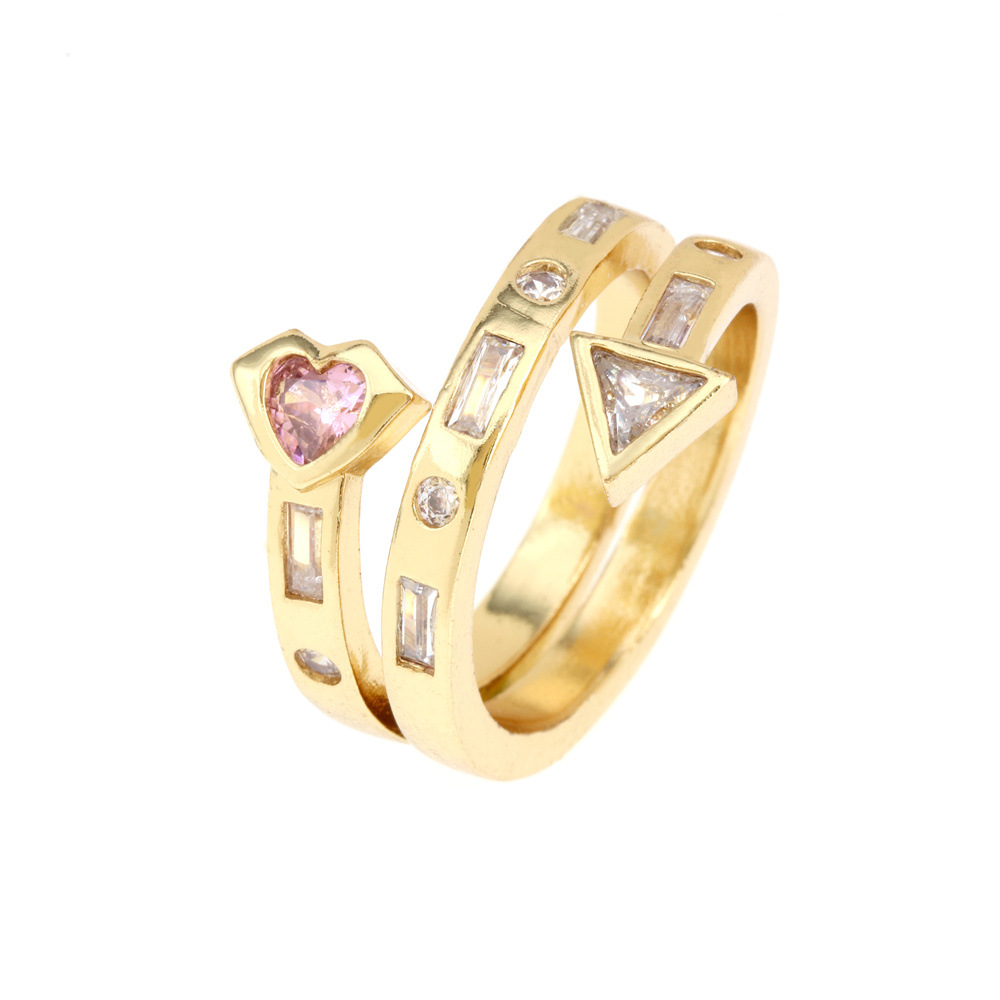 Cubique anneau en laiton Circonia Micro Pave, coeur, Placage de couleur d'or, pavé de micro zircon & pour femme, plus de couleurs à choisir, protéger l'environnement, sans nickel, plomb et cadmium, inner diameter:17~20mm, Vendu par PC
