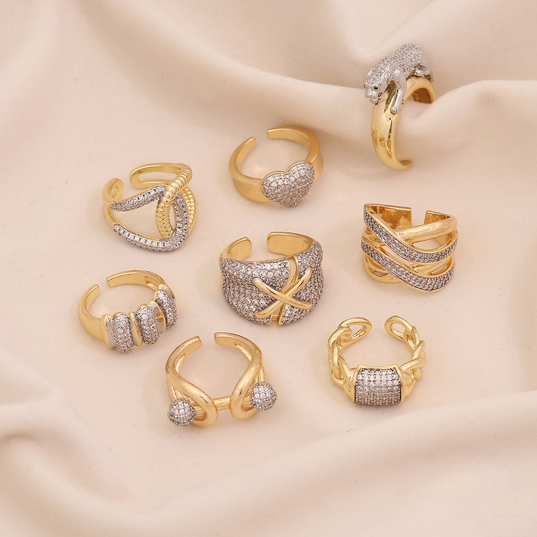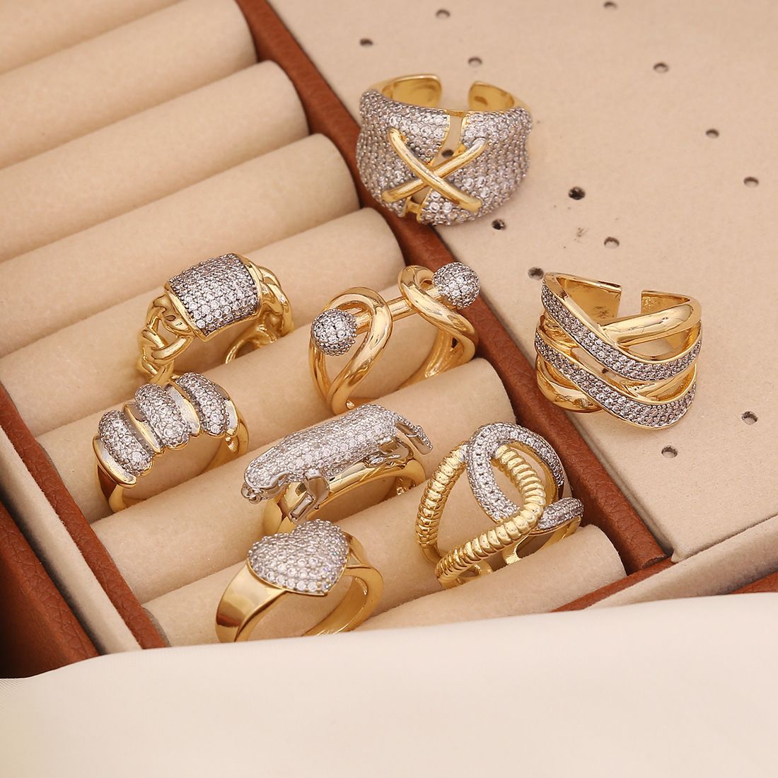 Cubique anneau en laiton Circonia Micro Pave, Placage, styles différents pour le choix & pavé de micro zircon & pour femme & deux tons, Vendu par PC
