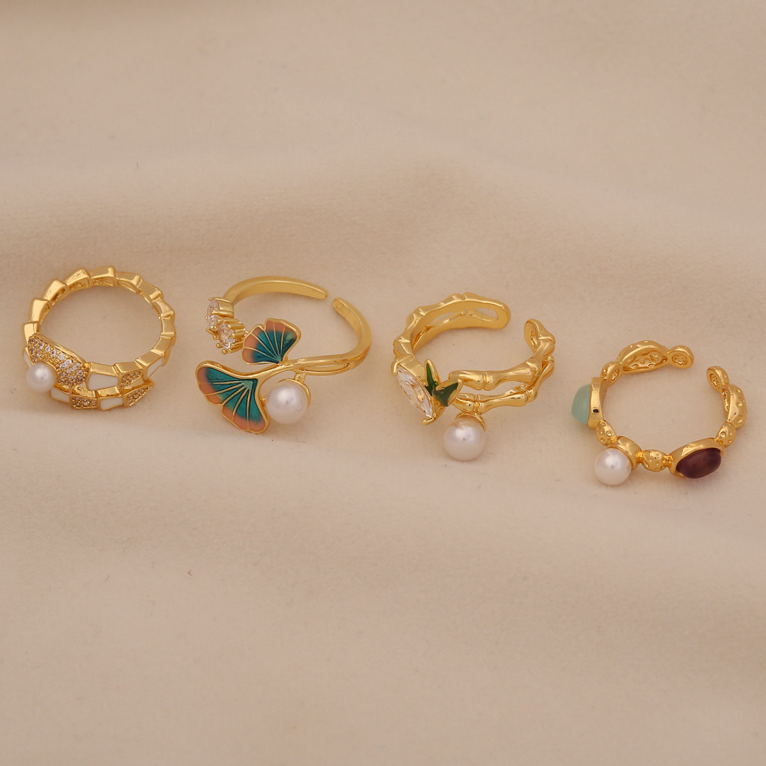 Cubique anneau en laiton Circonia Micro Pave, avec zircon cubique & perle de plastique, styles différents pour le choix & pour femme & émail, doré, Vendu par PC