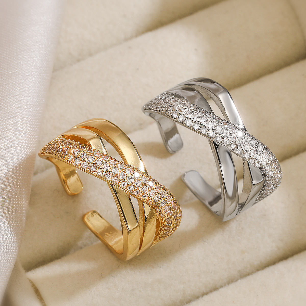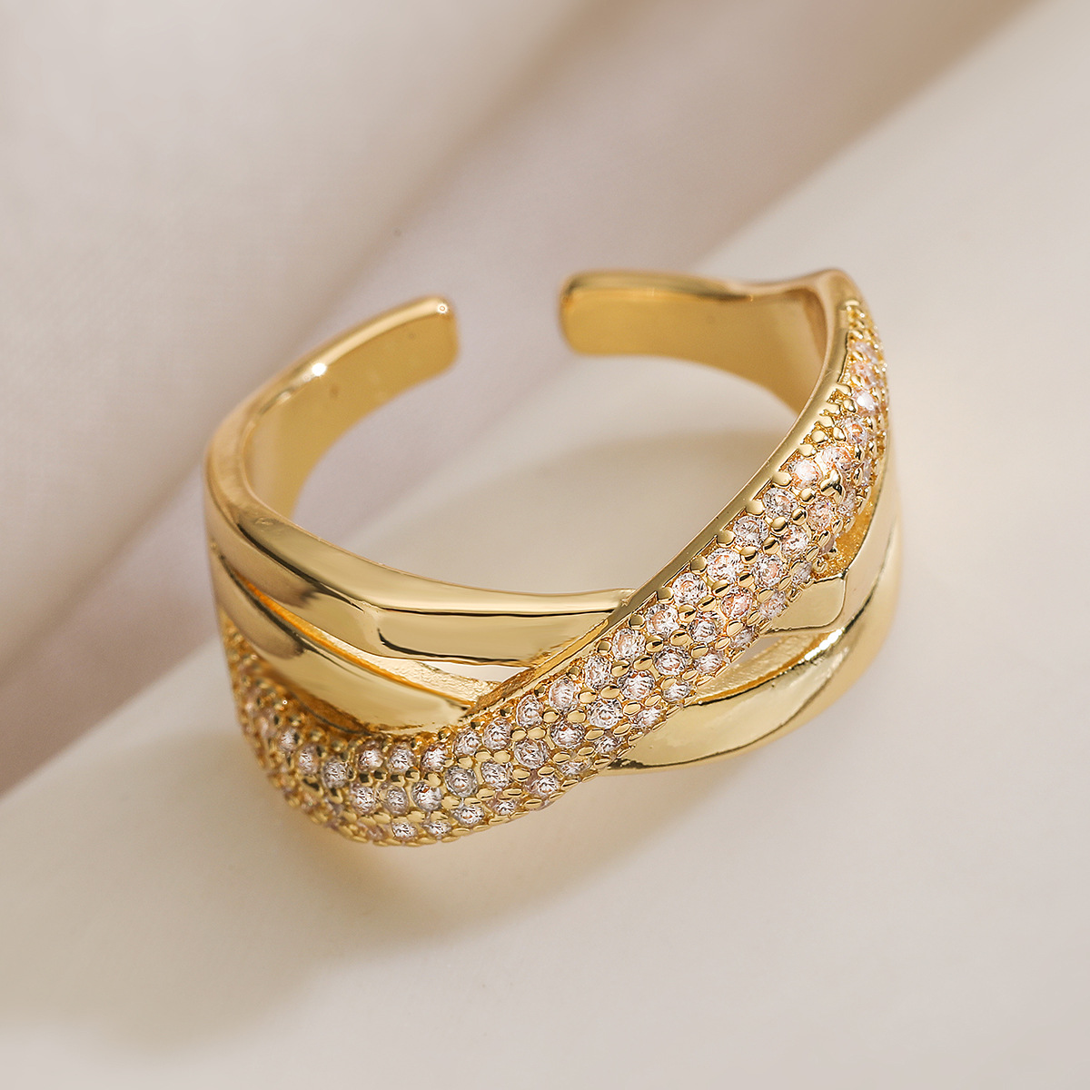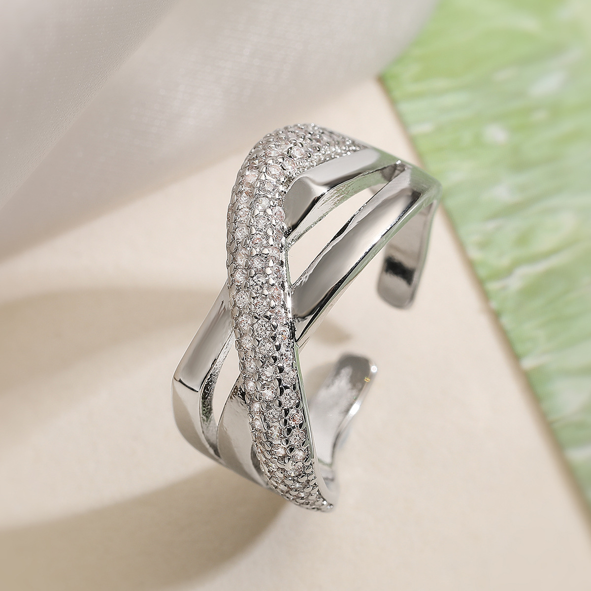 Cubique anneau en laiton Circonia Micro Pave, Placage, pavé de micro zircon & pour femme & creux, plus de couleurs à choisir, Vendu par PC