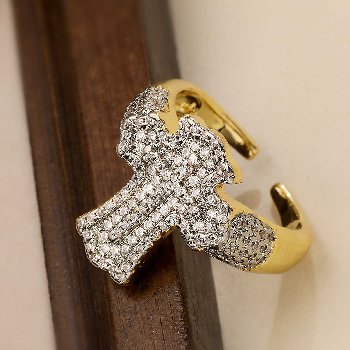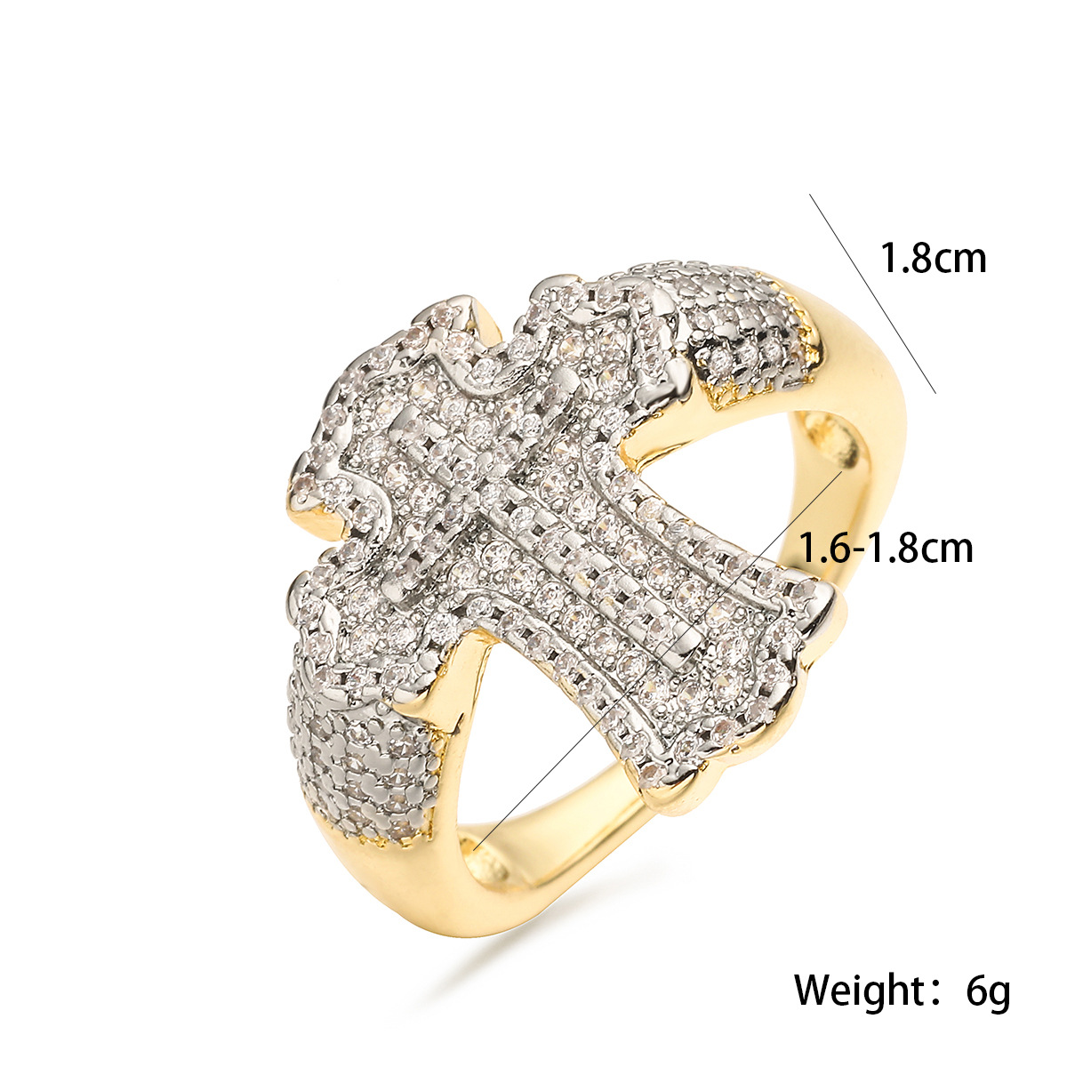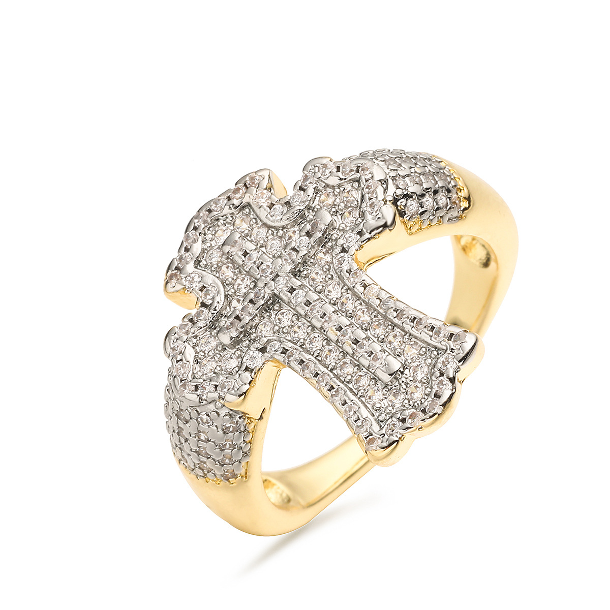Cubique anneau en laiton Circonia Micro Pave, croix, Placage, bijoux de mode & pavé de micro zircon & pour femme, doré, Vendu par PC
