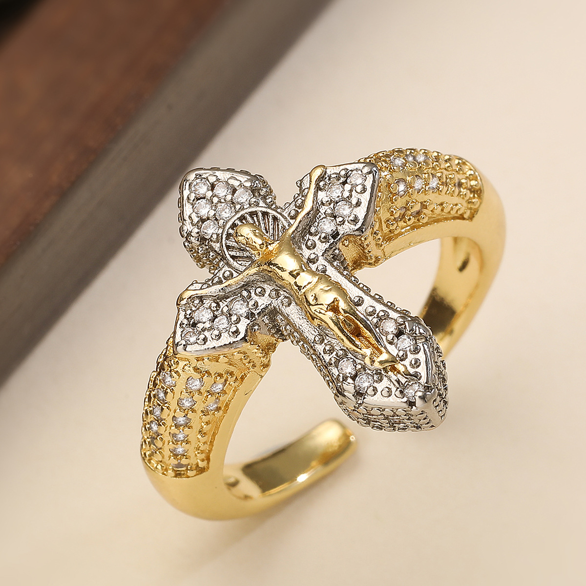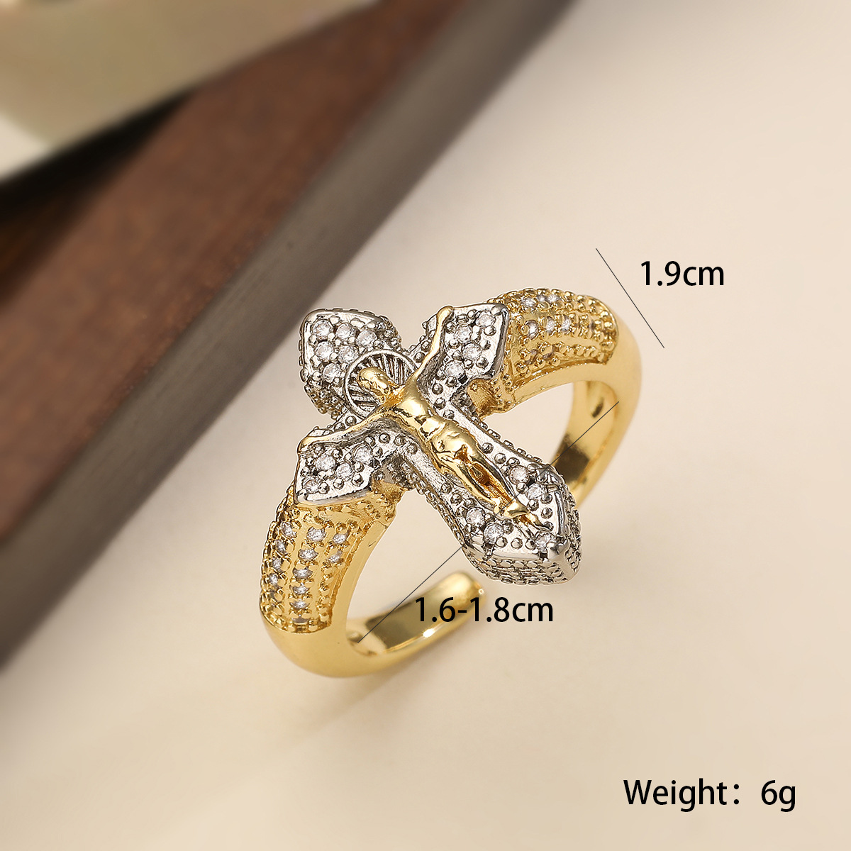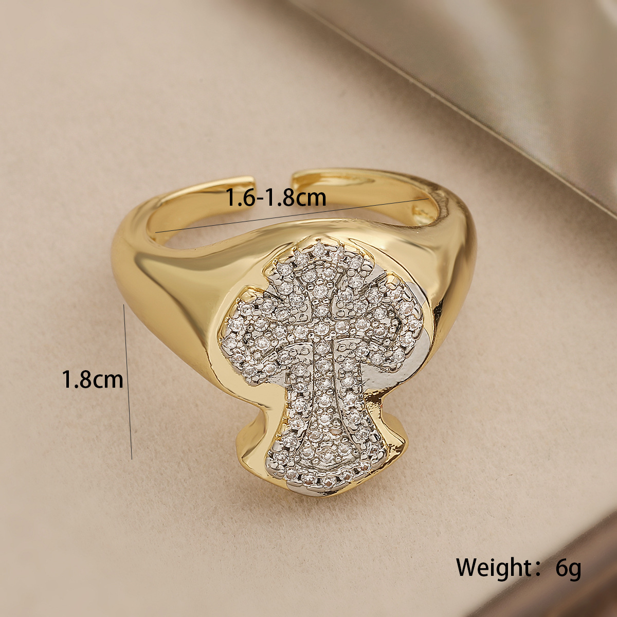 Cubique anneau en laiton Circonia Micro Pave, croix, Placage, bijoux de mode & pavé de micro zircon & pour femme, doré, Vendu par PC