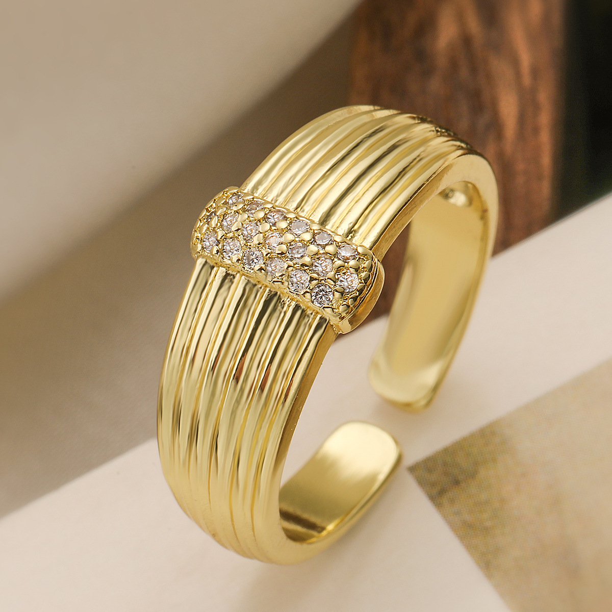 Cubique anneau en laiton Circonia Micro Pave, Plaqué or 18K, bijoux de mode & pavé de micro zircon & pour femme, doré, Vendu par PC