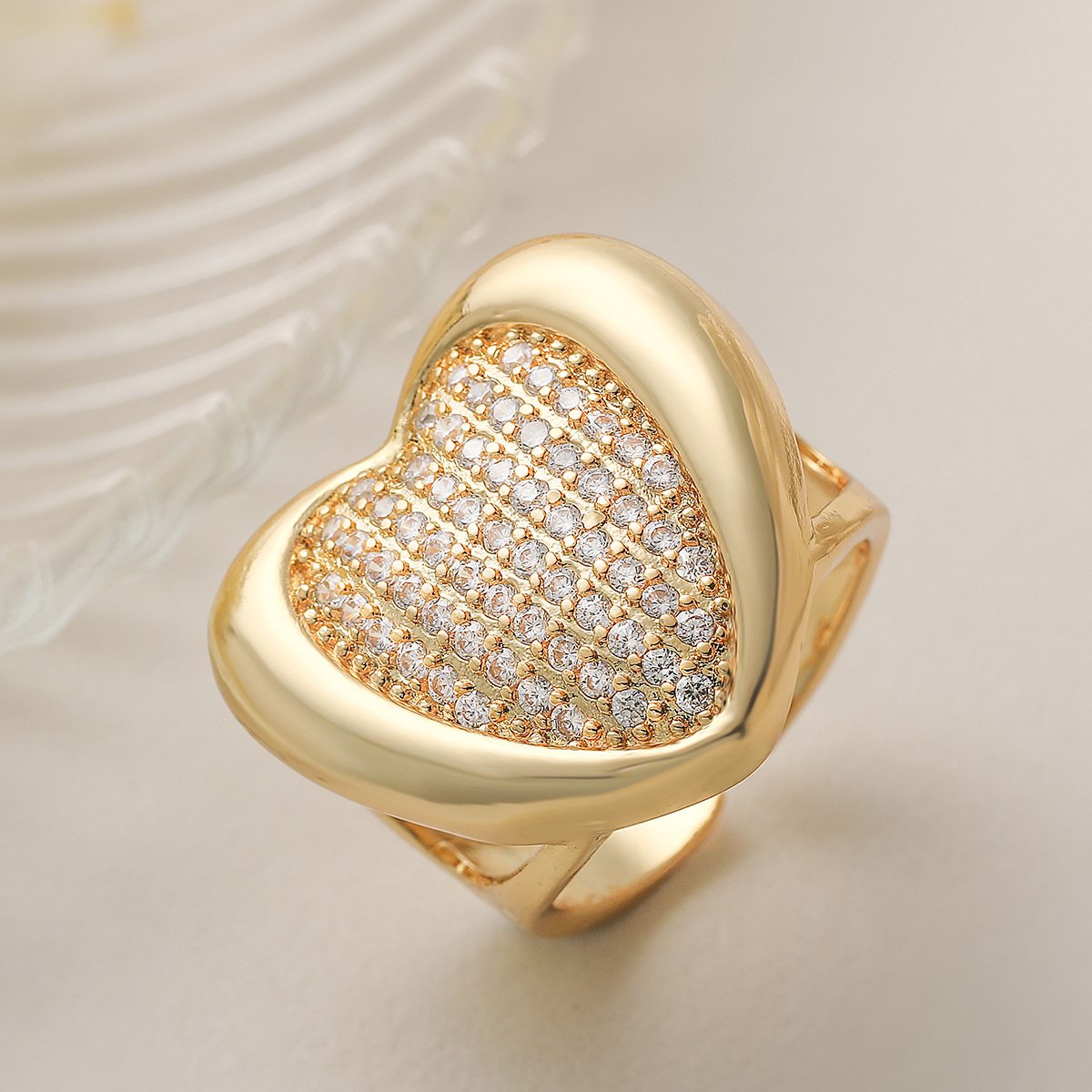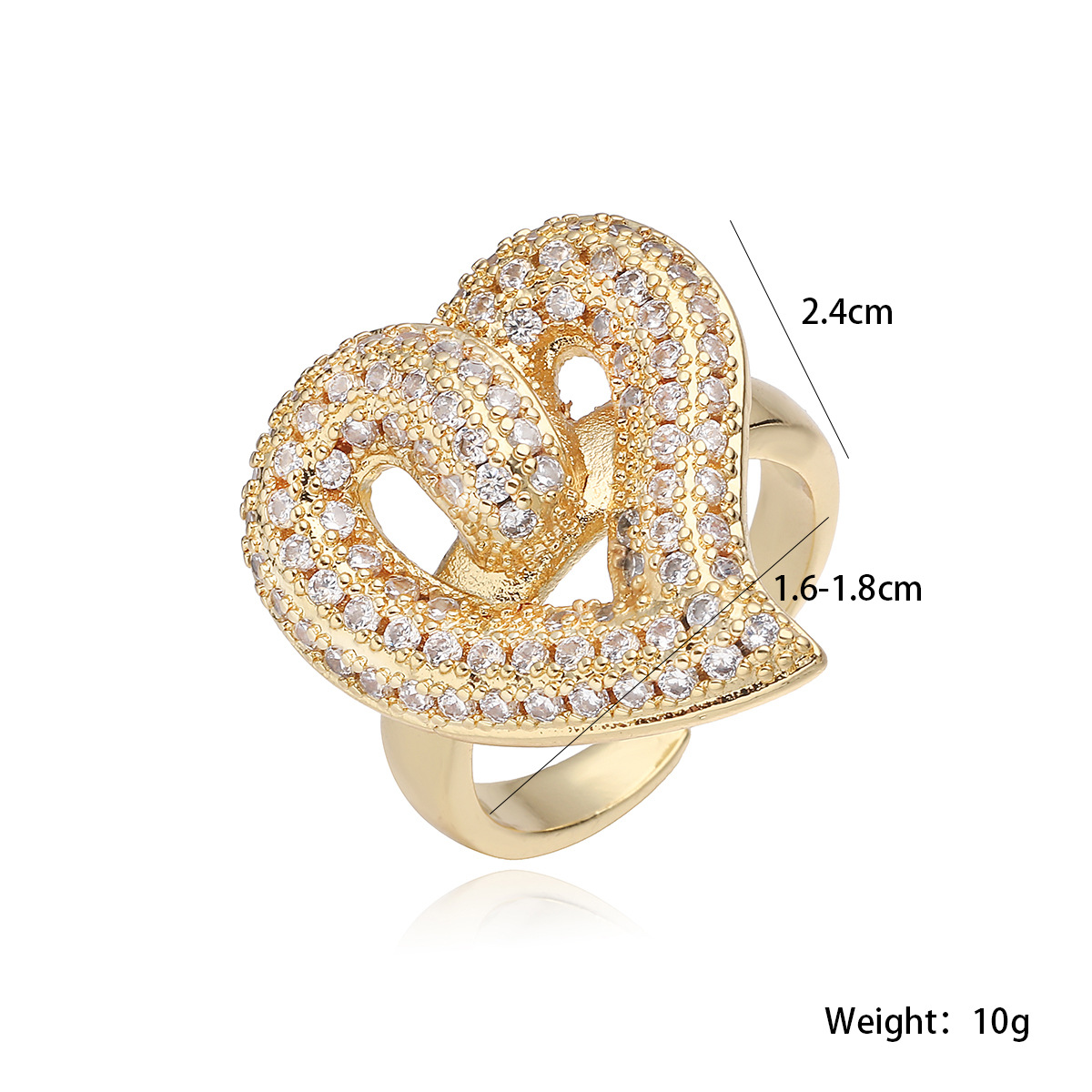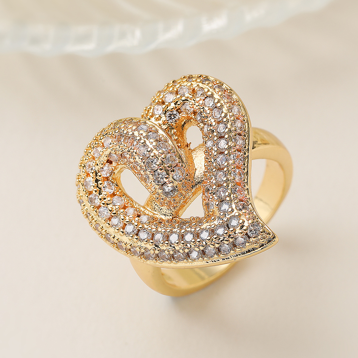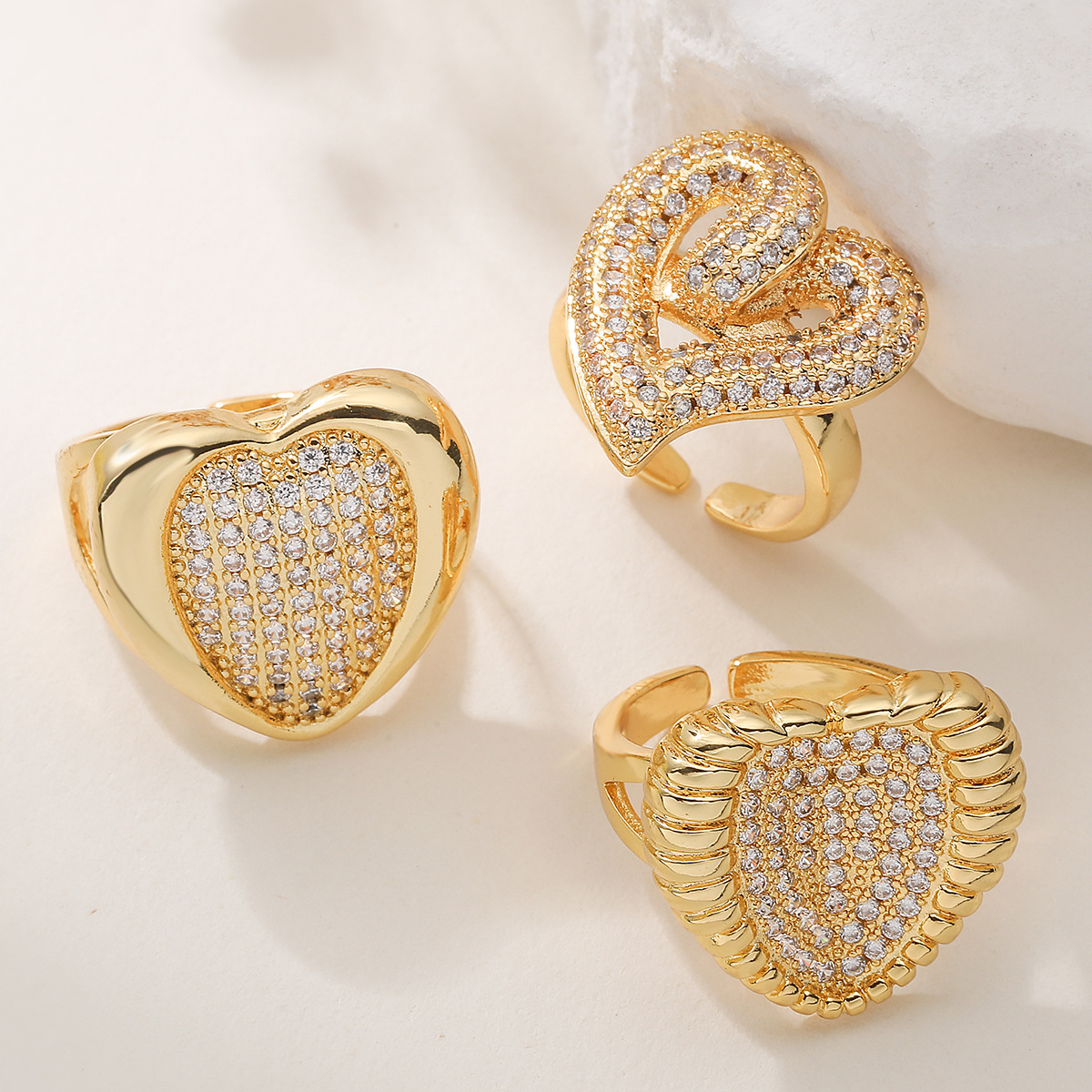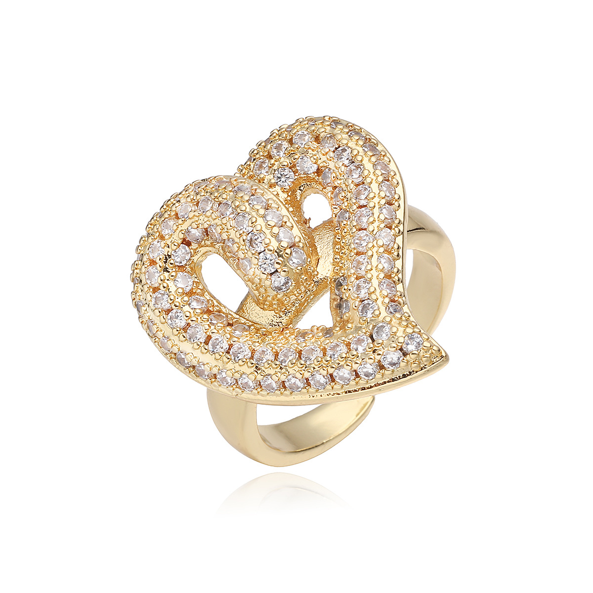 Cubique anneau en laiton Circonia Micro Pave, coeur, Plaqué or 18K, styles différents pour le choix & pavé de micro zircon & pour femme, Vendu par PC