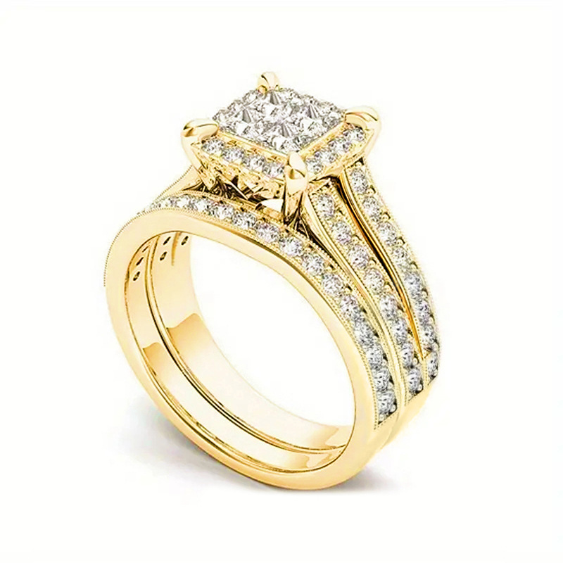 Cubique anneau en laiton Circonia Micro Pave, Placage, 2 pièces & normes différentes pour le choix & pavé de micro zircon & pour femme, Vendu par fixé
