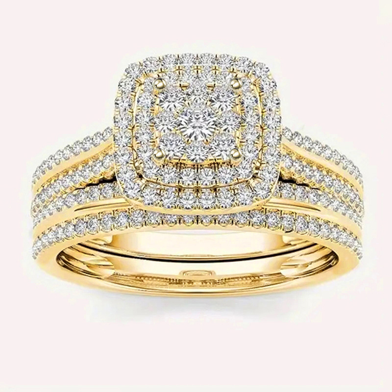 Cubique anneau en laiton Circonia Micro Pave, Placage, 2 pièces & normes différentes pour le choix & pavé de micro zircon & pour femme, Vendu par fixé