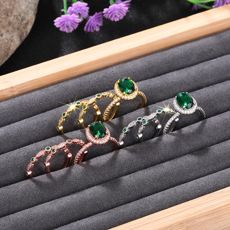 Cubique anneau en laiton Circonia Micro Pave, Placage, trois pièces & normes différentes pour le choix & pavé de micro zircon & pour femme, plus de couleurs à choisir, Vendu par fixé