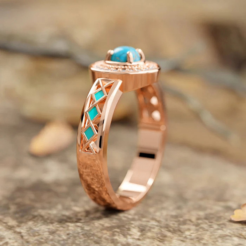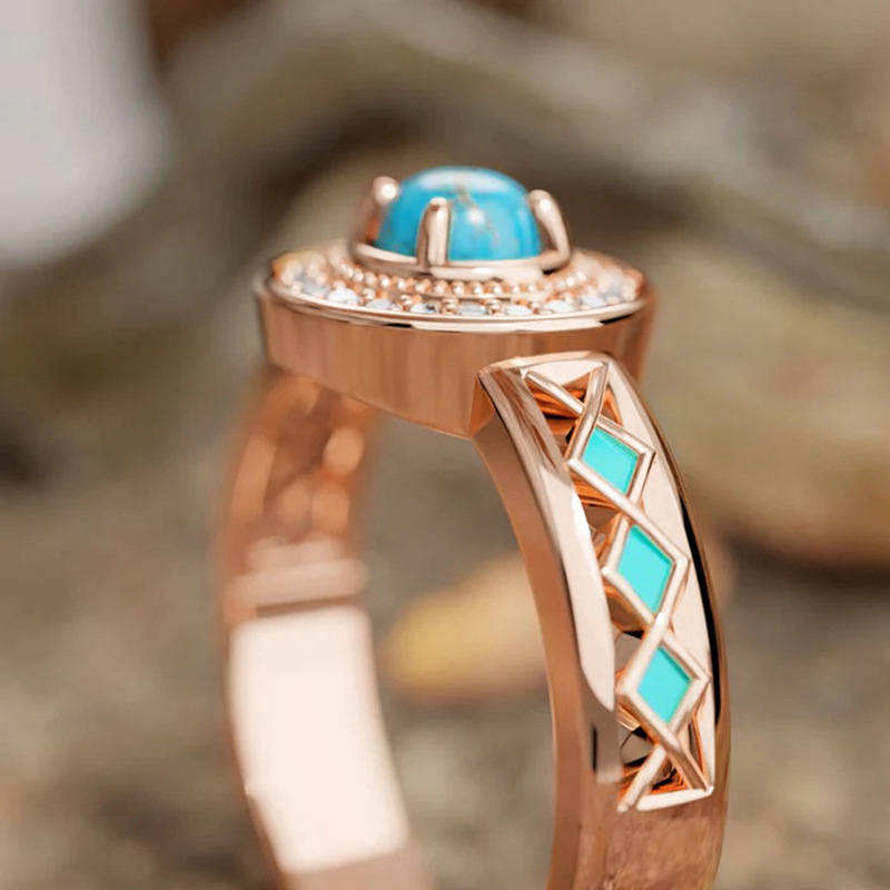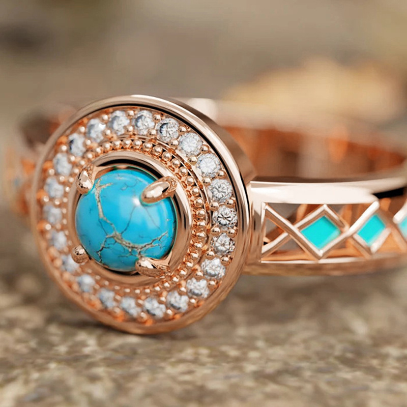 Cubique anneau en laiton Circonia Micro Pave, avec turquoise synthétique, Placage, normes différentes pour le choix & pavé de micro zircon & pour femme & émail, couleur or rose, Vendu par PC