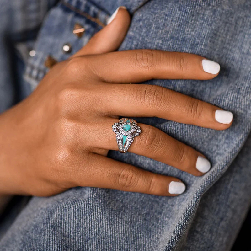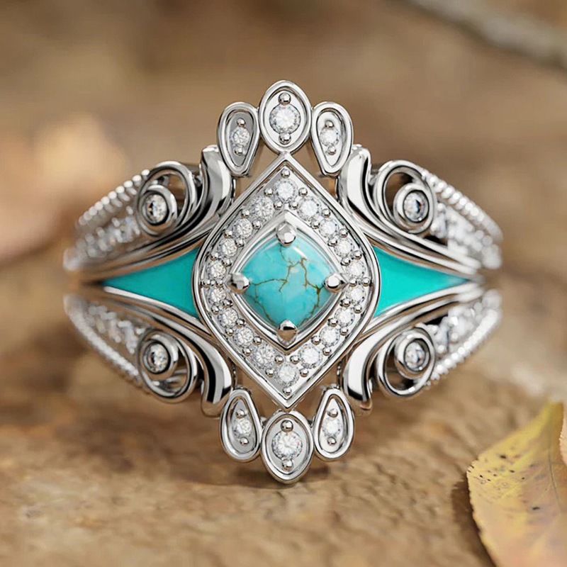 Cubique anneau en laiton Circonia Micro Pave, avec turquoise synthétique, Placage, normes différentes pour le choix & pavé de micro zircon & pour femme & émail, Vendu par PC