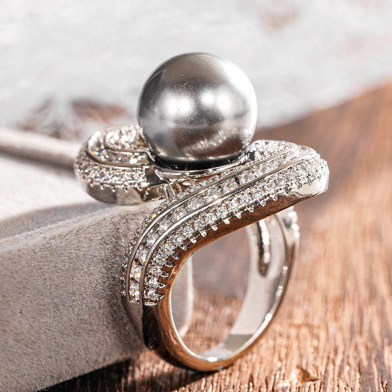 Cubique anneau en laiton Circonia Micro Pave, avec perle de plastique, Placage, normes différentes pour le choix & pavé de micro zircon & pour femme, Vendu par PC