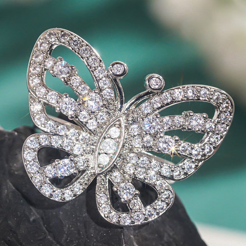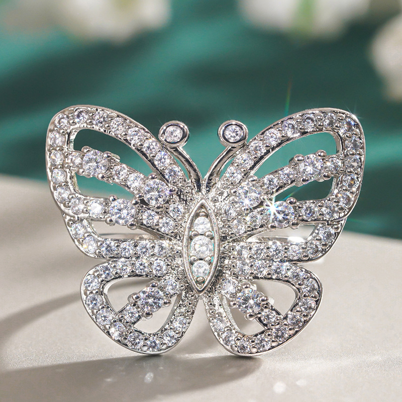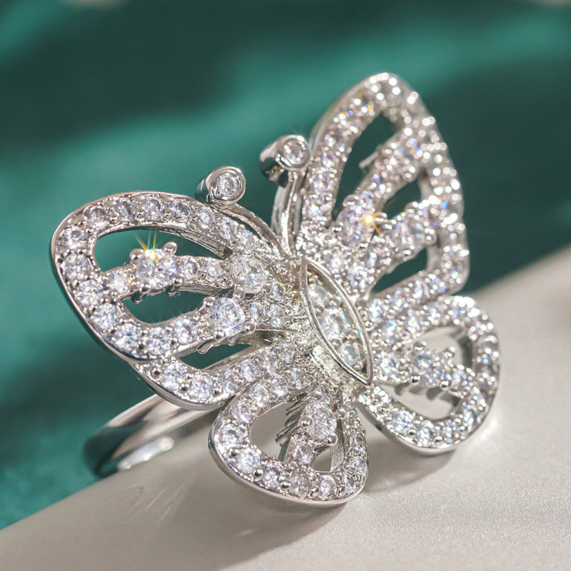 Cubique anneau en laiton Circonia Micro Pave, papillon, Placage, normes différentes pour le choix & pavé de micro zircon & pour femme & creux, Vendu par PC