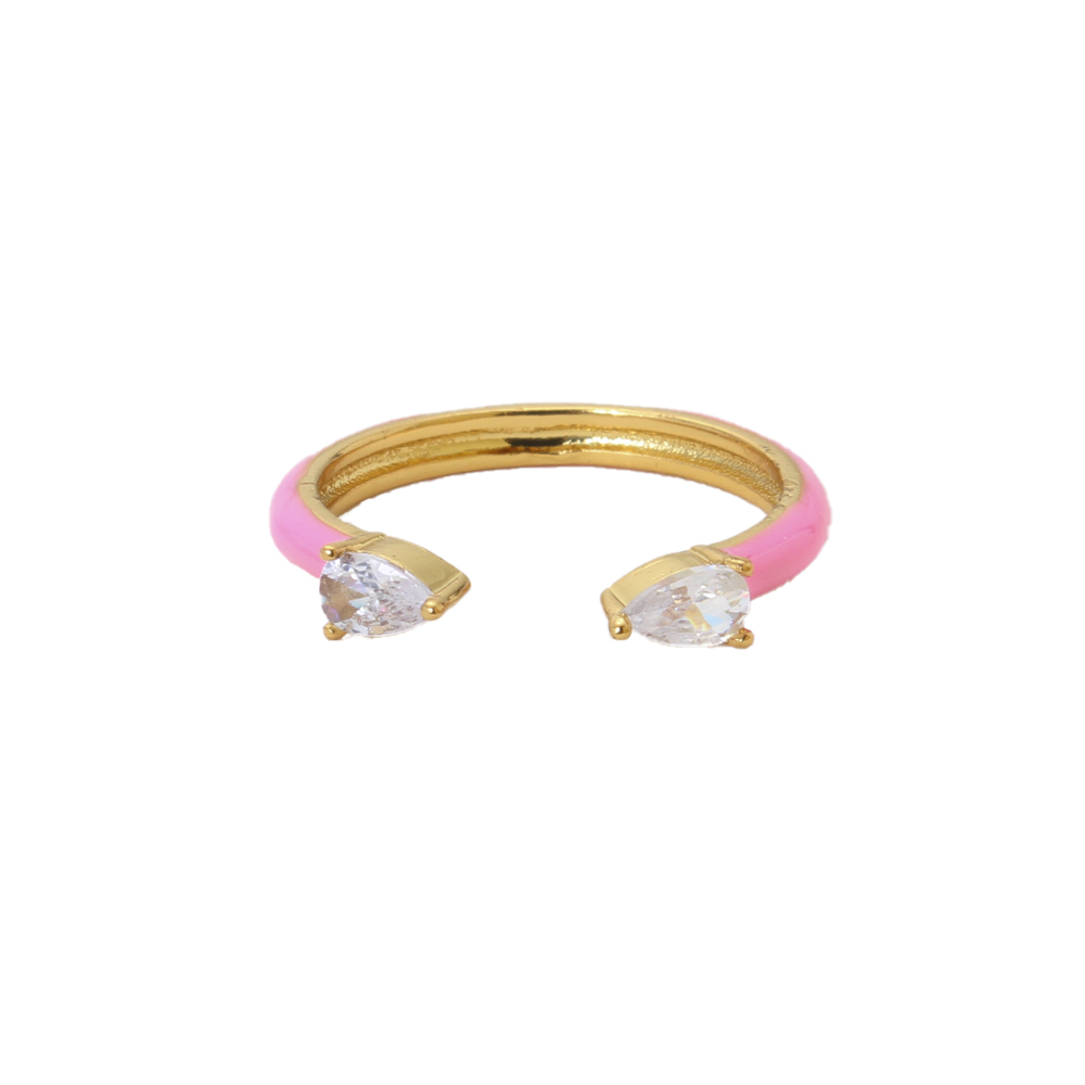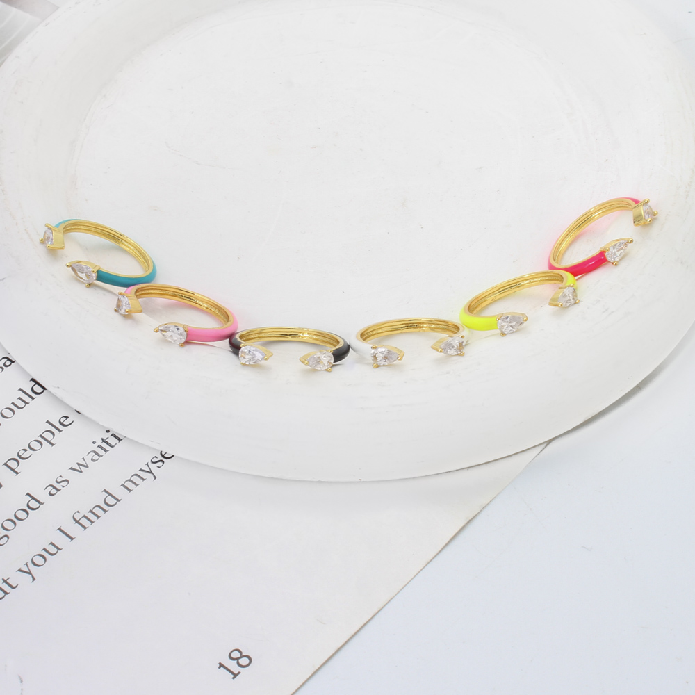 Cubique anneau en laiton Circonia Micro Pave, larme, Placage, bijoux de mode & pavé de micro zircon & émail, plus de couleurs à choisir, protéger l'environnement, sans nickel, plomb et cadmium, 21.80x21.70x3.50mm, Vendu par PC