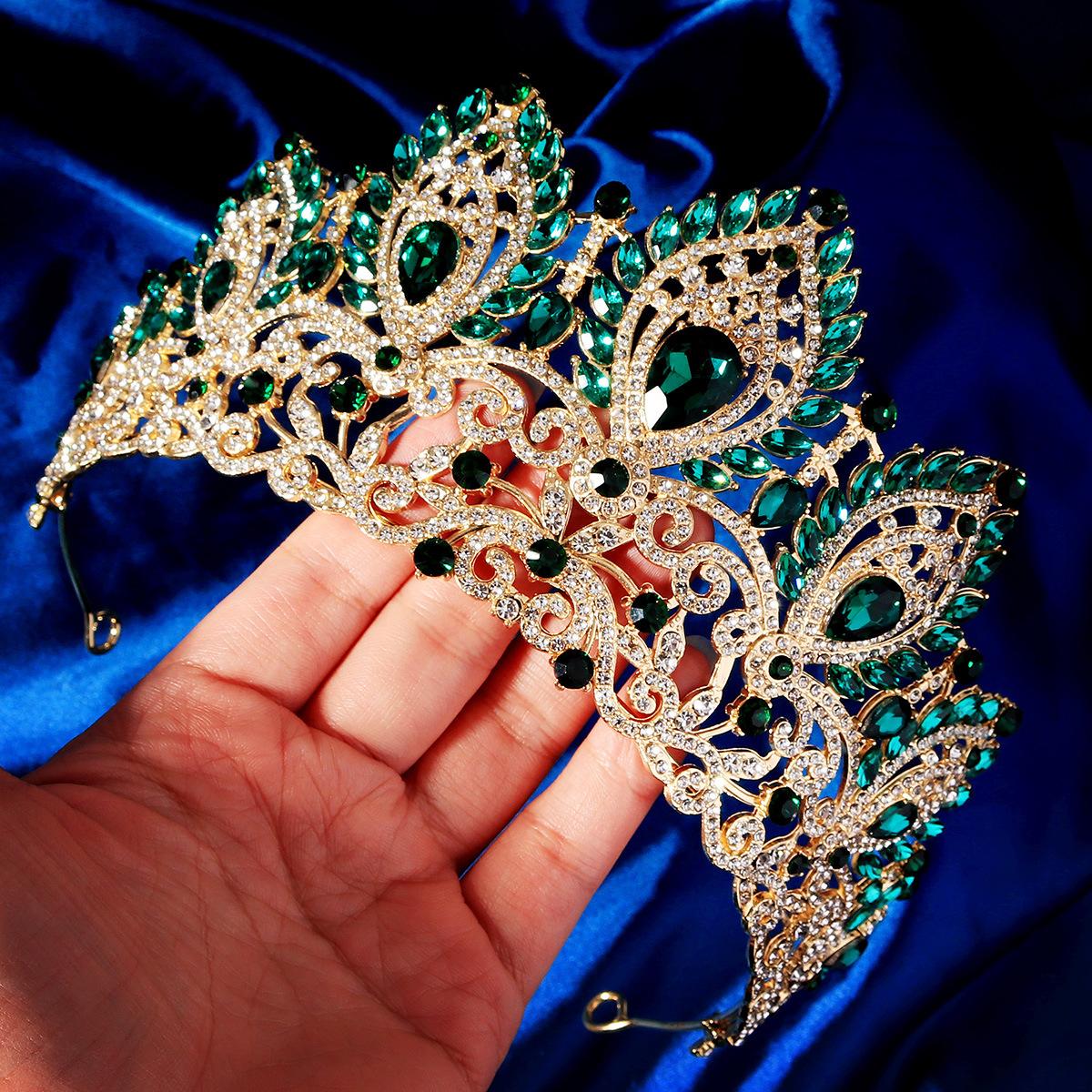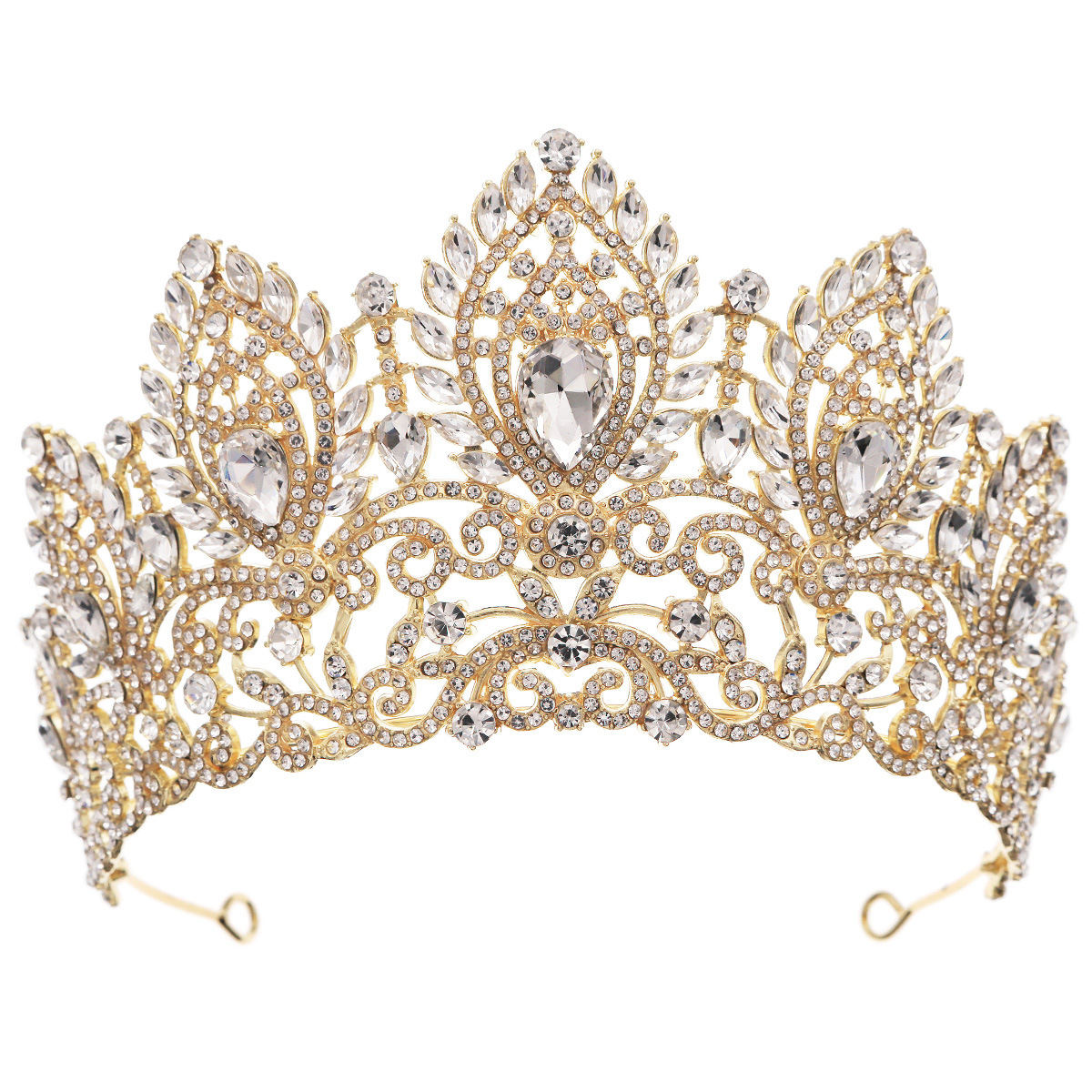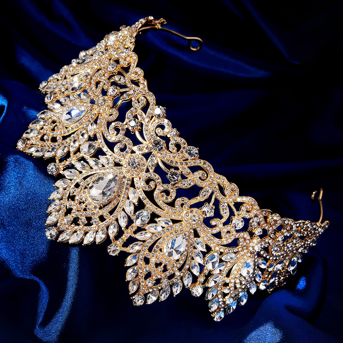 Diadèmes, alliage de zinc, couronne, Placage de couleur d'or, pour femme & avec strass & creux, plus de couleurs à choisir, 140x90mm, Vendu par PC