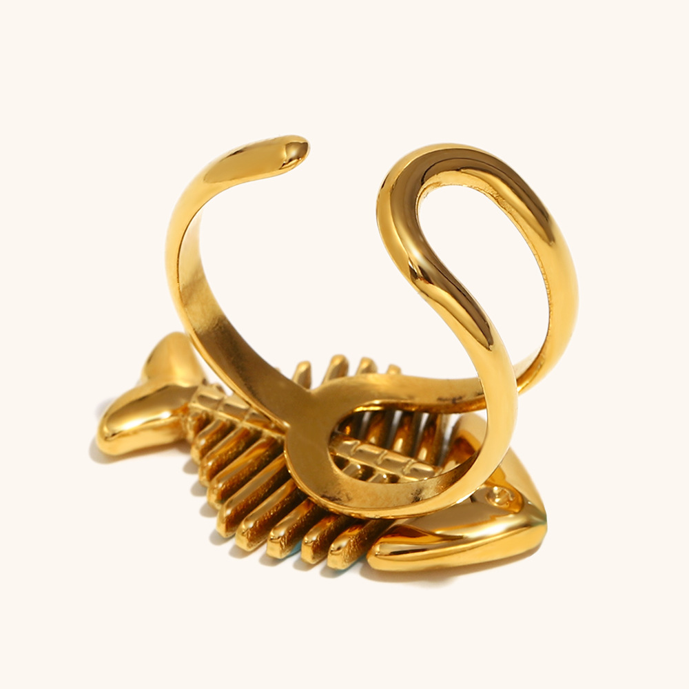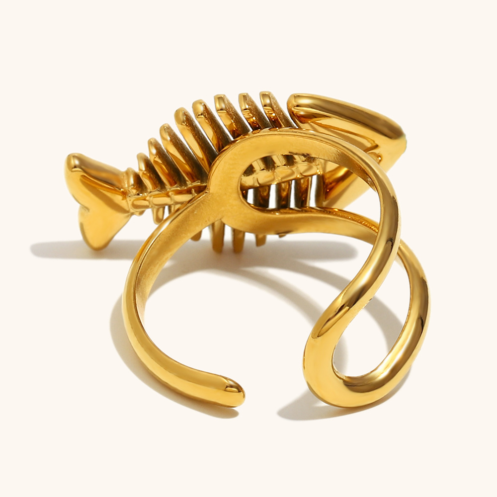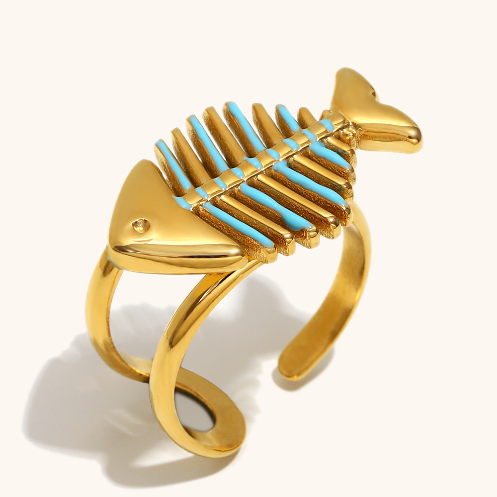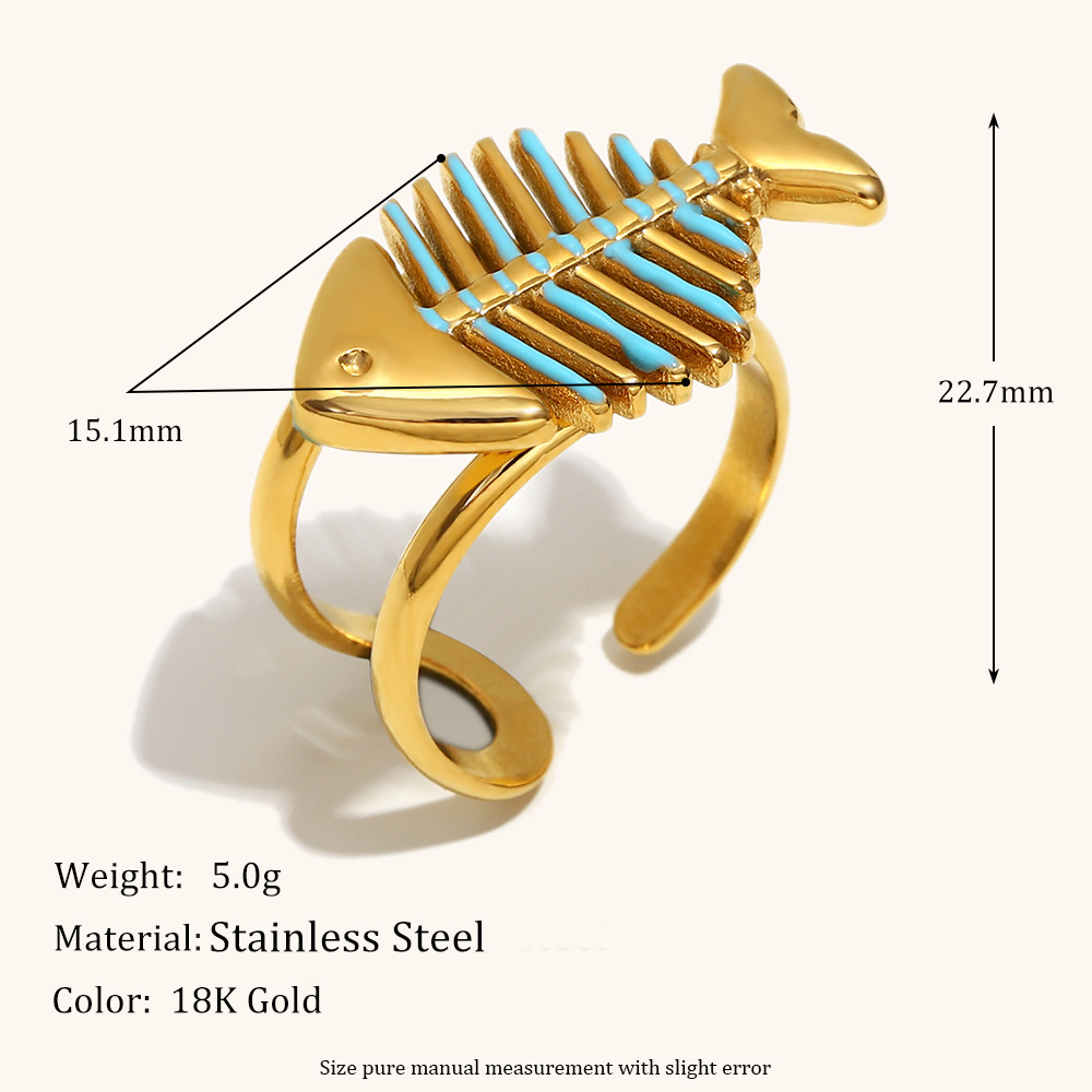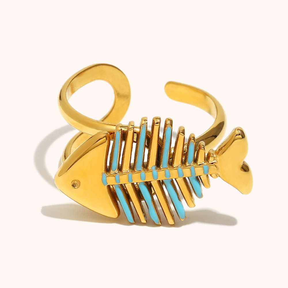 Émail Acier inoxydable Bague, Acier inoxydable 304, poisson, Placage de couleur d'or, Réglable & DIY & émail, Vendu par PC