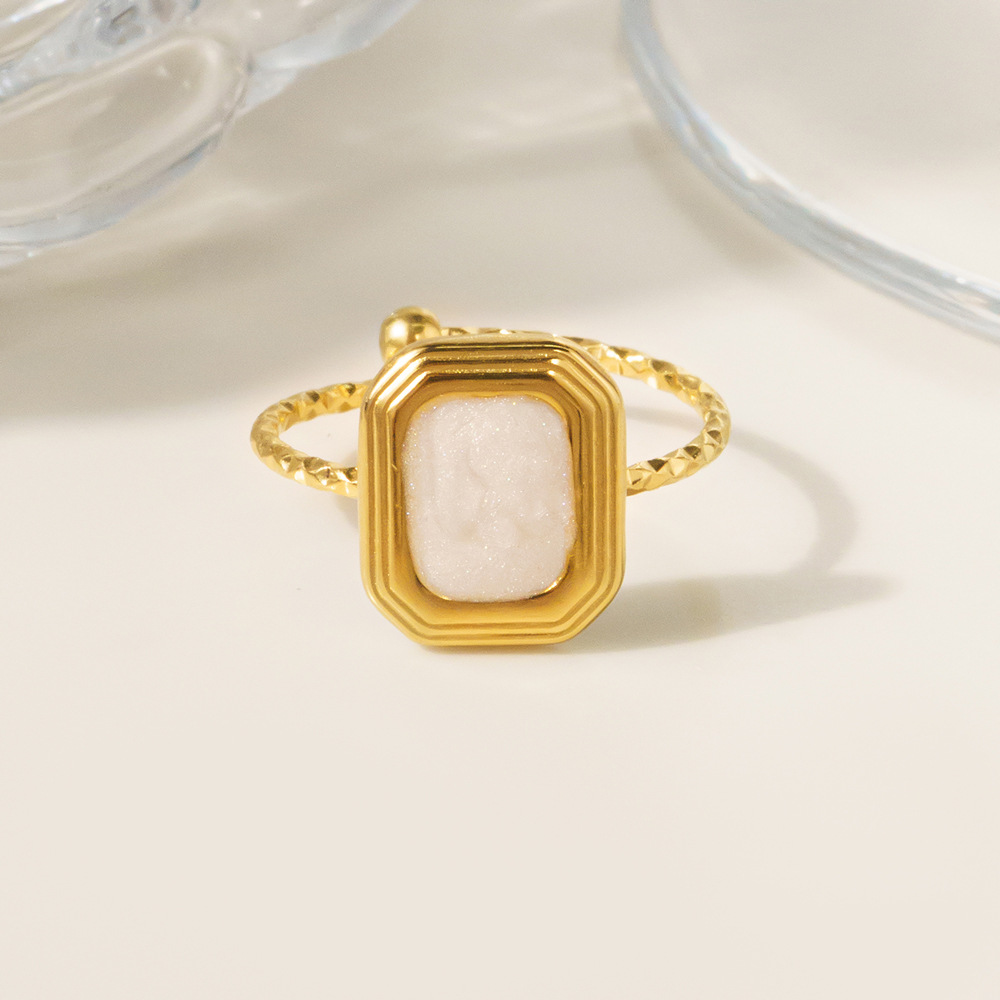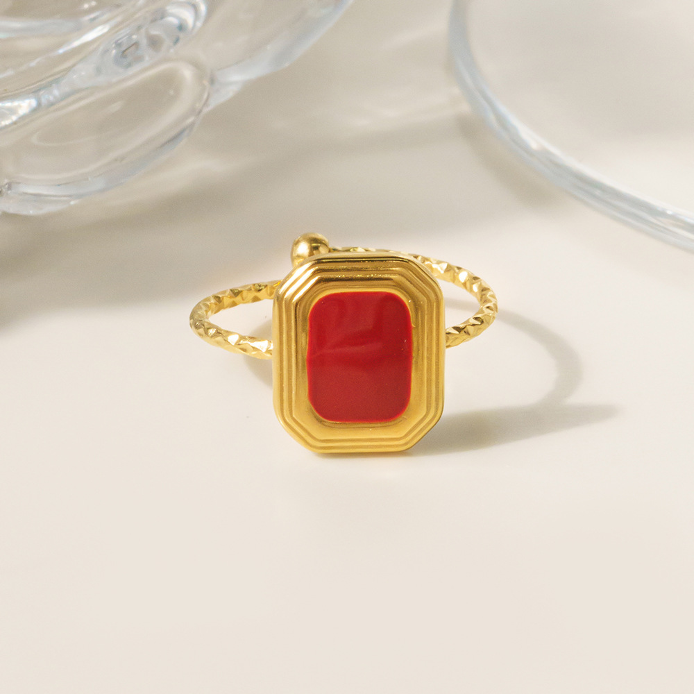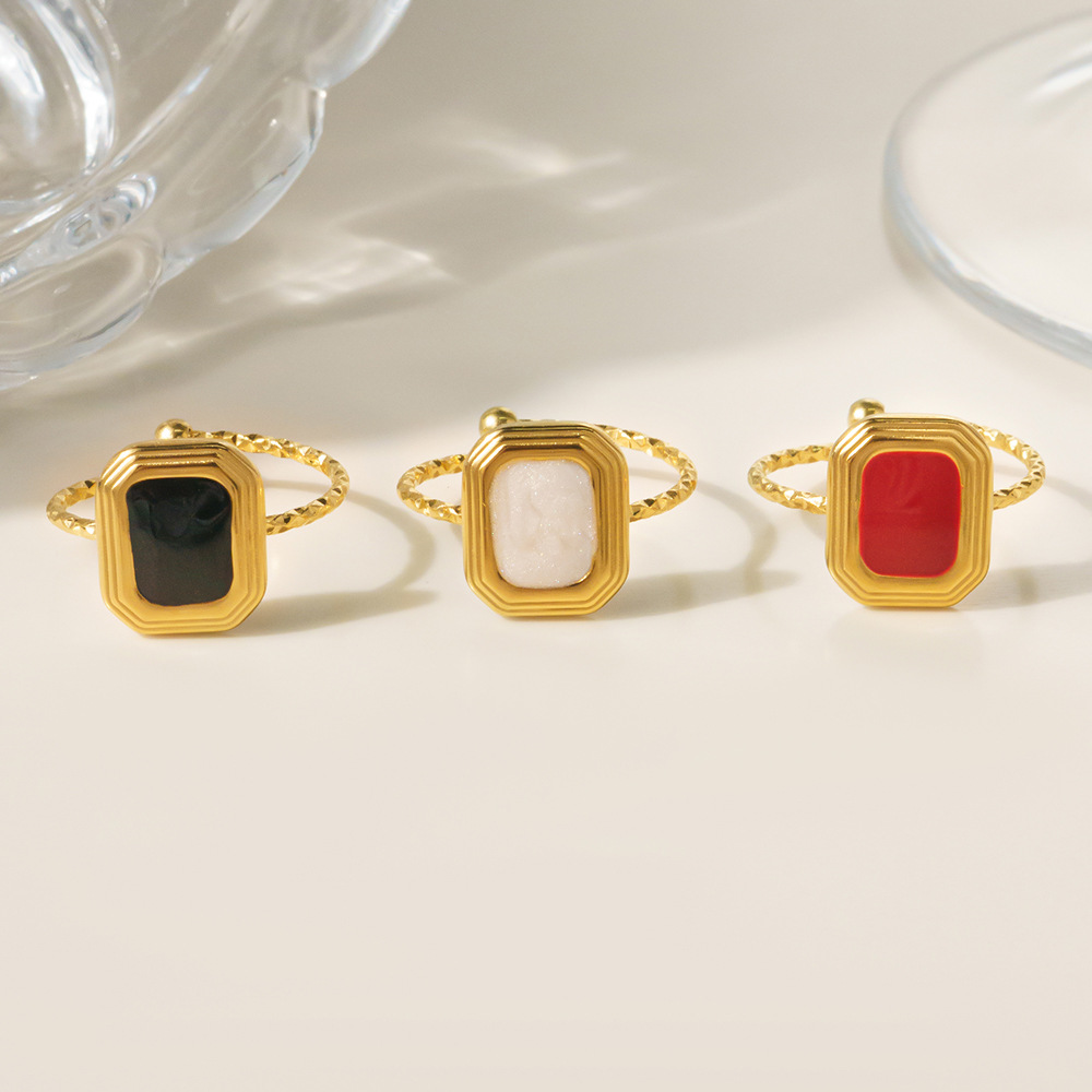 Émail Acier inoxydable Bague, Acier inoxydable 304, bijoux de mode & pour femme & émail, doré, Vendu par PC