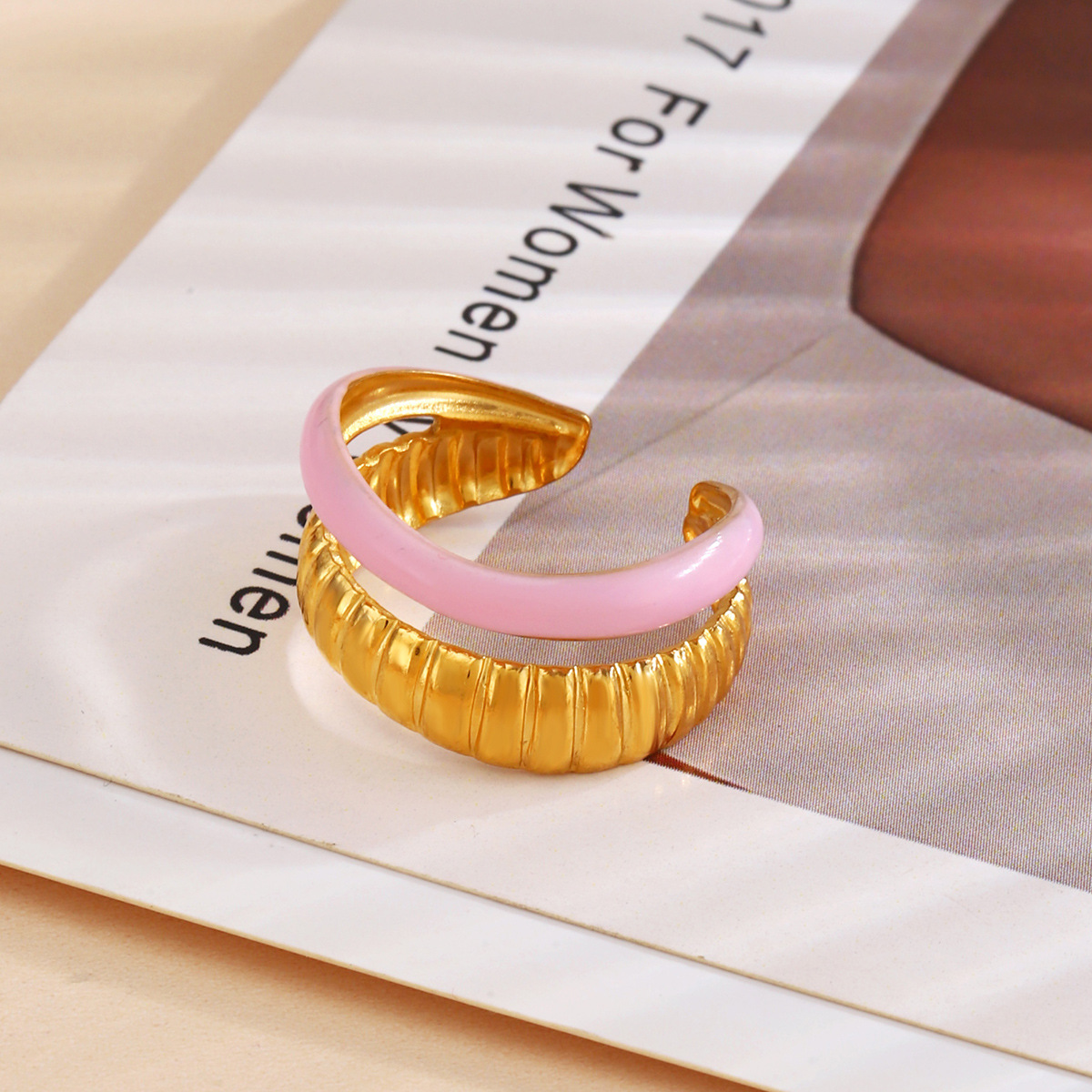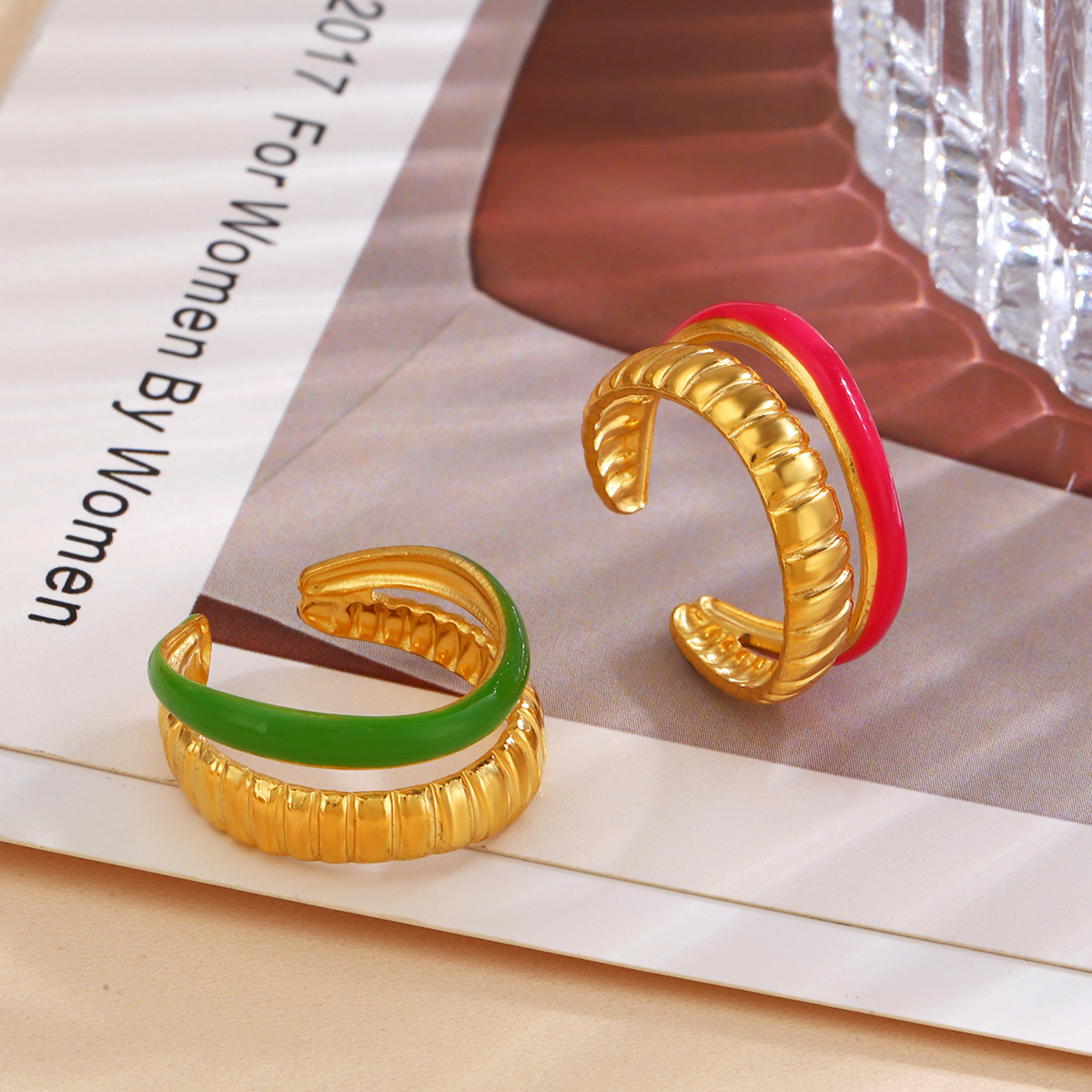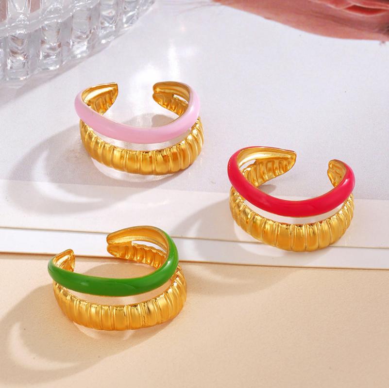 Émail Acier inoxydable Bague, Acier inoxydable 304, Placage de couleur d'or, pour femme & émail & creux, plus de couleurs à choisir, Vendu par PC