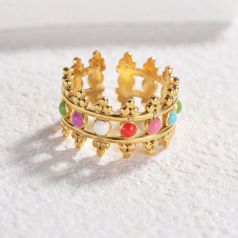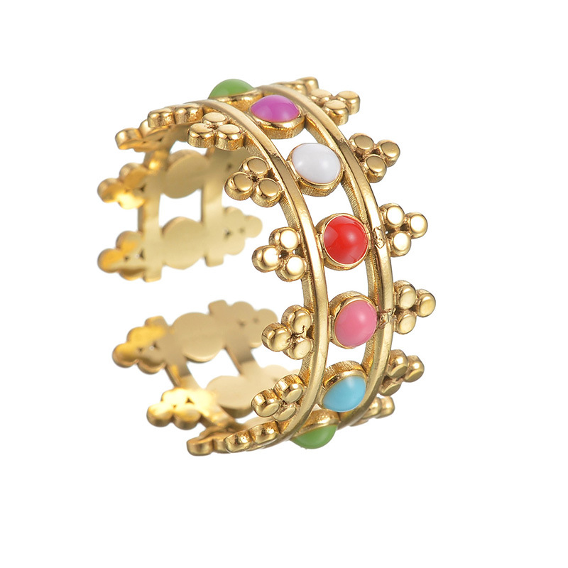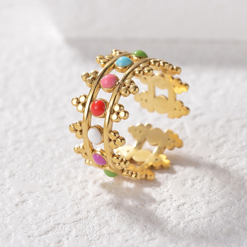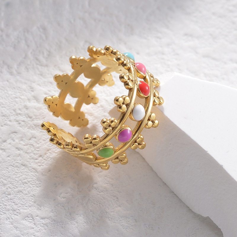 Émail Acier inoxydable Bague, Acier inoxydable 304, Placage, pour femme & émail & creux, doré, Vendu par PC