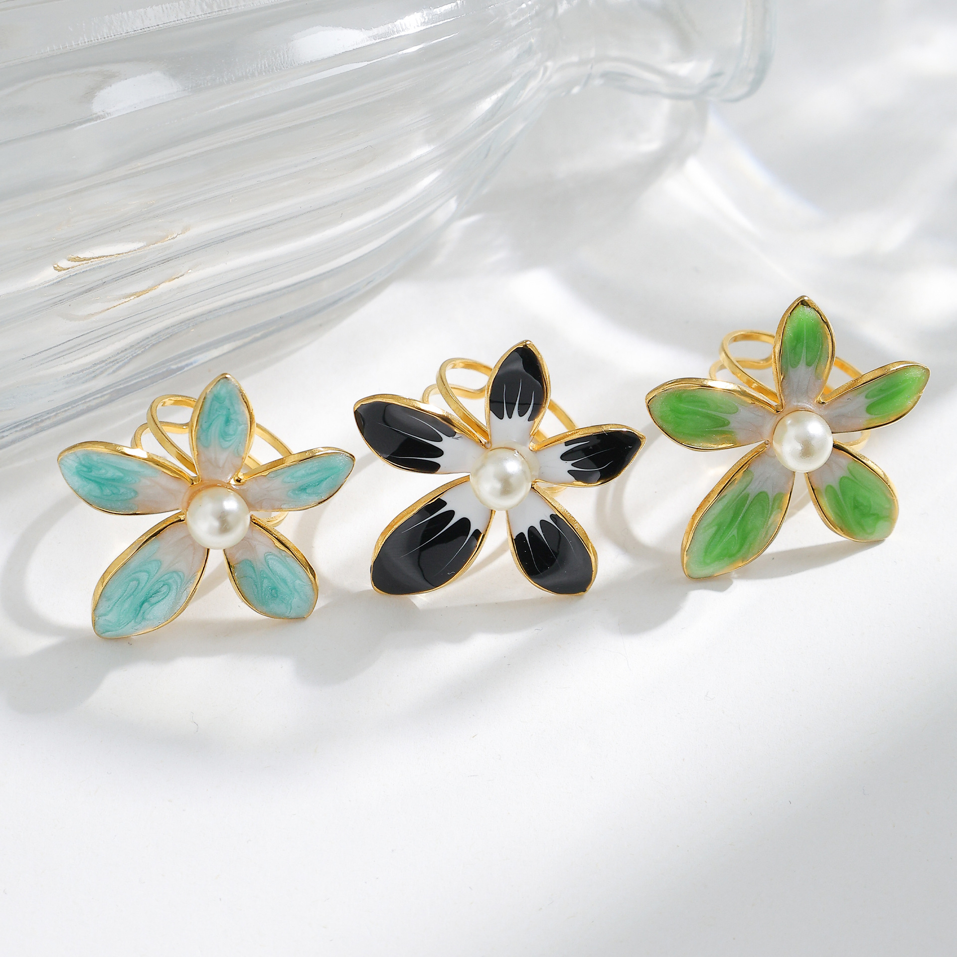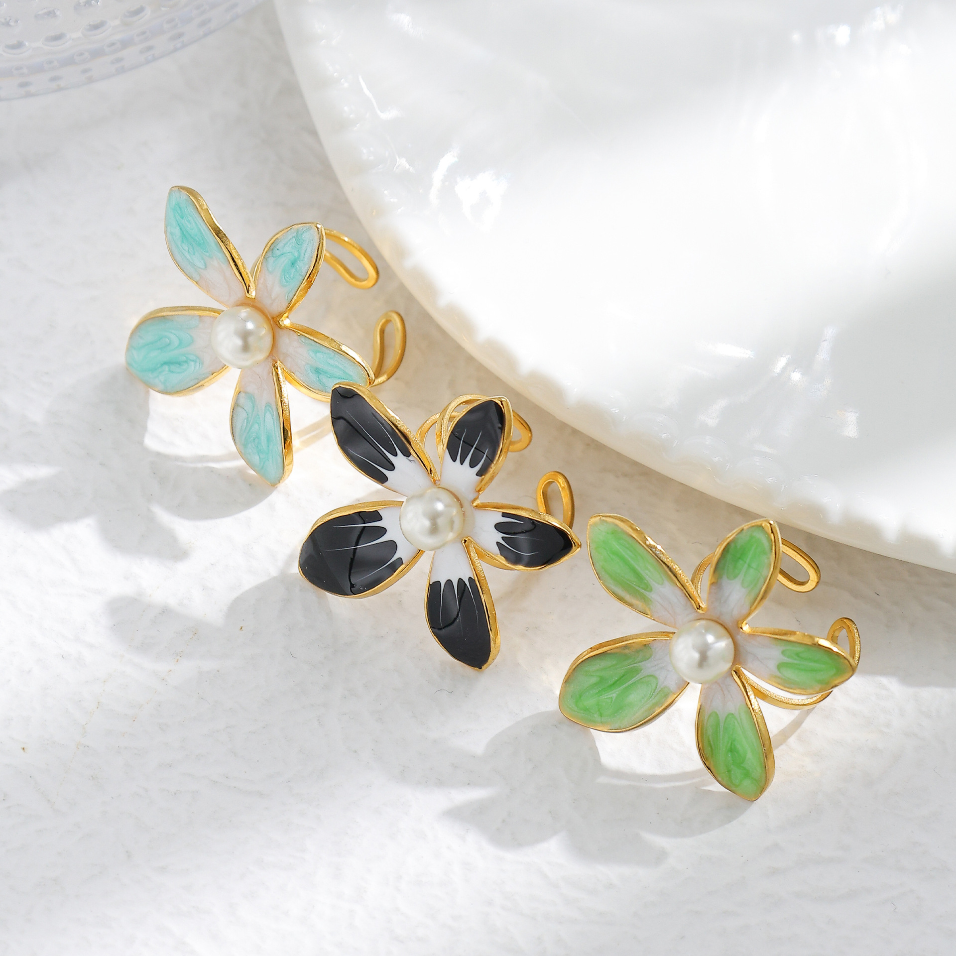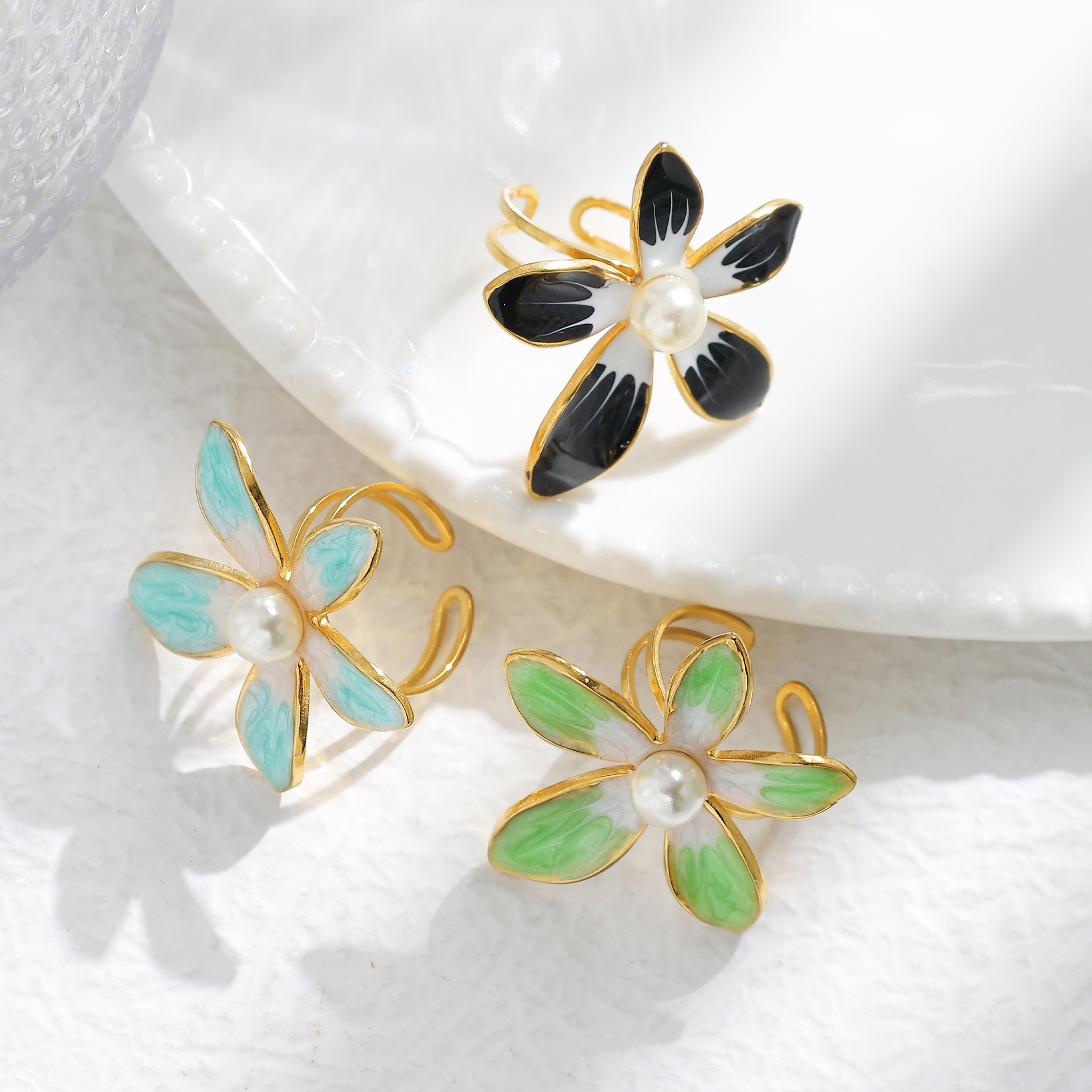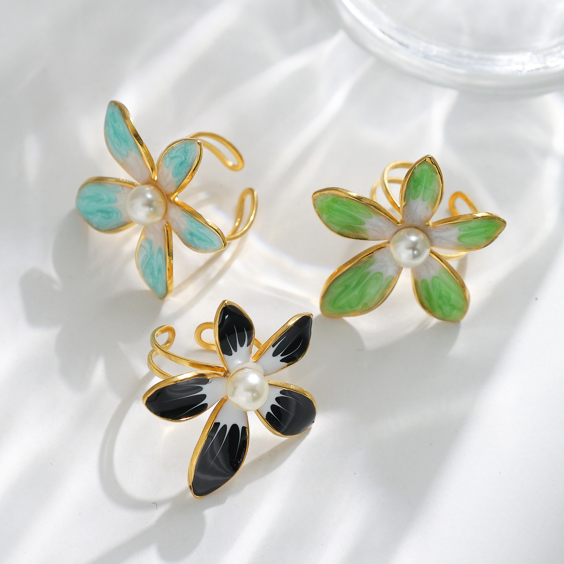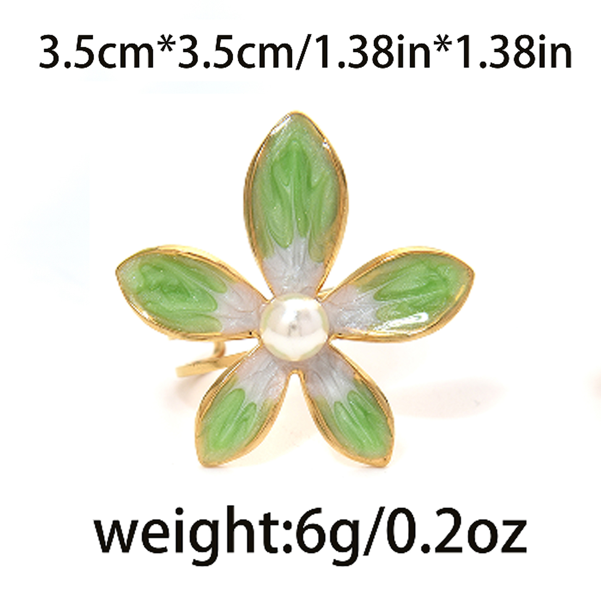 Émail Acier inoxydable Bague, Acier inoxydable 304, avec perle de plastique, fleur, Placage de couleur d'or, bijoux de mode & pour femme & émail, plus de couleurs à choisir, Vendu par PC