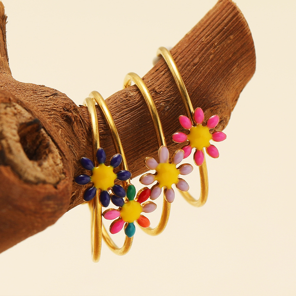 Émail Acier inoxydable Bague, Acier inoxydable 304, Placage de couleur d'or, bijoux de mode & émail, plus de couleurs à choisir, 5PC/sac, Vendu par sac