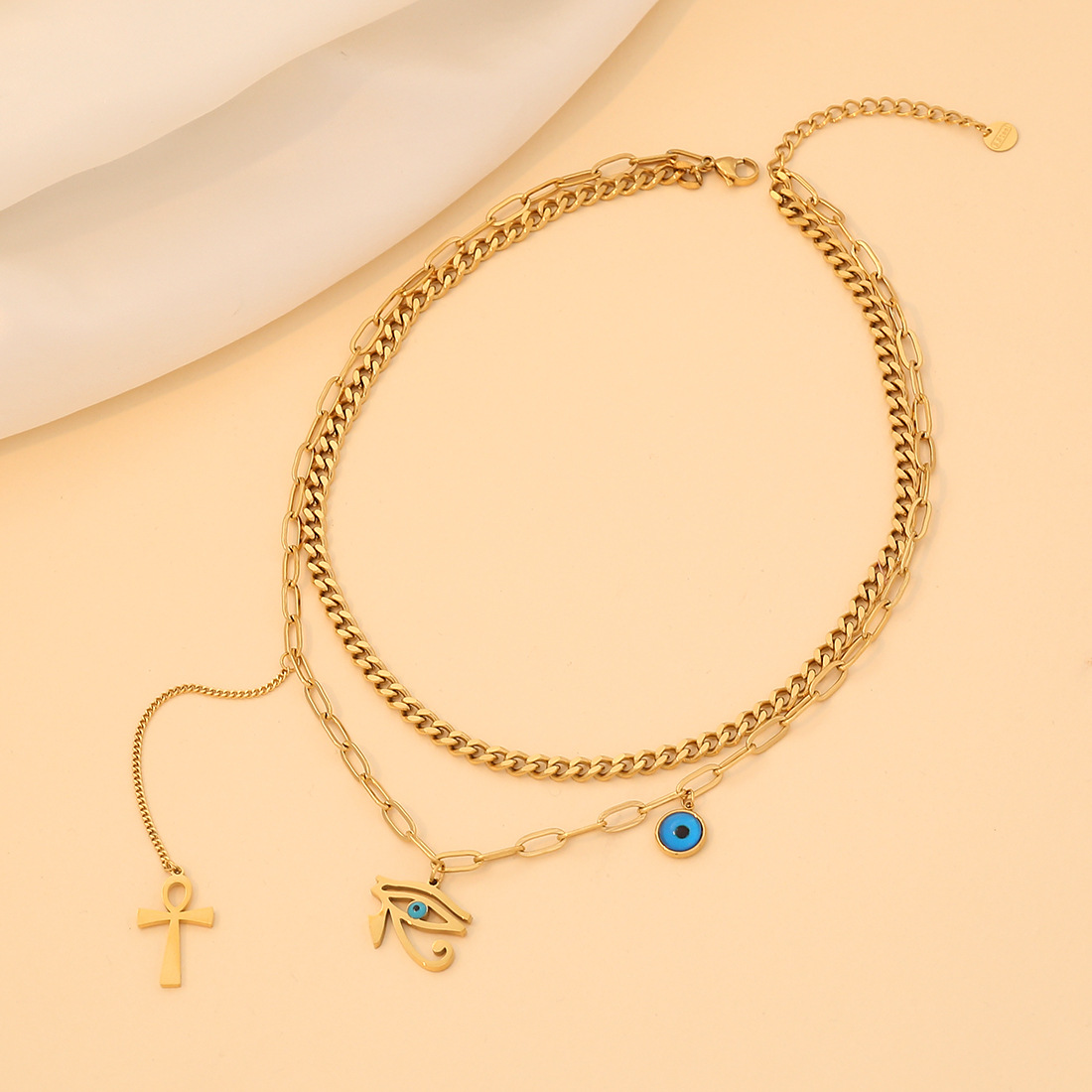 Ensemble de bijoux de mauvais œil, Acier inoxydable 304, Placage, styles différents pour le choix & pour femme & émail, doré, Vendu par PC