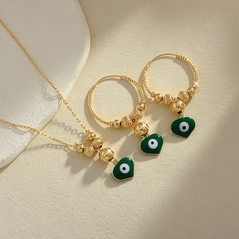 Ensemble de bijoux de mauvais œil, laiton, Placage, bijoux de mode & pour femme & émail, plus de couleurs à choisir, Vendu par fixé