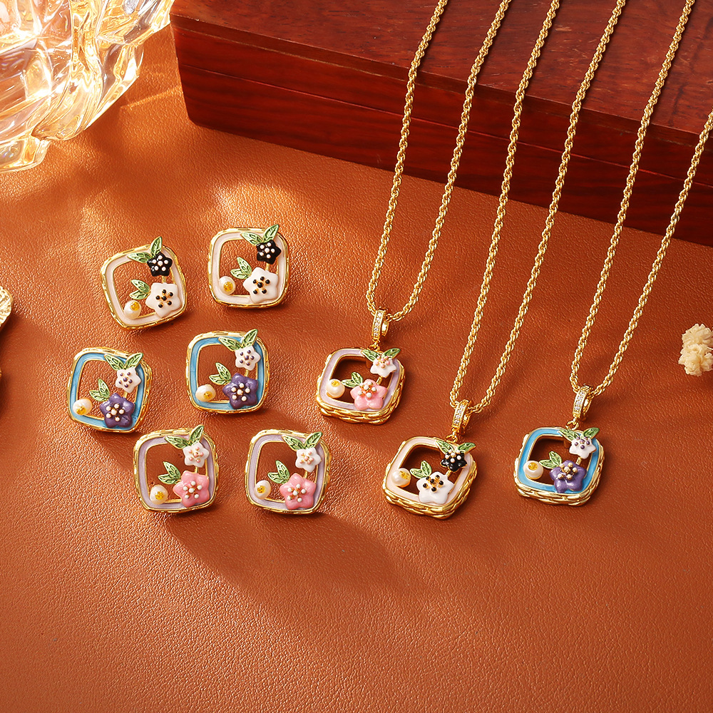1:Pink earrings2:White earrings3:Purple earrings4:Pink necklace5:White necklace6:Purple necklace