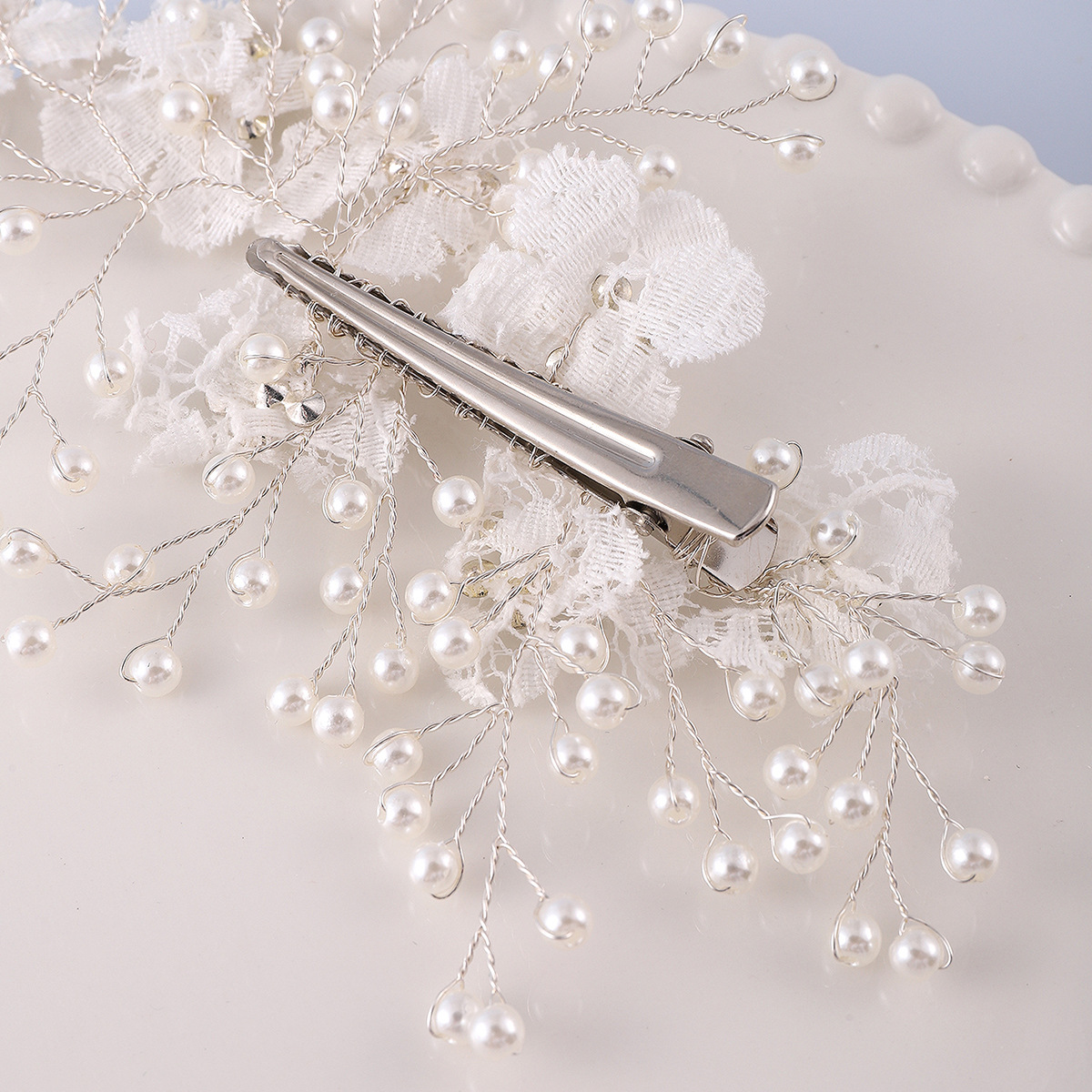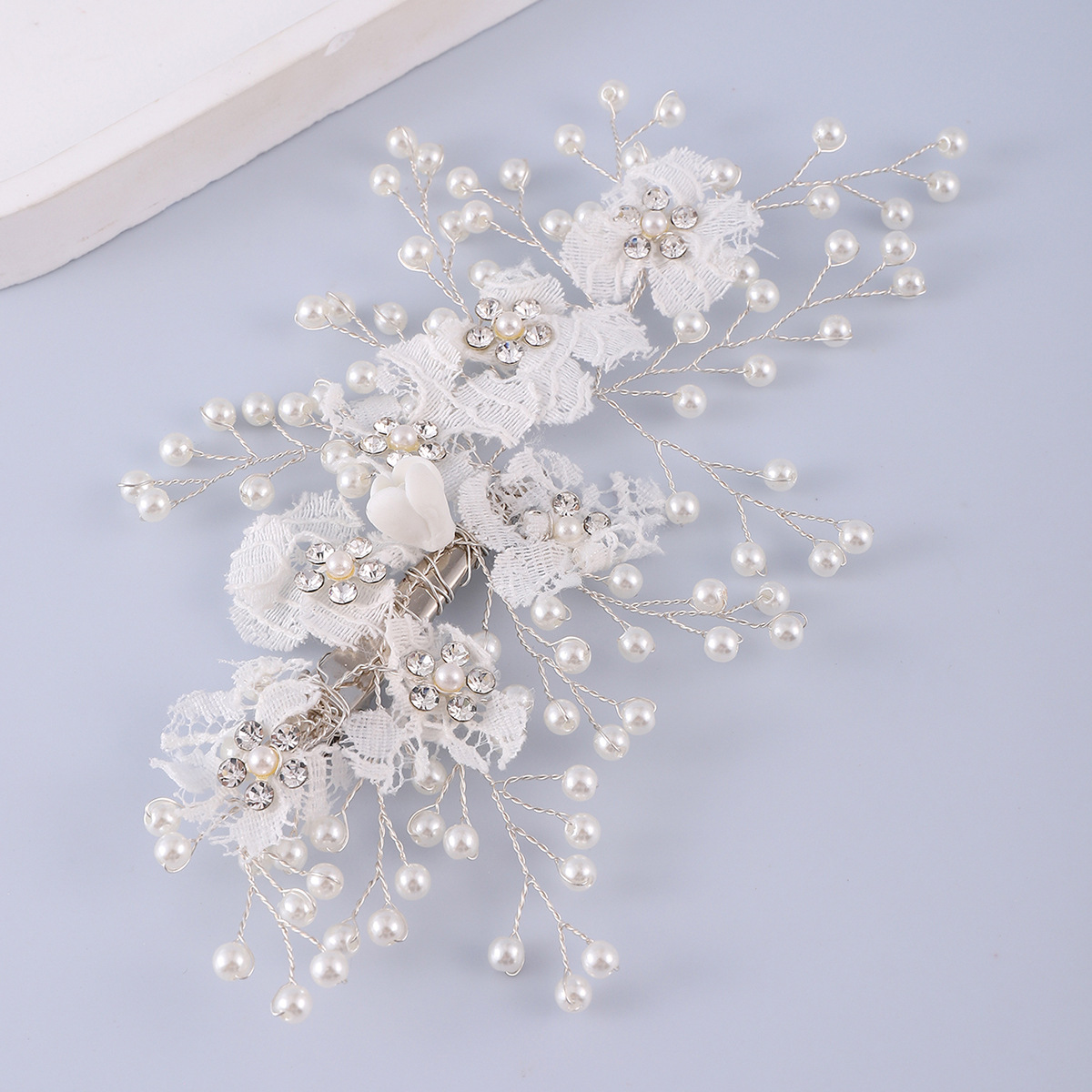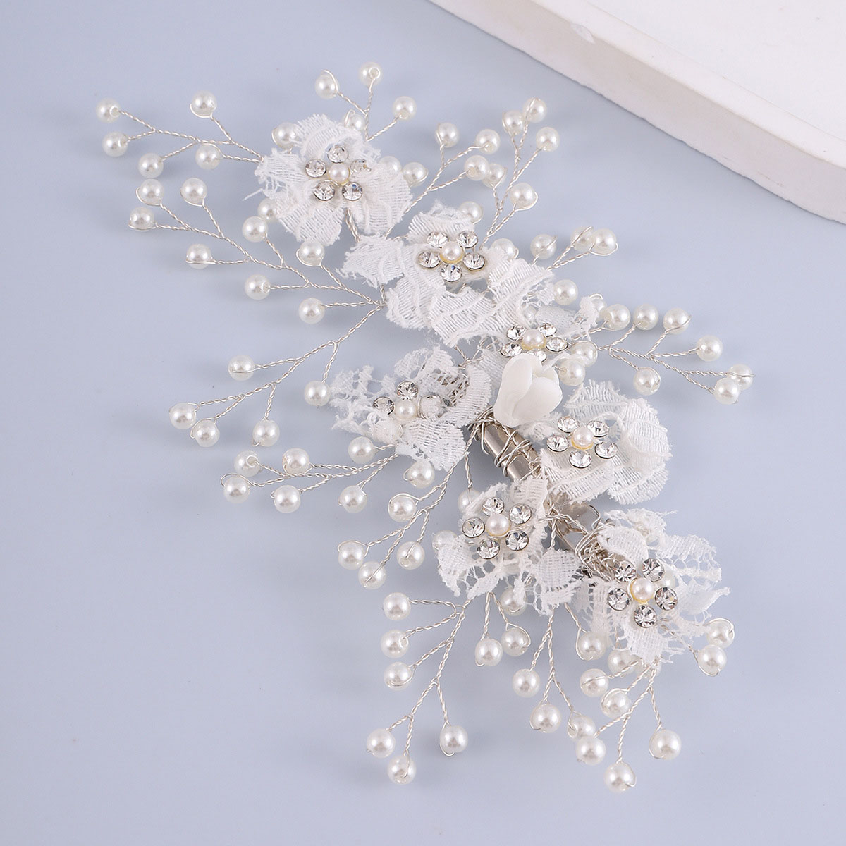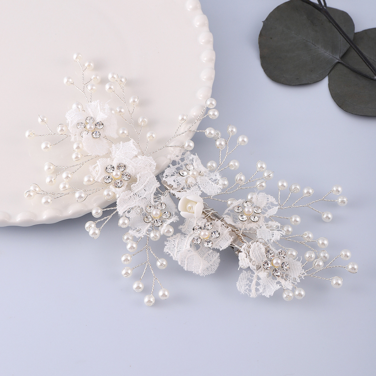Épingles à cheveux de mariée, alliage de zinc, avec fil en laiton & lacet & perle de plastique, fait à la main, bijoux de mode & pour femme & avec strass, argent, Vendu par PC