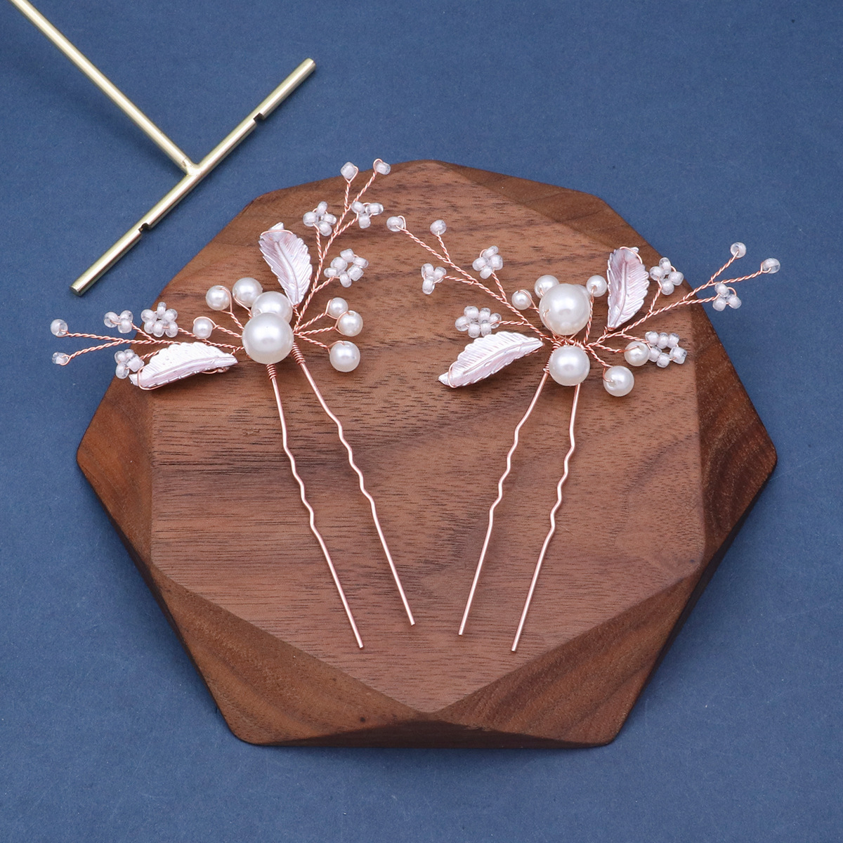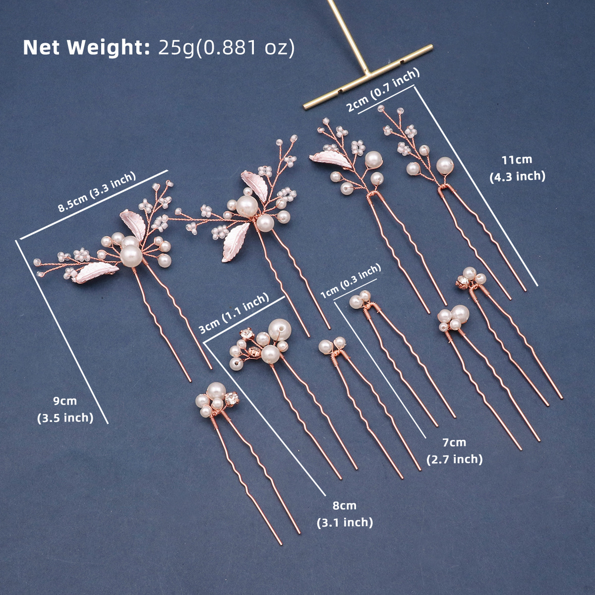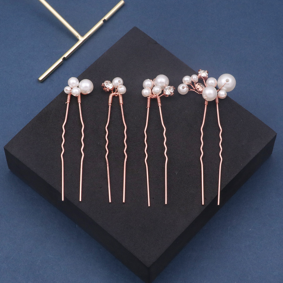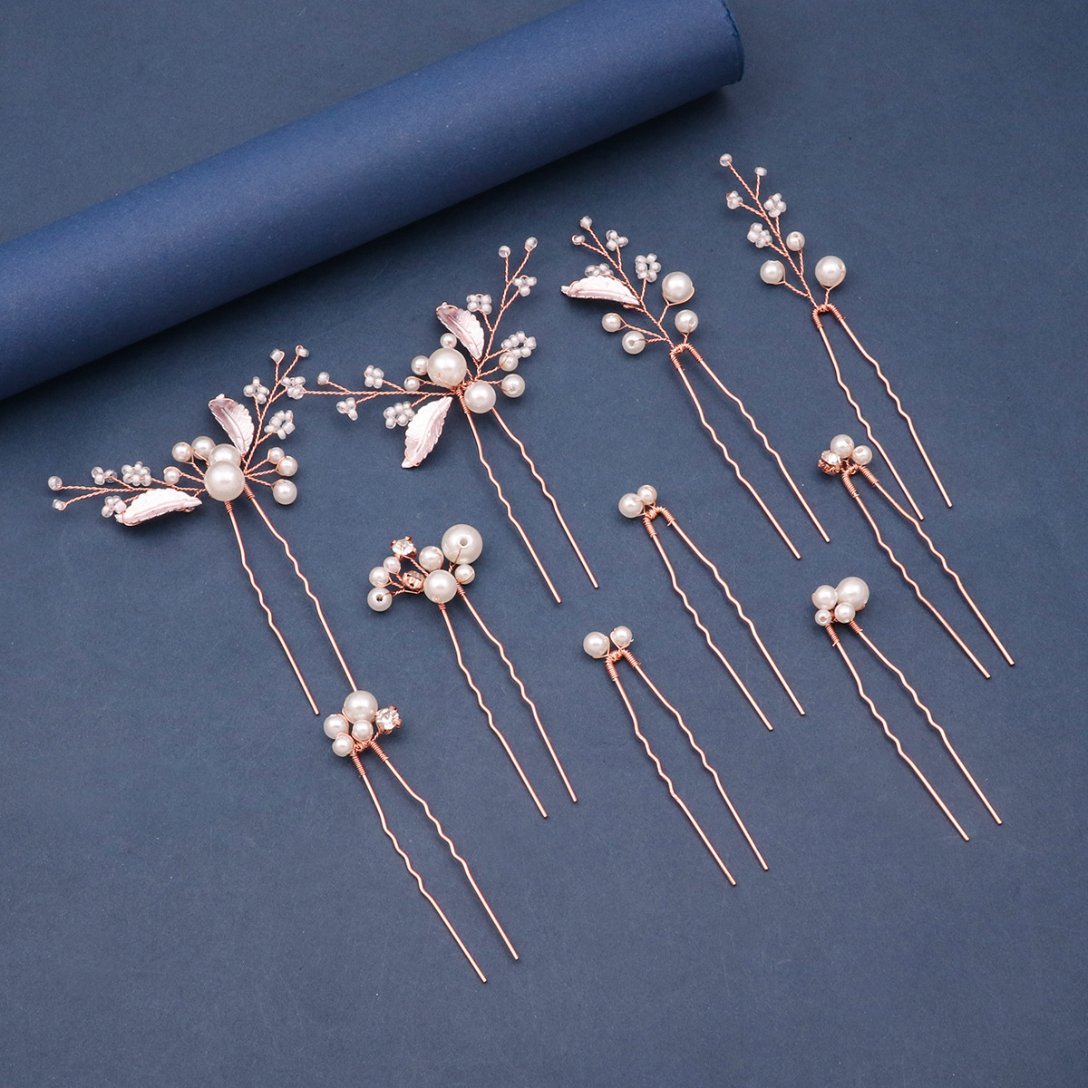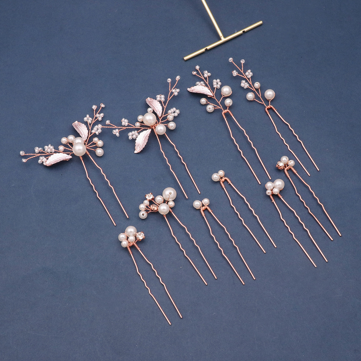 Épingles à cheveux de mariée, alliage de zinc, avec fil en laiton & perle de plastique, fait à la main, 10 pièces & pour femme & avec strass, couleur or rose, Vendu par fixé