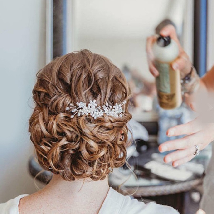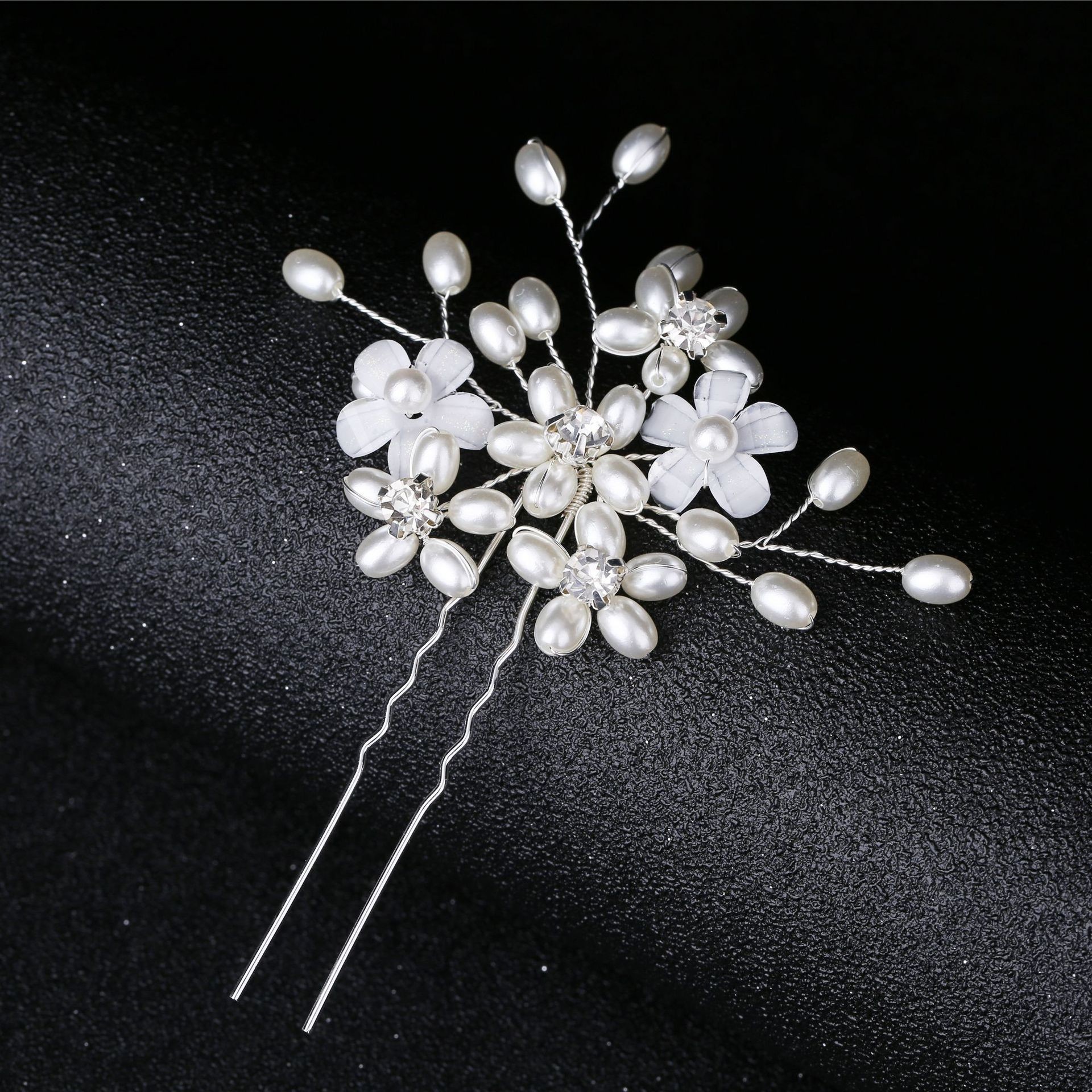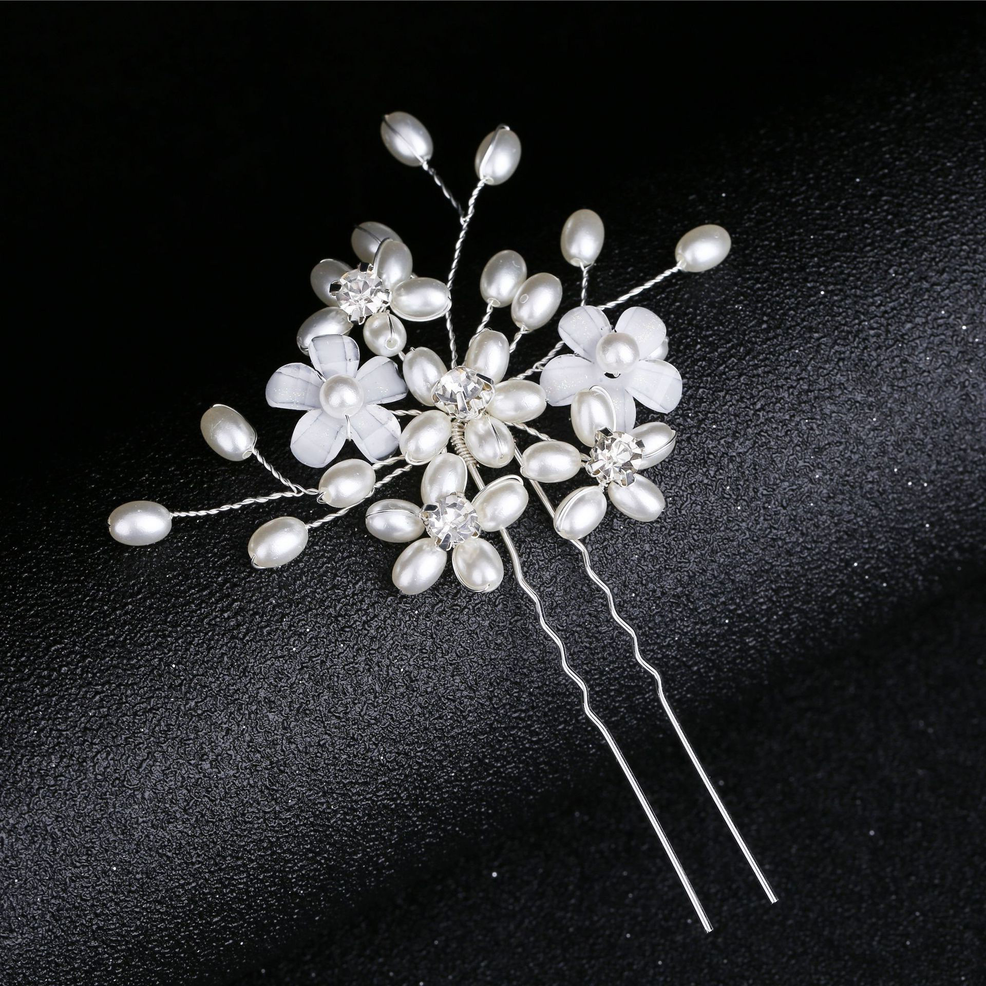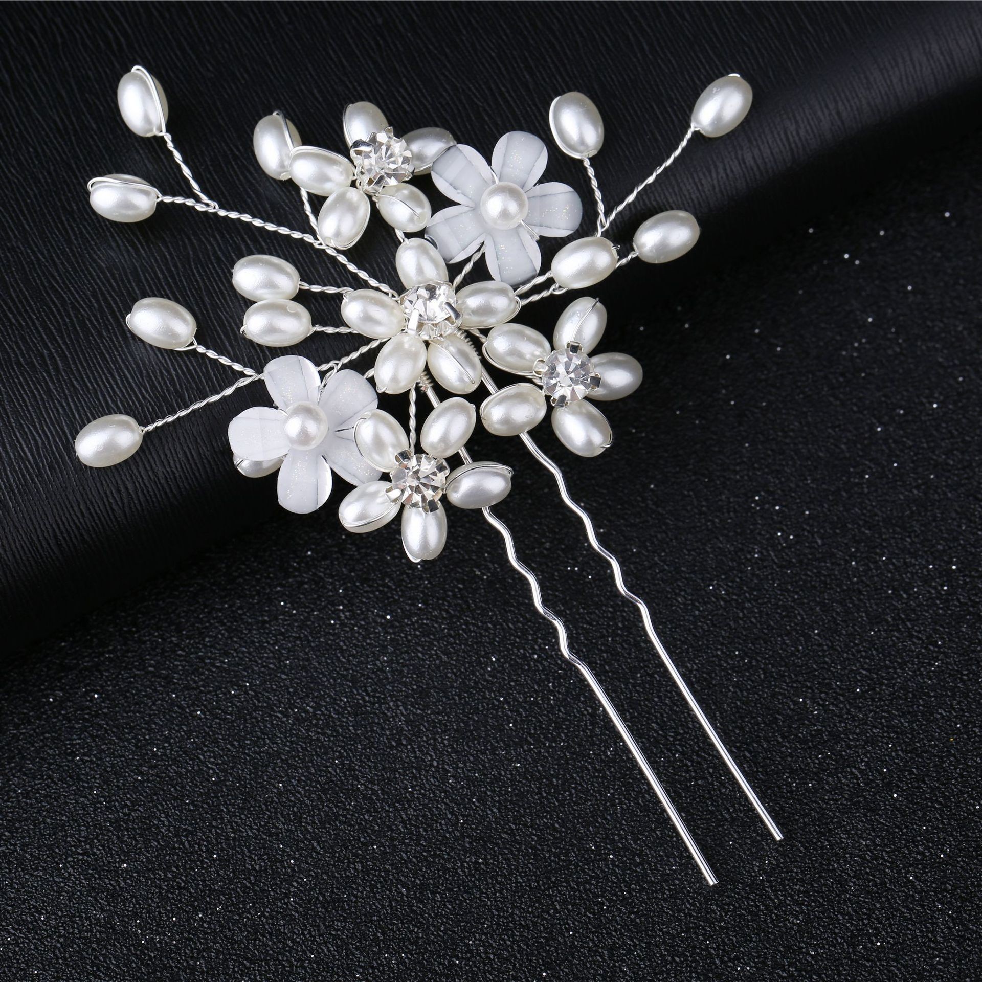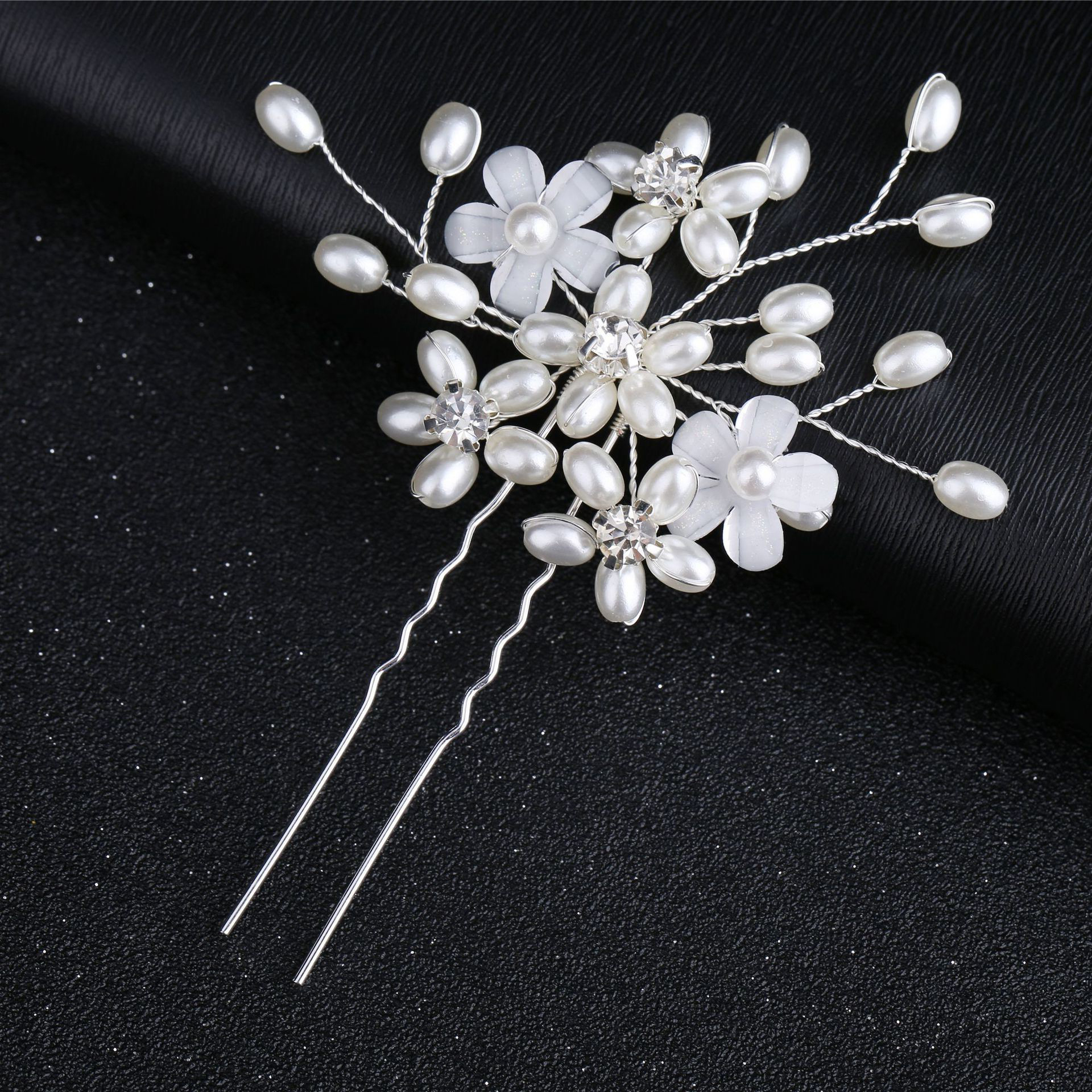 Épingles à cheveux de mariée, alliage de zinc, avec fil en laiton & perle de plastique, fait à la main, bijoux de mode & pour femme & avec strass, argent, 100x25x5mm, Vendu par PC
