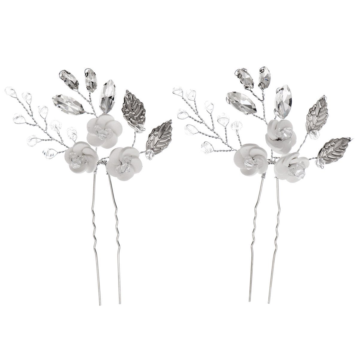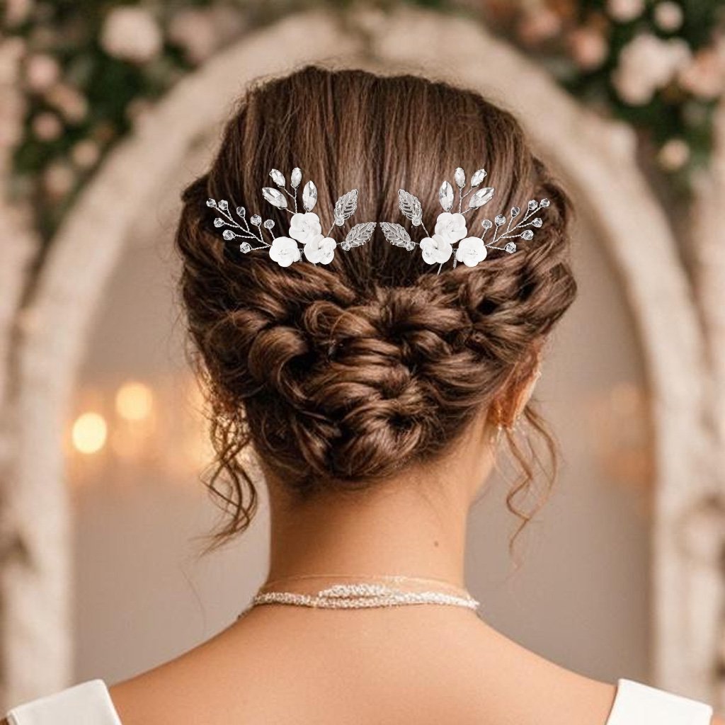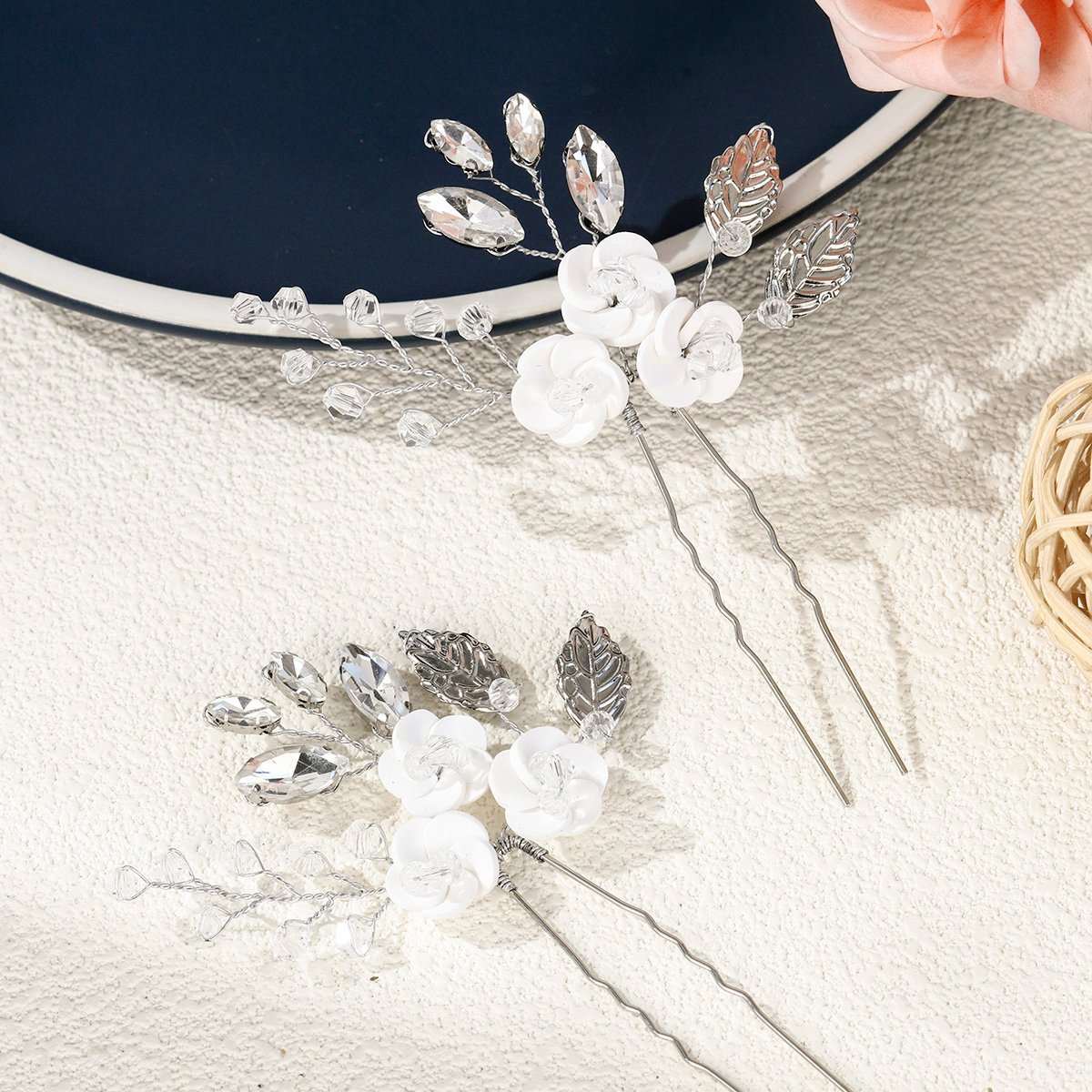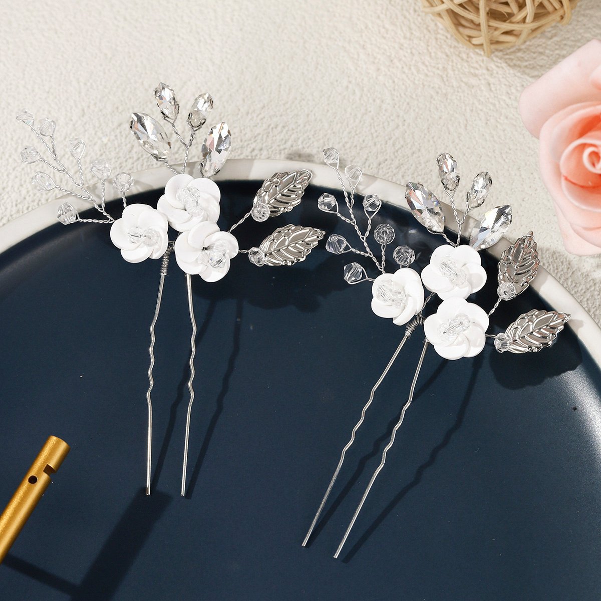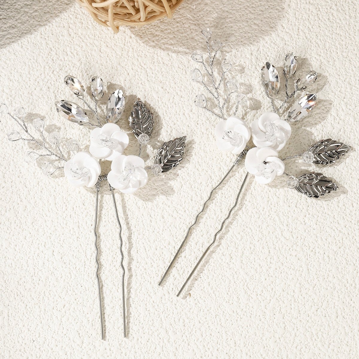 Épingles à cheveux de mariée, alliage de zinc, avec fil en laiton & argile de polymère & cristal & strass, fait à la main, 2 pièces & bijoux de mode & pour femme, argent, Vendu par fixé