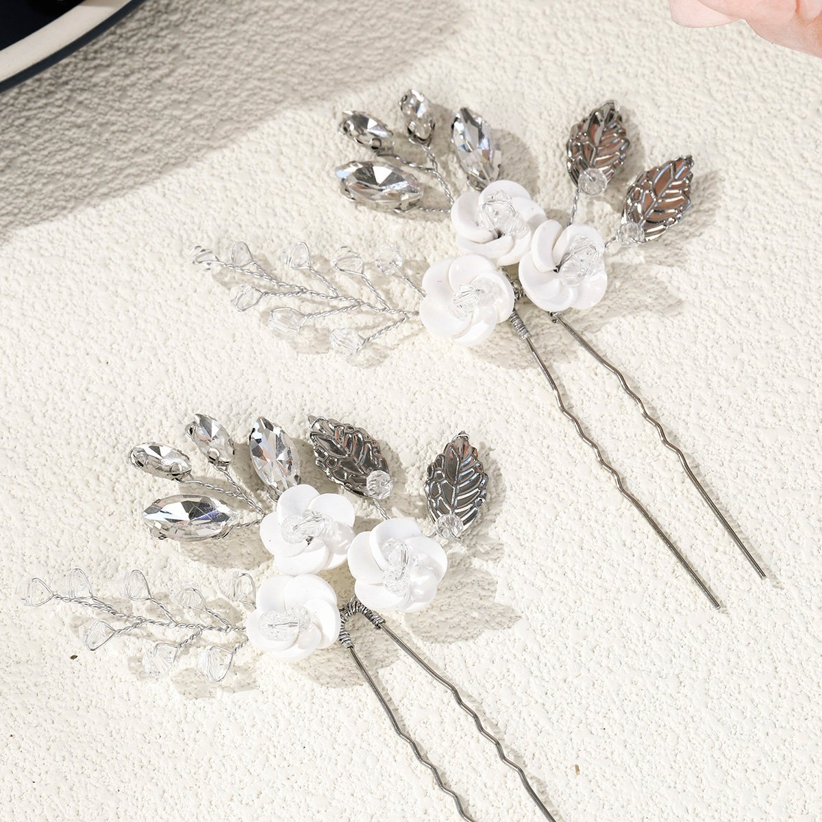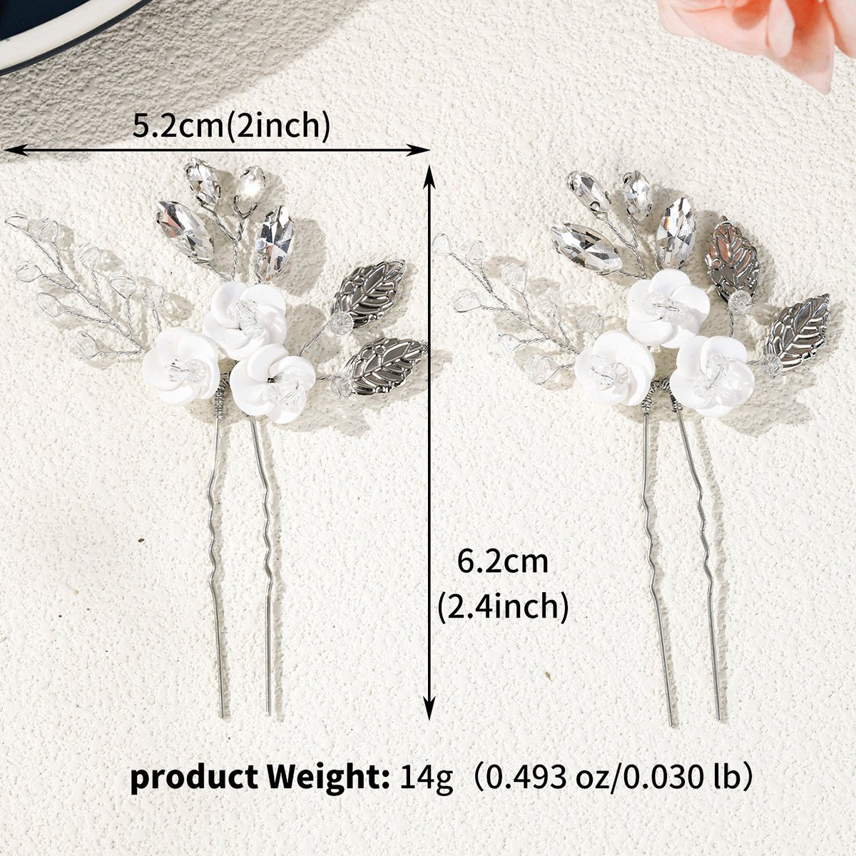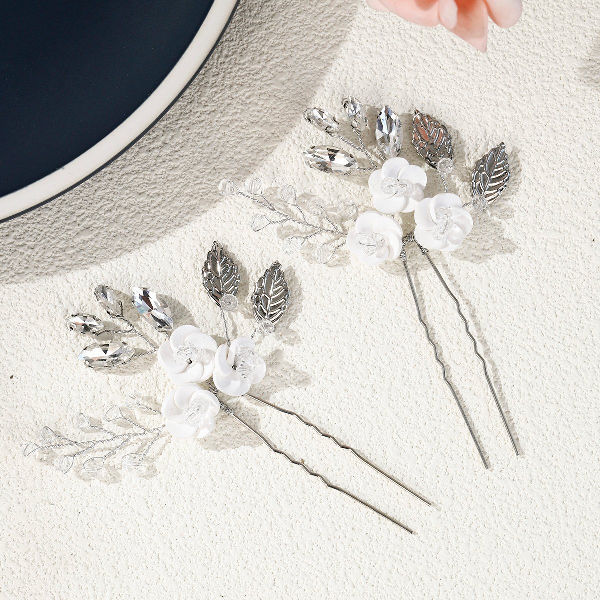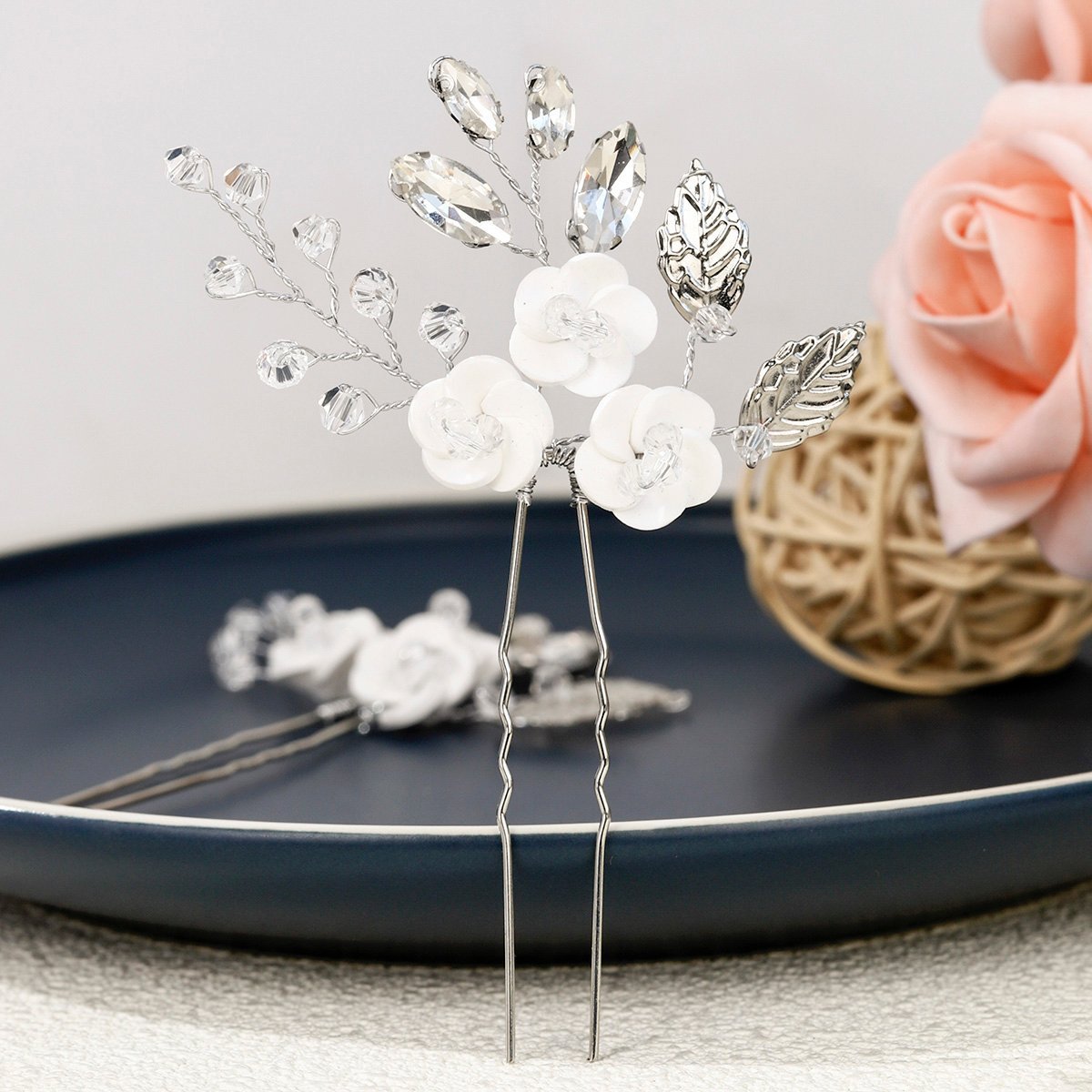 Épingles à cheveux de mariée, alliage de zinc, avec fil en laiton & argile de polymère & cristal & strass, fait à la main, 2 pièces & bijoux de mode & pour femme, argent, Vendu par fixé