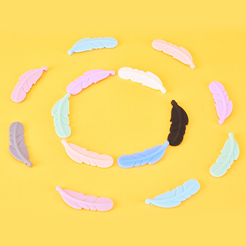 FDA Silicone Pendentif, forme de plume, DIY, plus de couleurs à choisir, 15x58mm, Vendu par PC