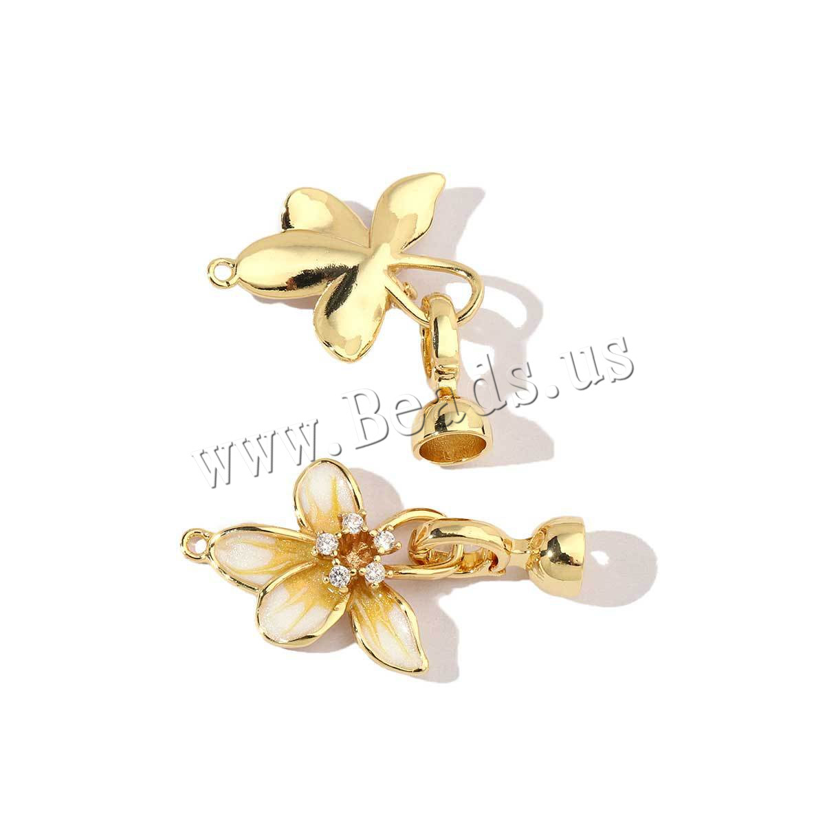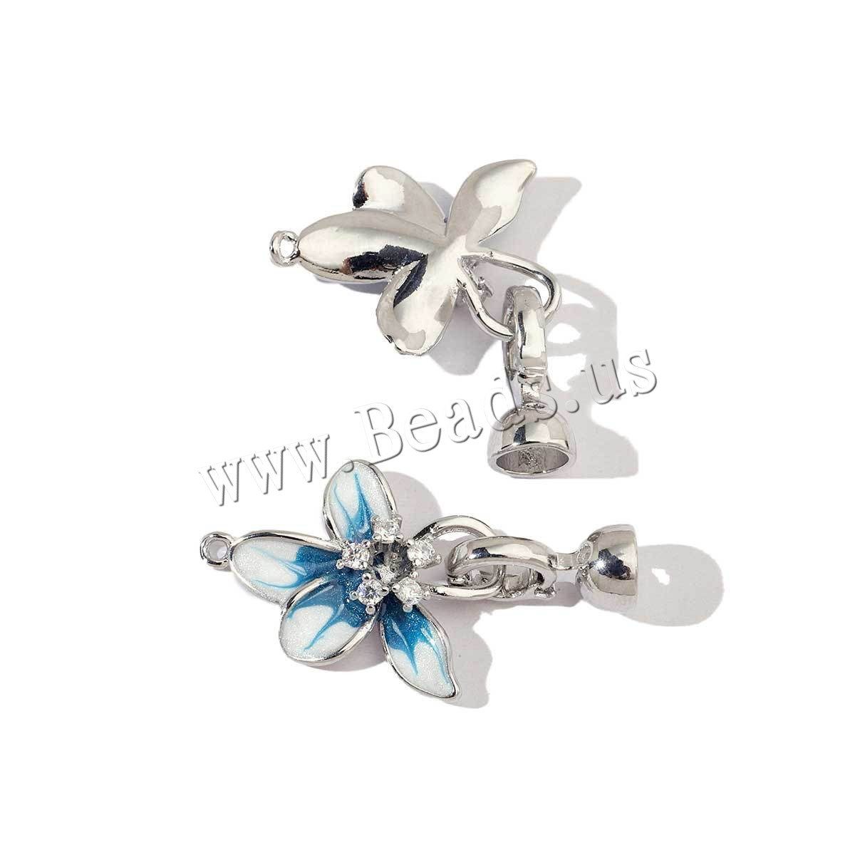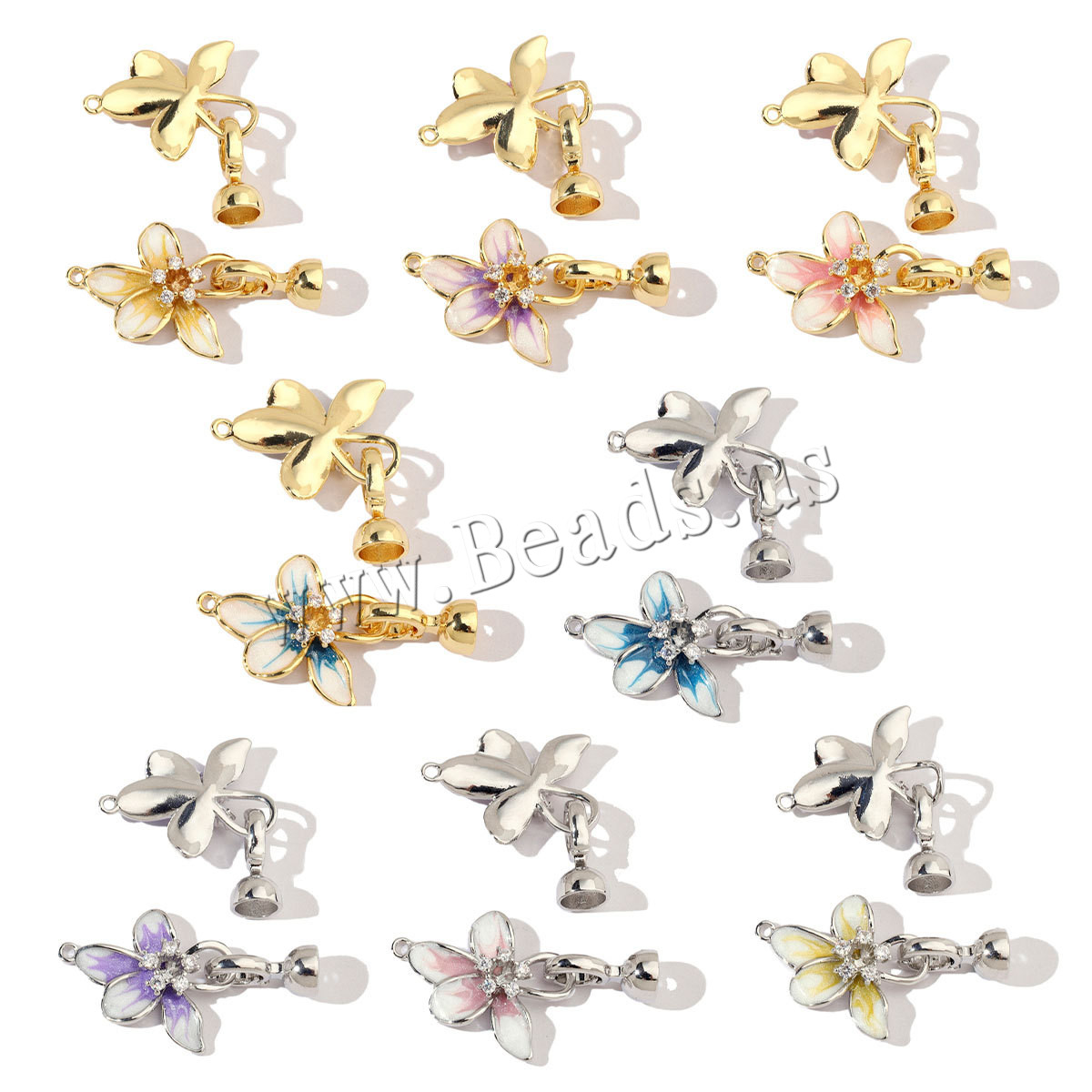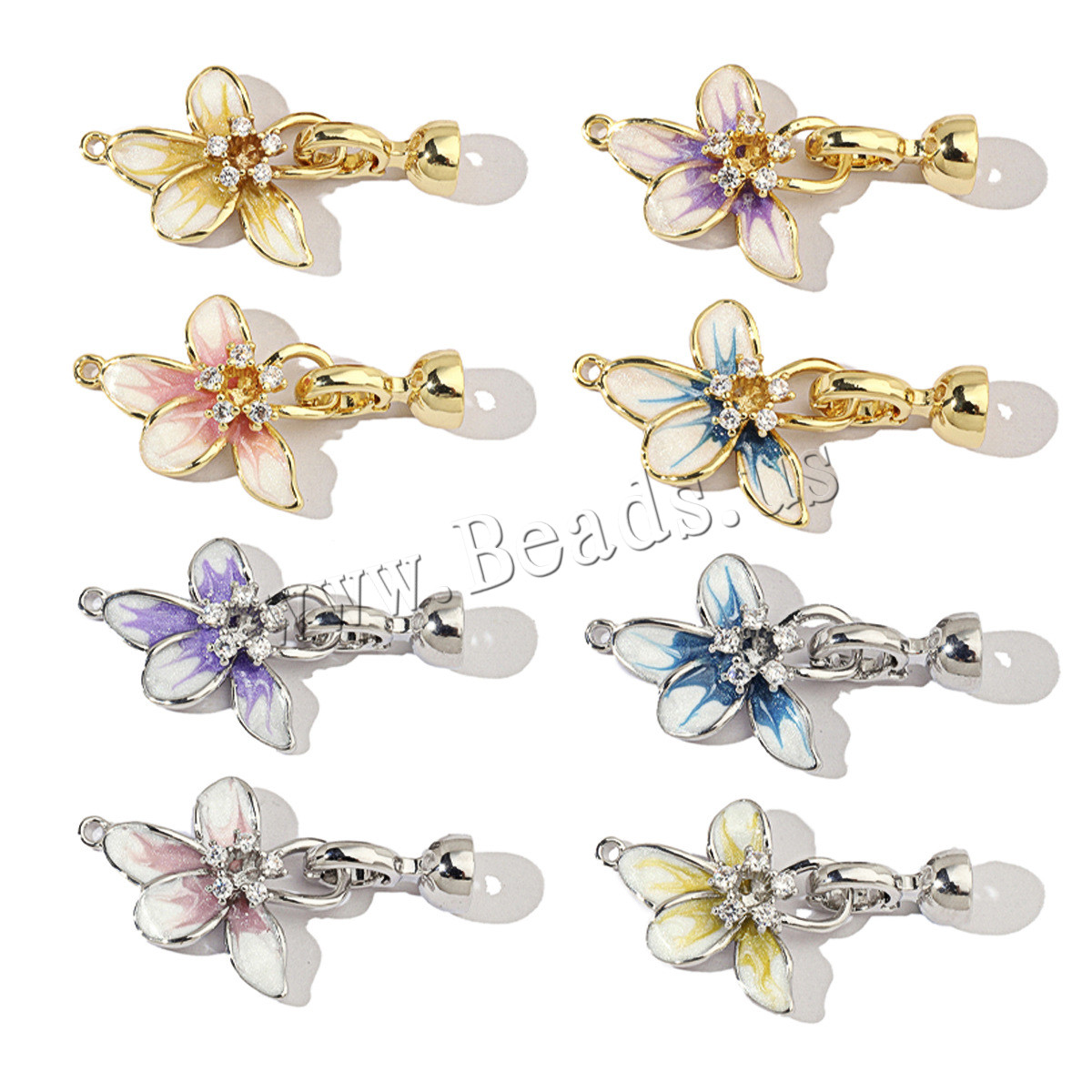 Fermoirs bijoux en laiton, fleur, Placage, DIY & pavé de micro zircon & émail, plus de couleurs à choisir, protéger l'environnement, sans nickel, plomb et cadmium, 35x20mm, 2PC/sac, Vendu par sac