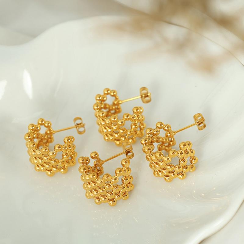 Goujon Laiton, Placage de couleur d'or, bijoux de mode & pour femme & creux, Vendu par paire