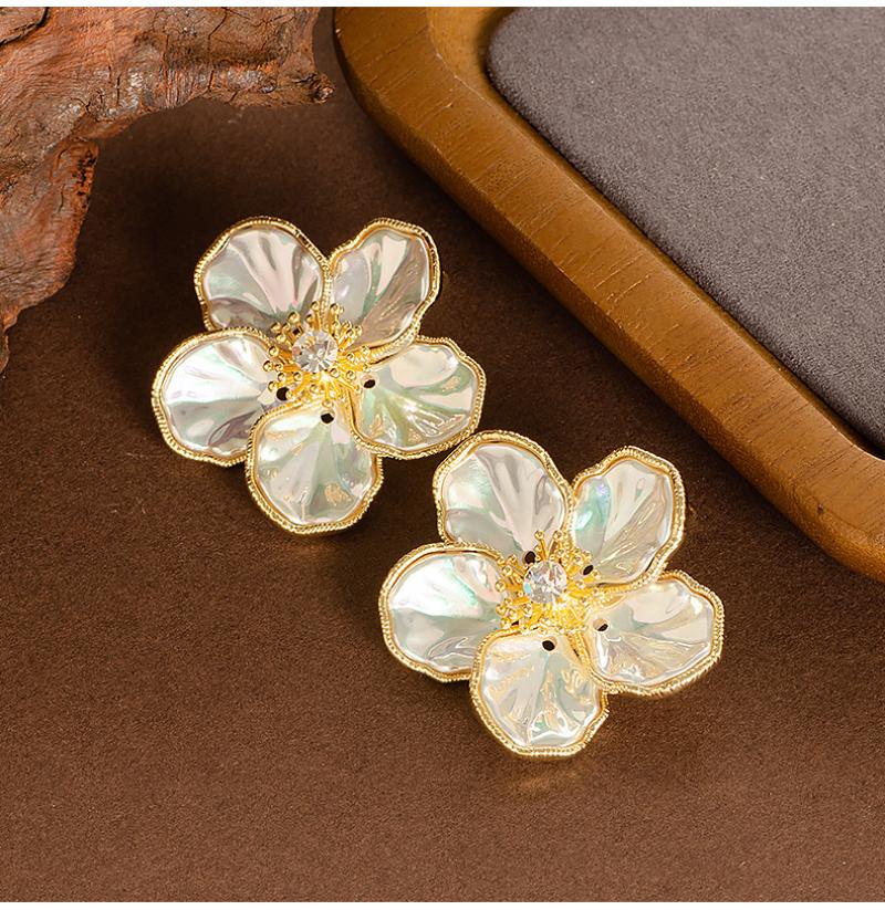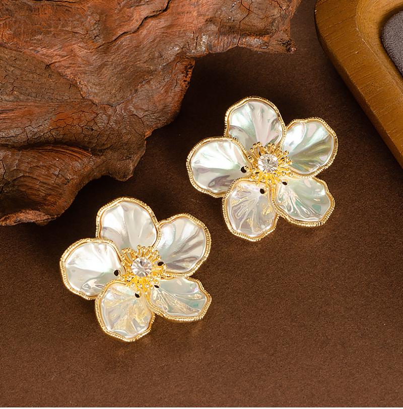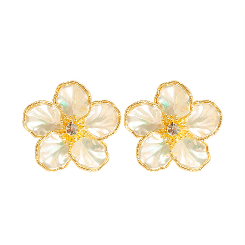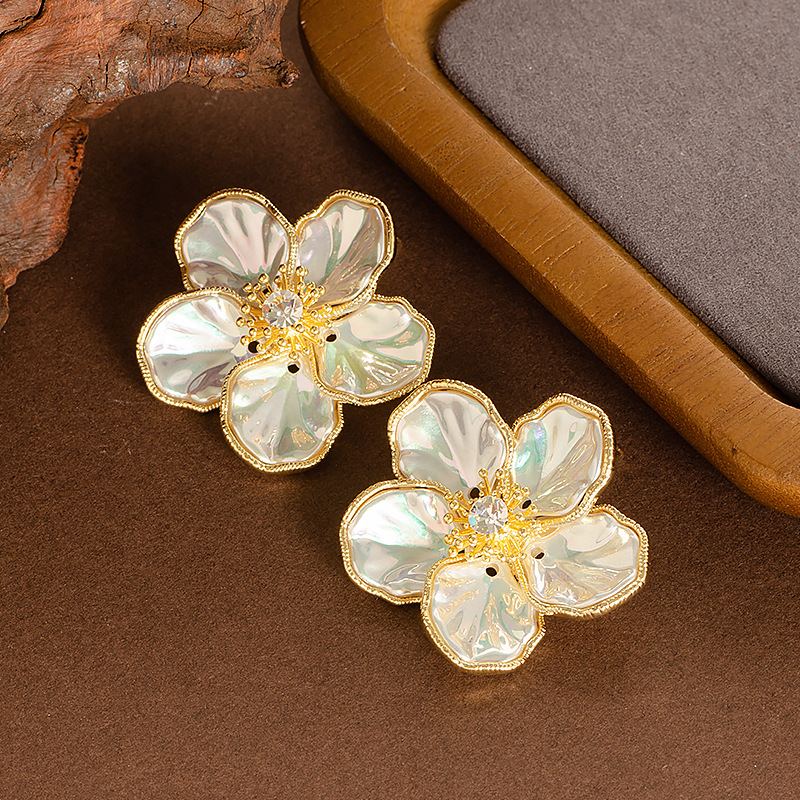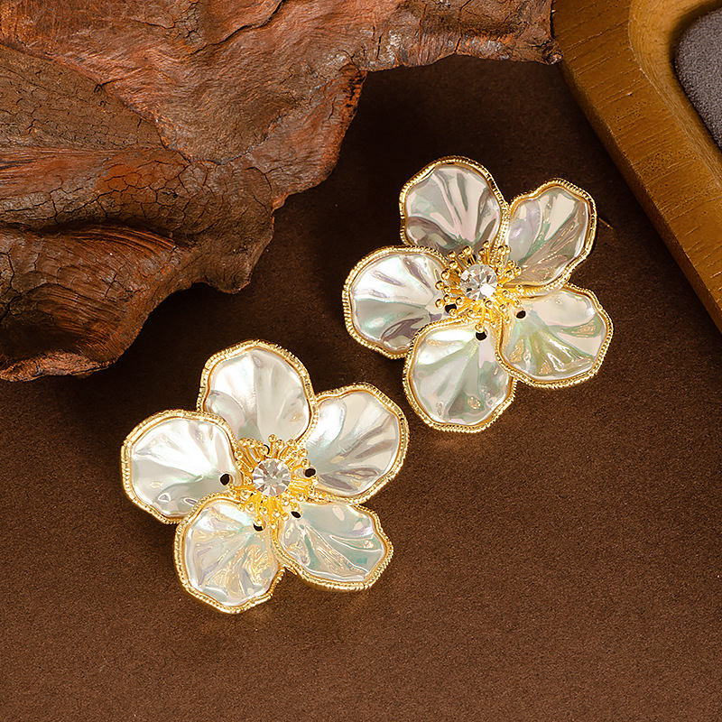 Goujon Laiton, fleur, Placage de couleur d'or, bijoux de mode & avec strass, doré, protéger l'environnement, sans nickel, plomb et cadmium, 40mm, Vendu par paire