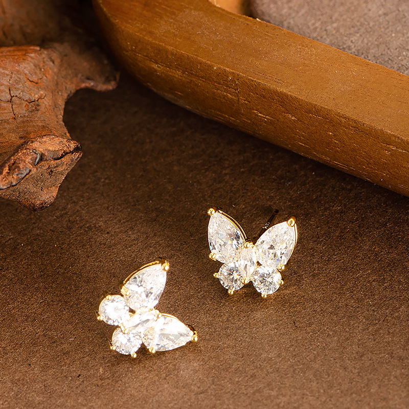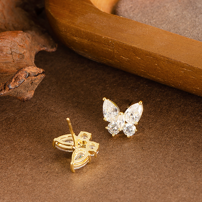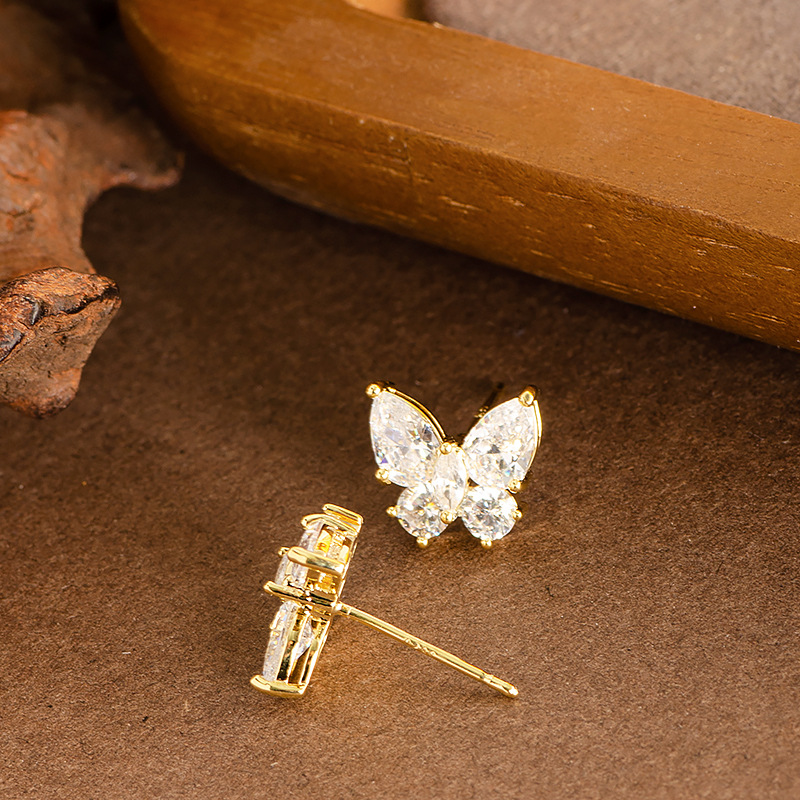 Goujon Laiton, papillon, Placage, bijoux de mode & avec strass, plus de couleurs à choisir, protéger l'environnement, sans nickel, plomb et cadmium, 10x10mm, Vendu par paire