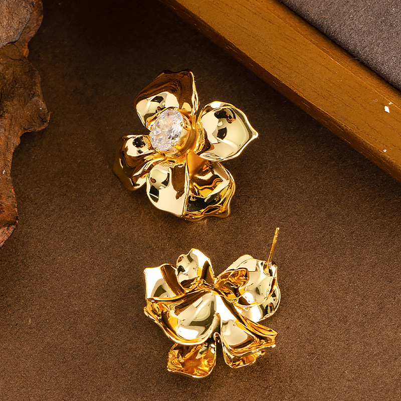 Goujon Laiton, fleur, Placage, bijoux de mode & avec strass, plus de couleurs à choisir, protéger l'environnement, sans nickel, plomb et cadmium, 31x29mm, Vendu par paire
