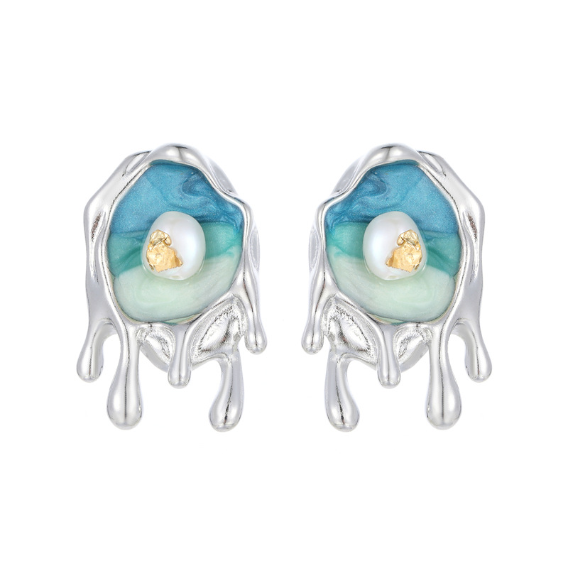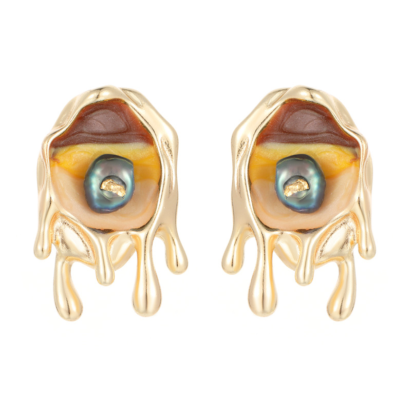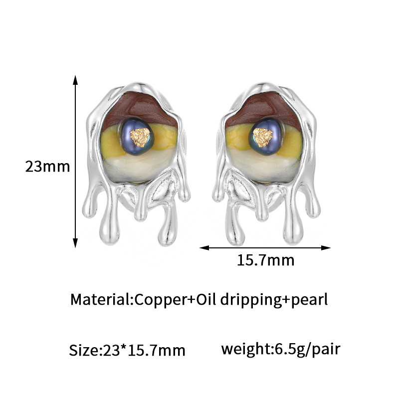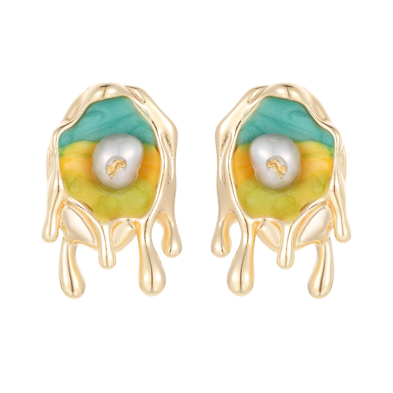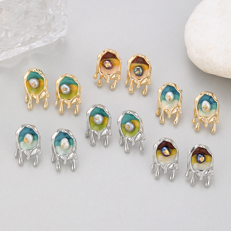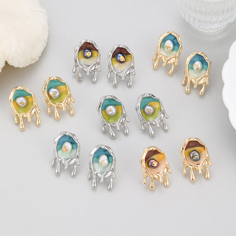 Goujon Laiton, avec perle de plastique, Placage, styles différents pour le choix & pour femme & émail, plus de couleurs à choisir, protéger l'environnement, sans nickel, plomb et cadmium, Vendu par paire