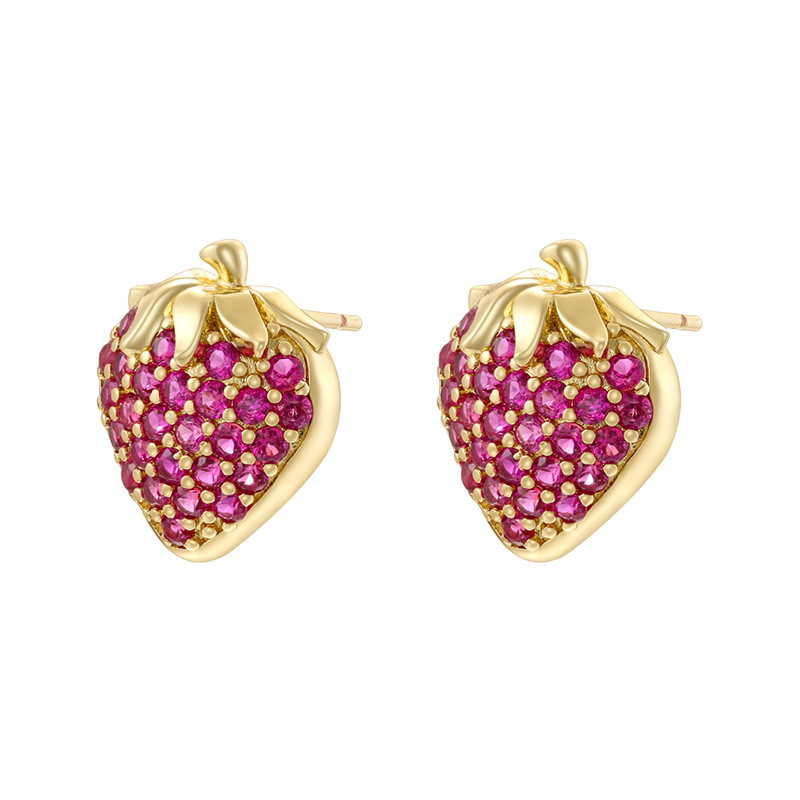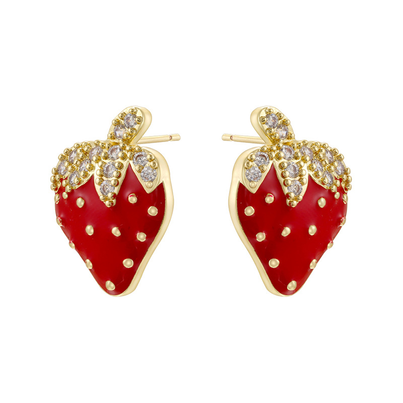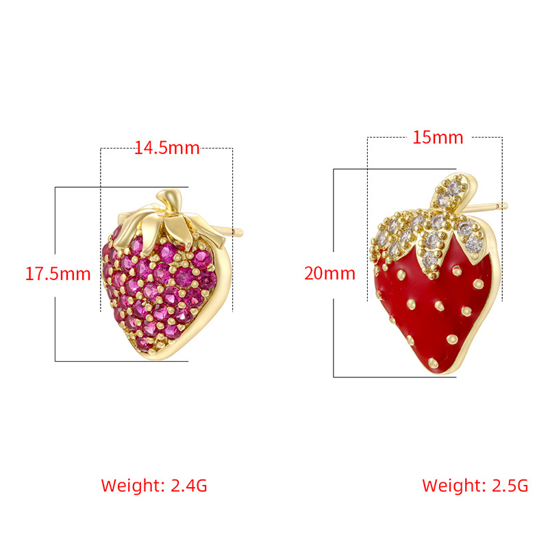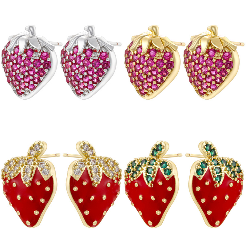Goujon Laiton, fraise, Placage, styles différents pour le choix & pour femme & émail & avec strass, plus de couleurs à choisir, protéger l'environnement, sans nickel, plomb et cadmium, Vendu par paire