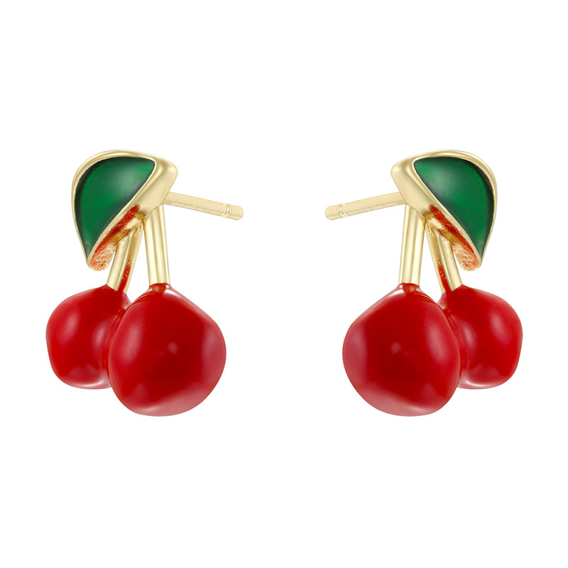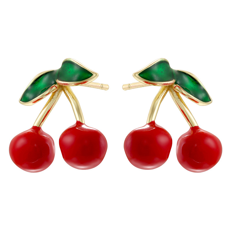 Goujon Laiton, cerise, Placage de couleur d'or, styles différents pour le choix & pavé de micro zircon & pour femme, plus de couleurs à choisir, protéger l'environnement, sans nickel, plomb et cadmium, Vendu par paire