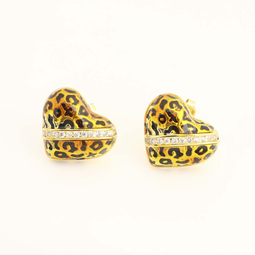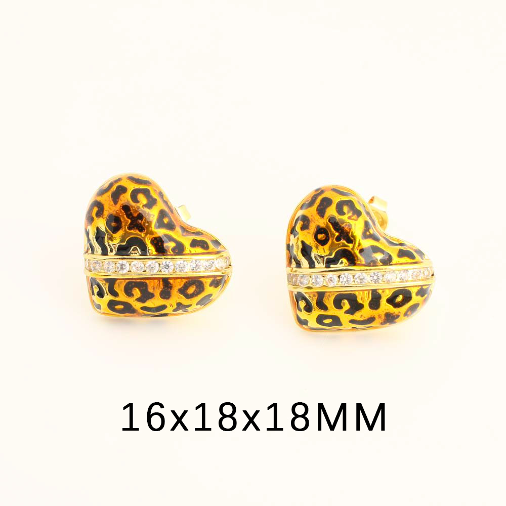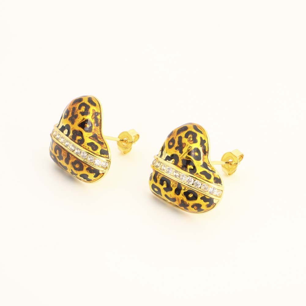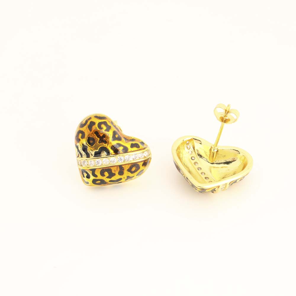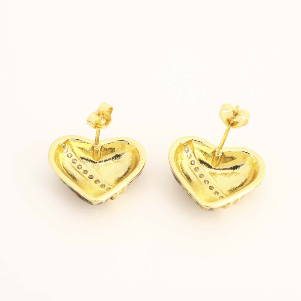 Goujon Laiton, coeur, bijoux de mode & pavé de micro zircon & pour femme & émail, doré, Vendu par paire