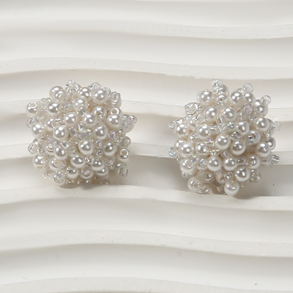Goujon Laiton, avec perle de plastique, fleur, Placage, bijoux de mode, couleurs mélangées, protéger l'environnement, sans nickel, plomb et cadmium, 23.70x12.26x24.36mm, Vendu par paire