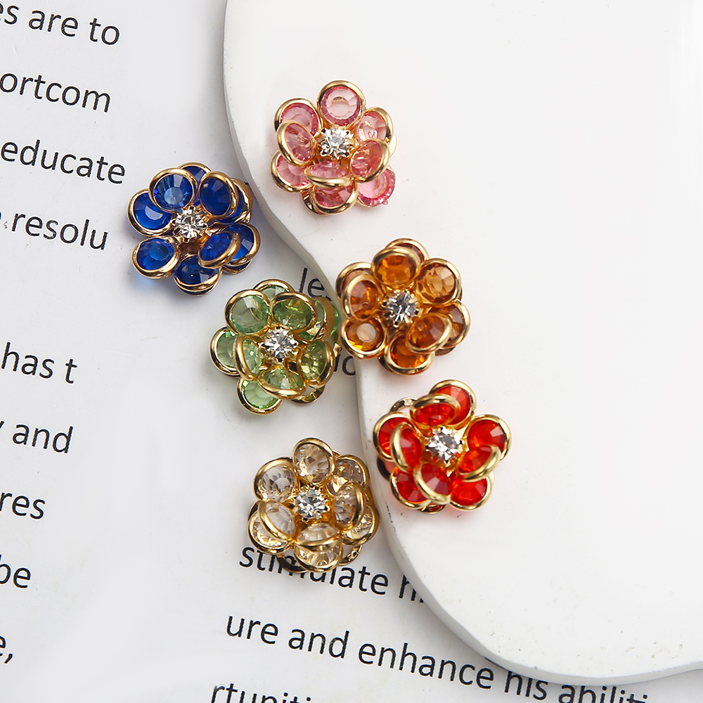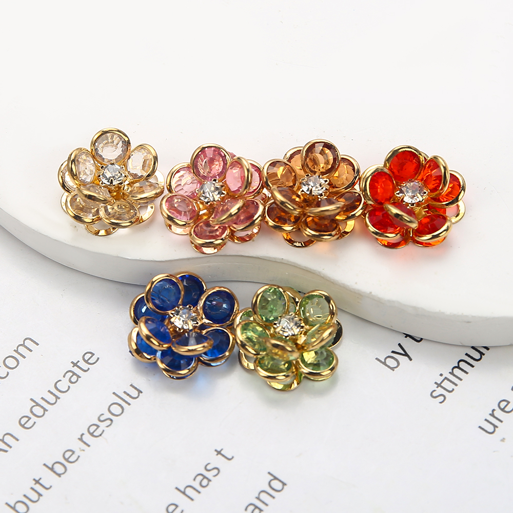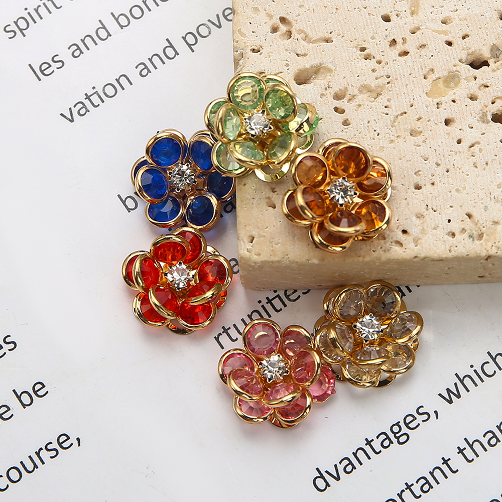 Goujon Laiton, avec verre, fleur, Placage, bijoux de mode & avec strass, plus de couleurs à choisir, protéger l'environnement, sans nickel, plomb et cadmium, 17.75x6.12x17.79mm, Vendu par paire