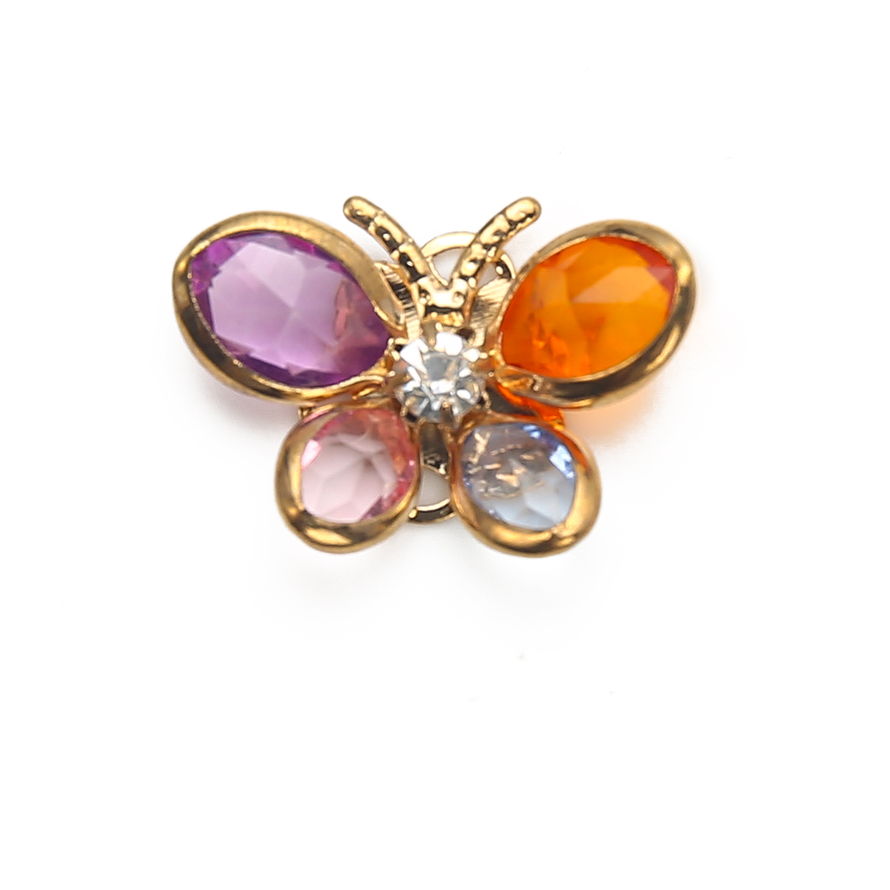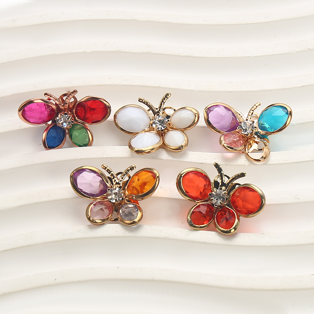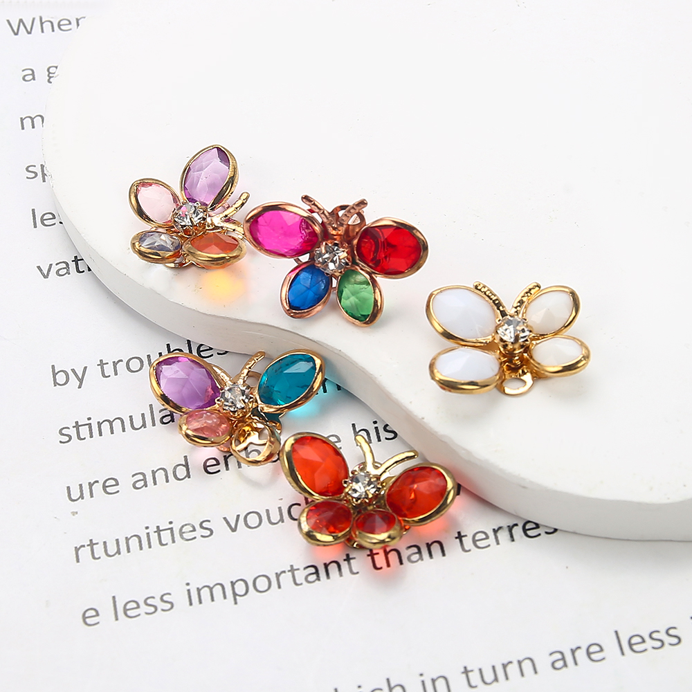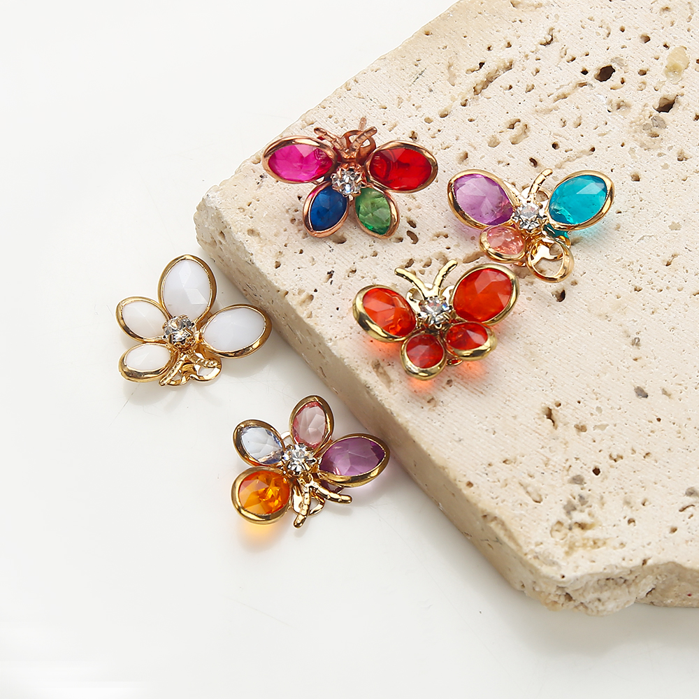 Goujon Laiton, avec verre, papillon, Placage, bijoux de mode & avec strass, plus de couleurs à choisir, protéger l'environnement, sans nickel, plomb et cadmium, 22.70x5.35x16.37mm, Vendu par paire