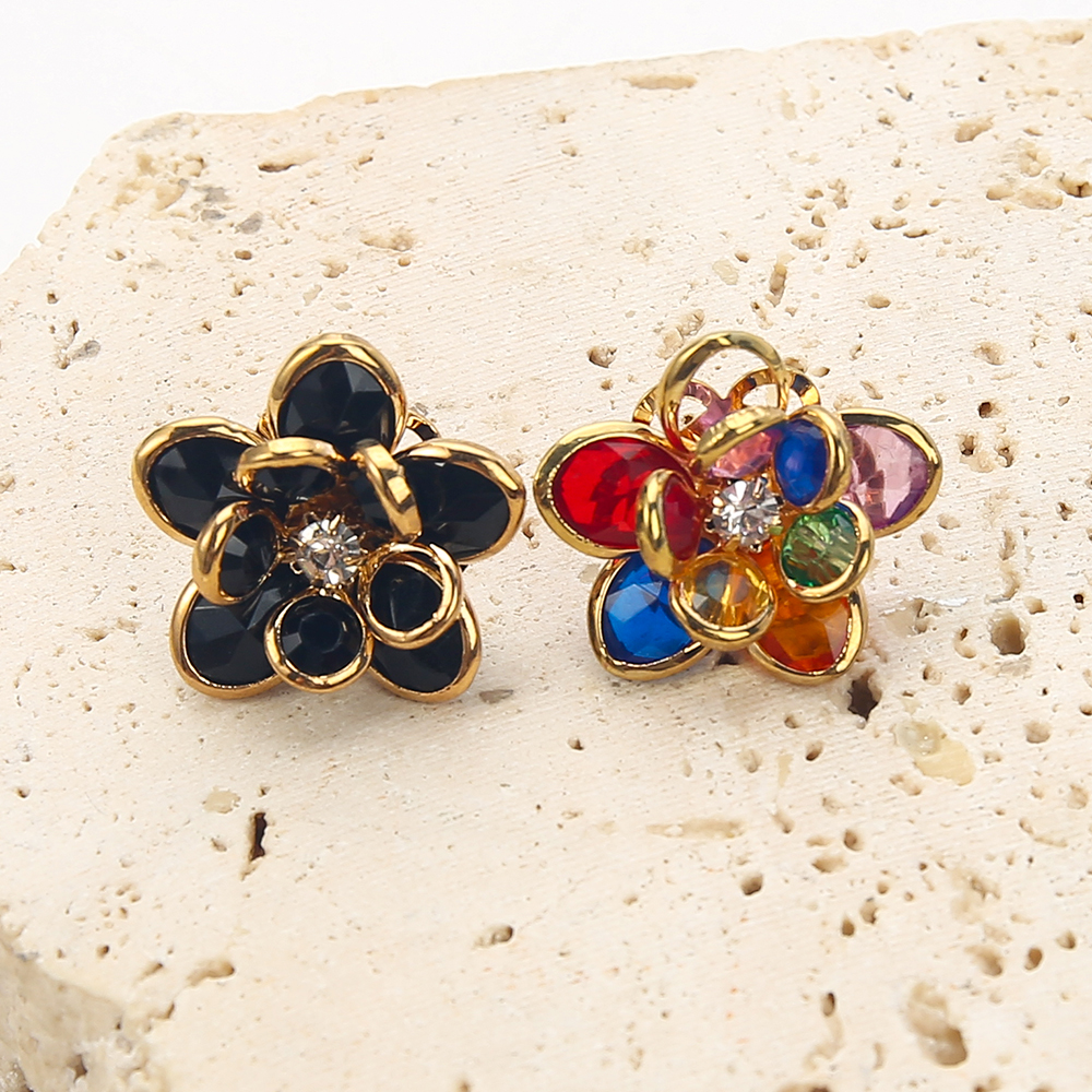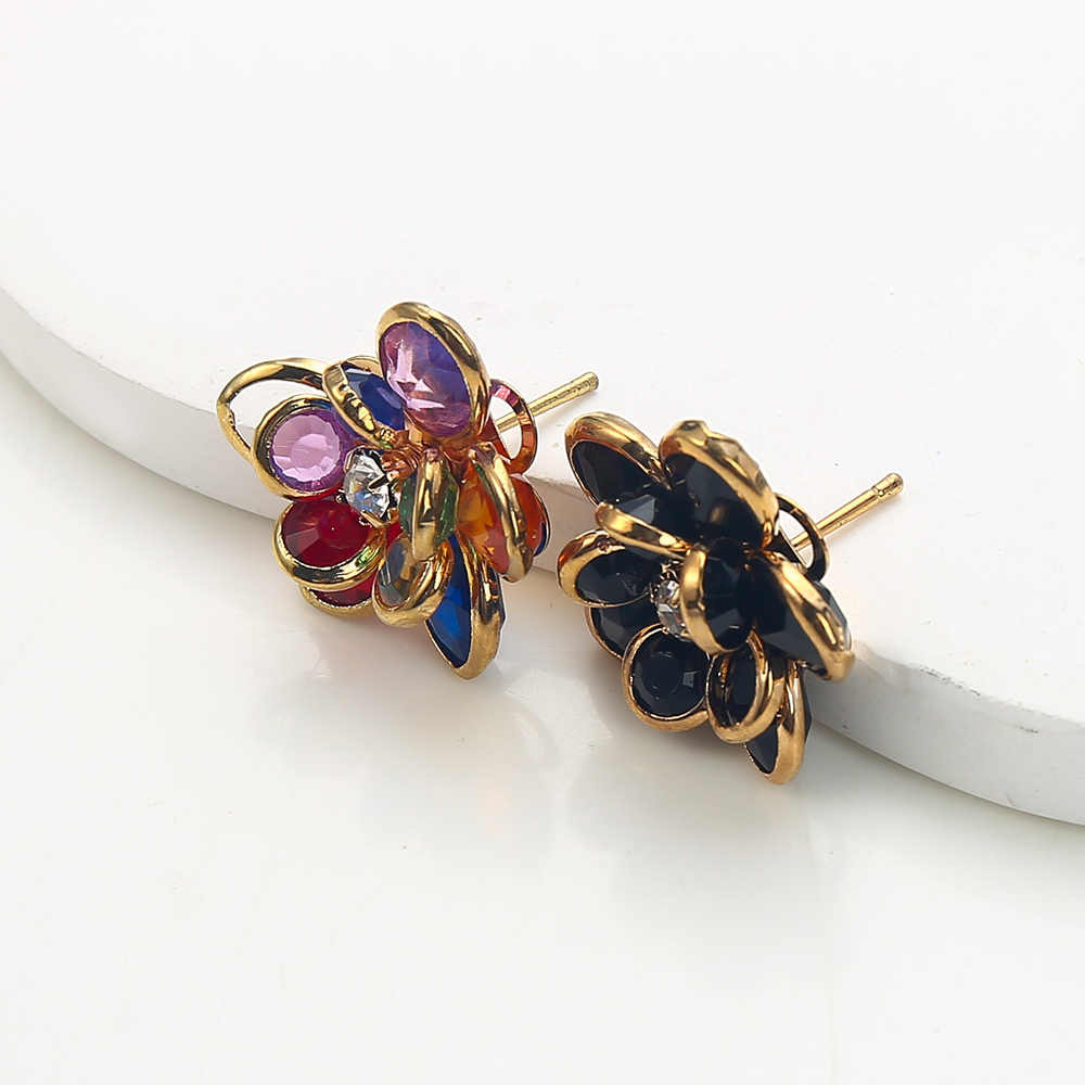 Goujon Laiton, avec verre, fleur, Placage, bijoux de mode & avec strass, plus de couleurs à choisir, protéger l'environnement, sans nickel, plomb et cadmium, 21.20x20.87x23.49mm, Vendu par paire