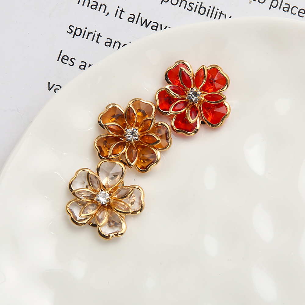 Goujon Laiton, avec verre, fleur, Placage, bijoux de mode & avec strass, plus de couleurs à choisir, protéger l'environnement, sans nickel, plomb et cadmium, 21.93x6.33x23.54mm, Vendu par paire